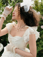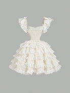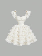 SHEIN MOD Apricot Palace Dream Romantic Luxury Multilayer Tulle Dress With Flounced Edge, Bow And Lace