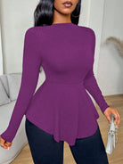 VaVaBold Solid Ruffle Hem Slim Fit Long Sleeve Women T-Shirt, Fall Top