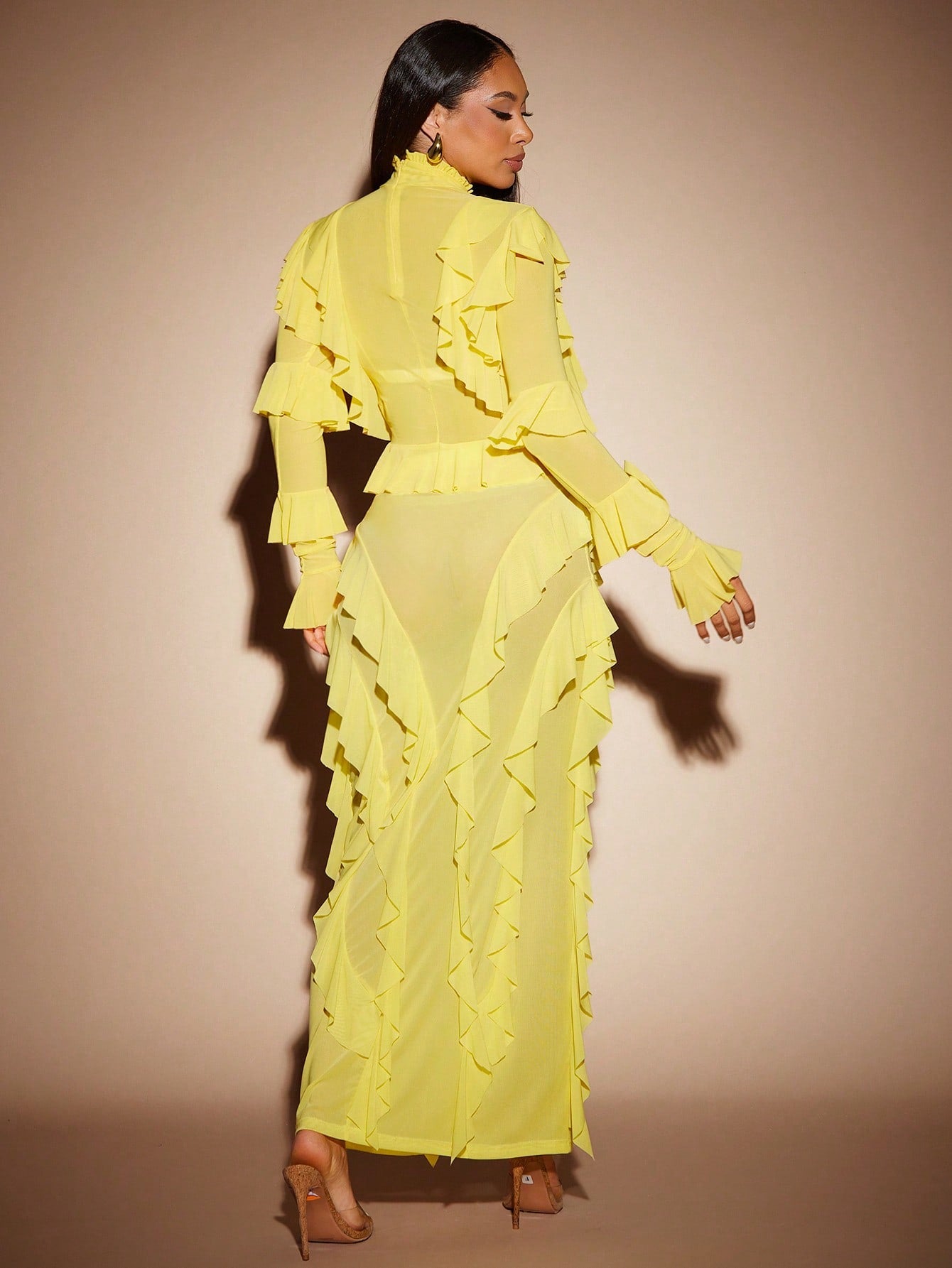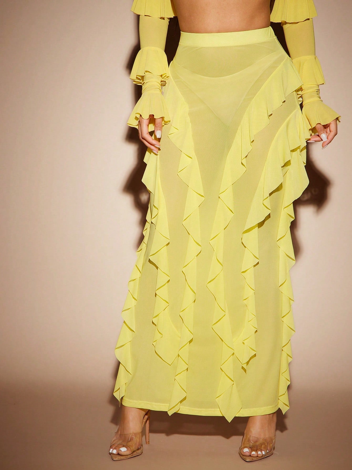 Vixey Sheer Mesh Ruffle Midi Skirt, Boho, Festival, Summer Outfits For Women, Women Summer Clothes, Brunch