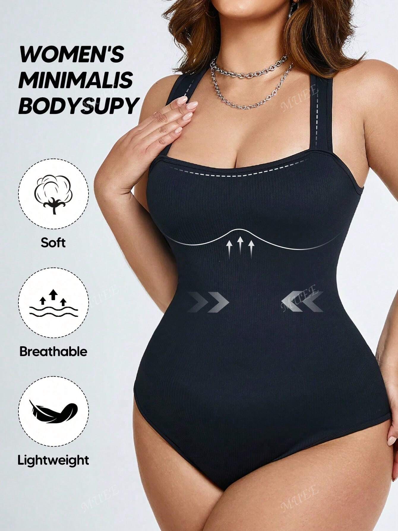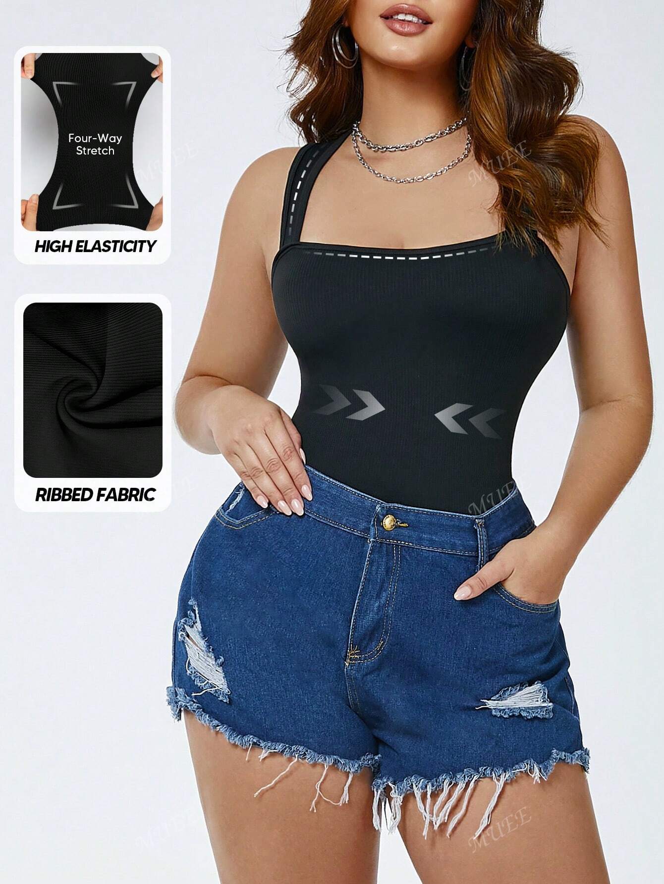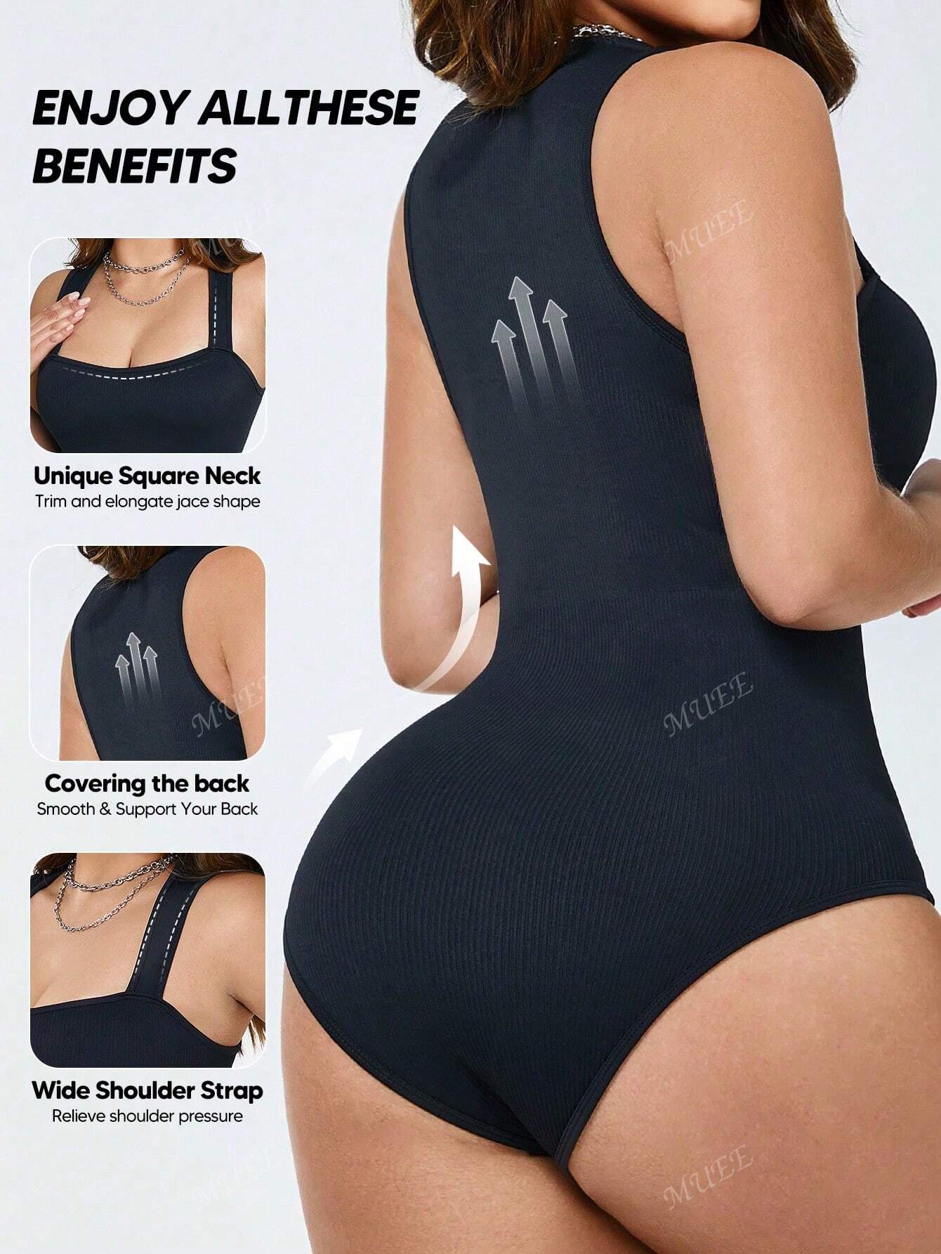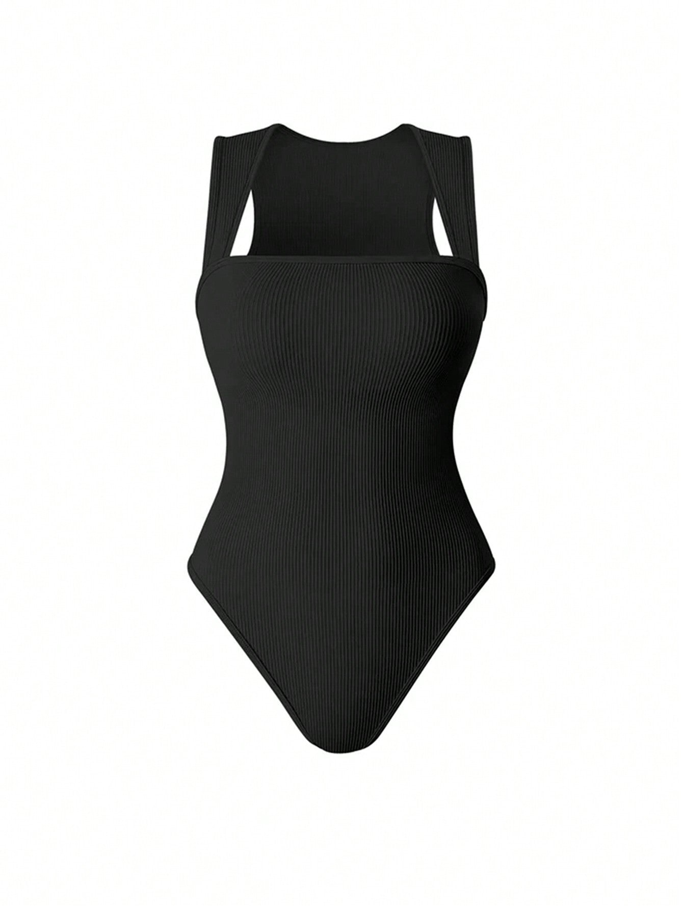 Women's Bodysuits Sexy Ribbed Strappy Square Neck Sleeveless Tummy Control Tank Tops Bodysuits