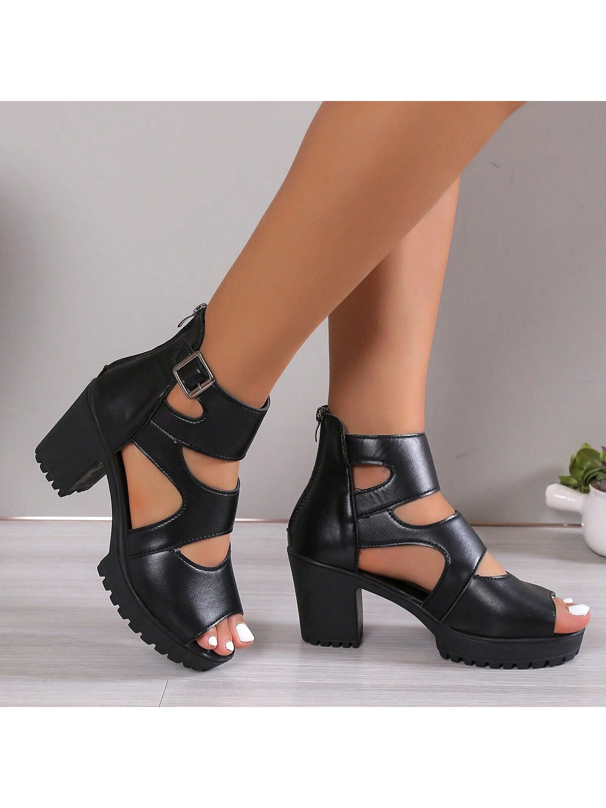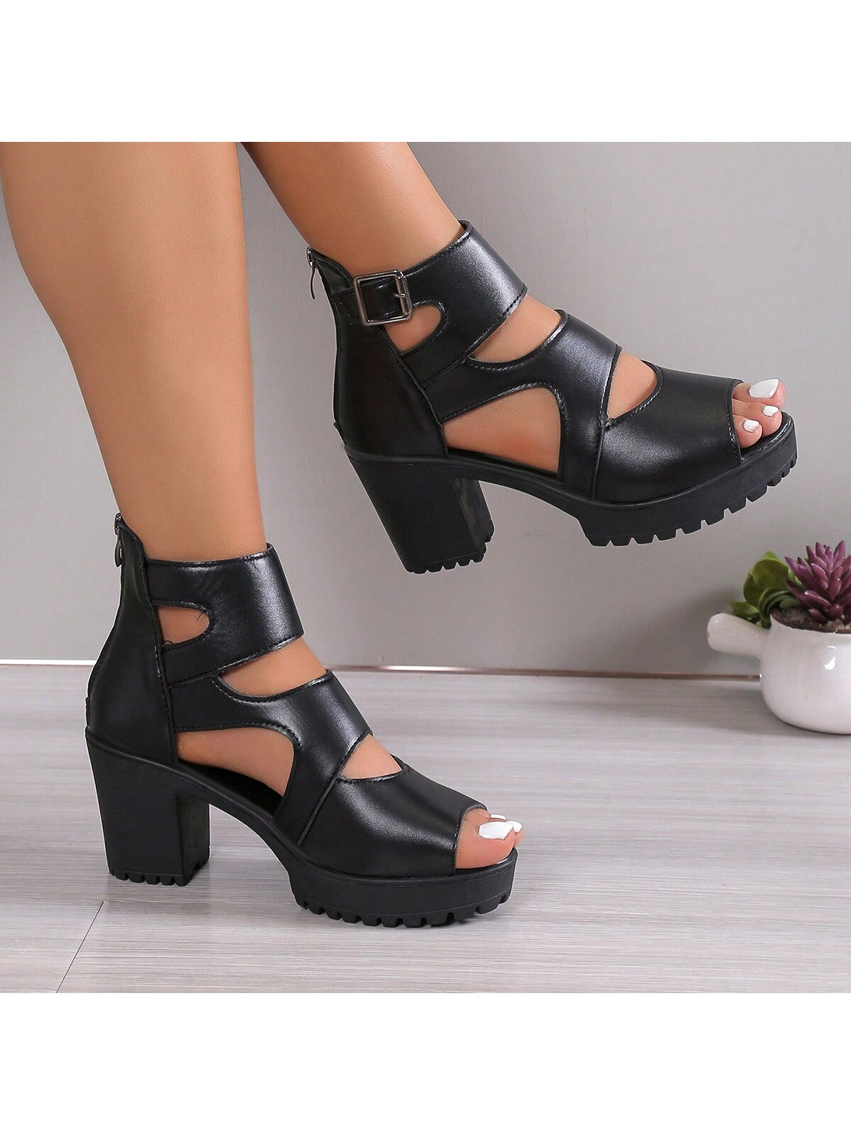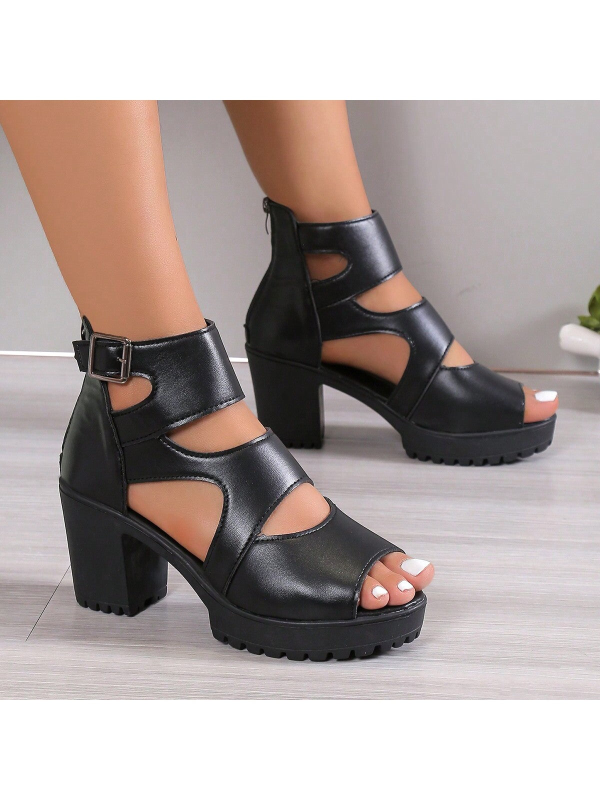 صنادل نسائية أنيقة بكعب عالٍ ومقدمة مفتوحة وكعب سميك