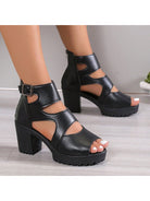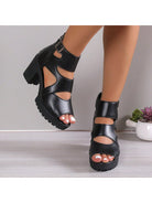 women Women's Chunky Heel Peep-Toe Hollow Out Slip On Fashion High Heel Sandals