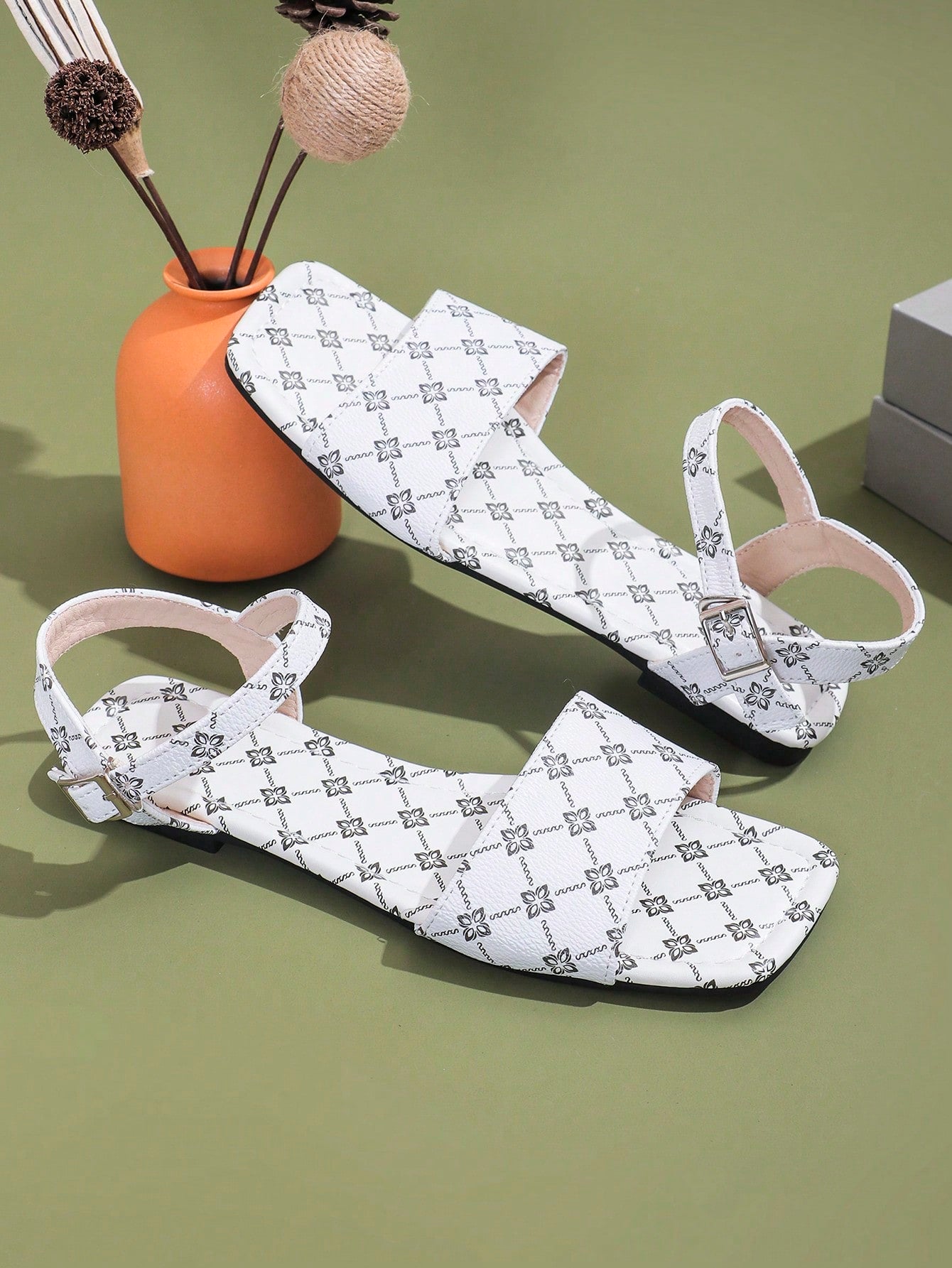 صندل مسطح كاجوال بحزام مطبوع عليه زهور للنساء