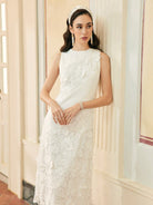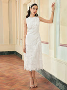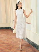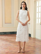 ZEYLAH WOMEN'S FLOWER APPLIQUES LACE MIDI DRESS, SPRING SUMMER, WHITE DRESS, VACATION