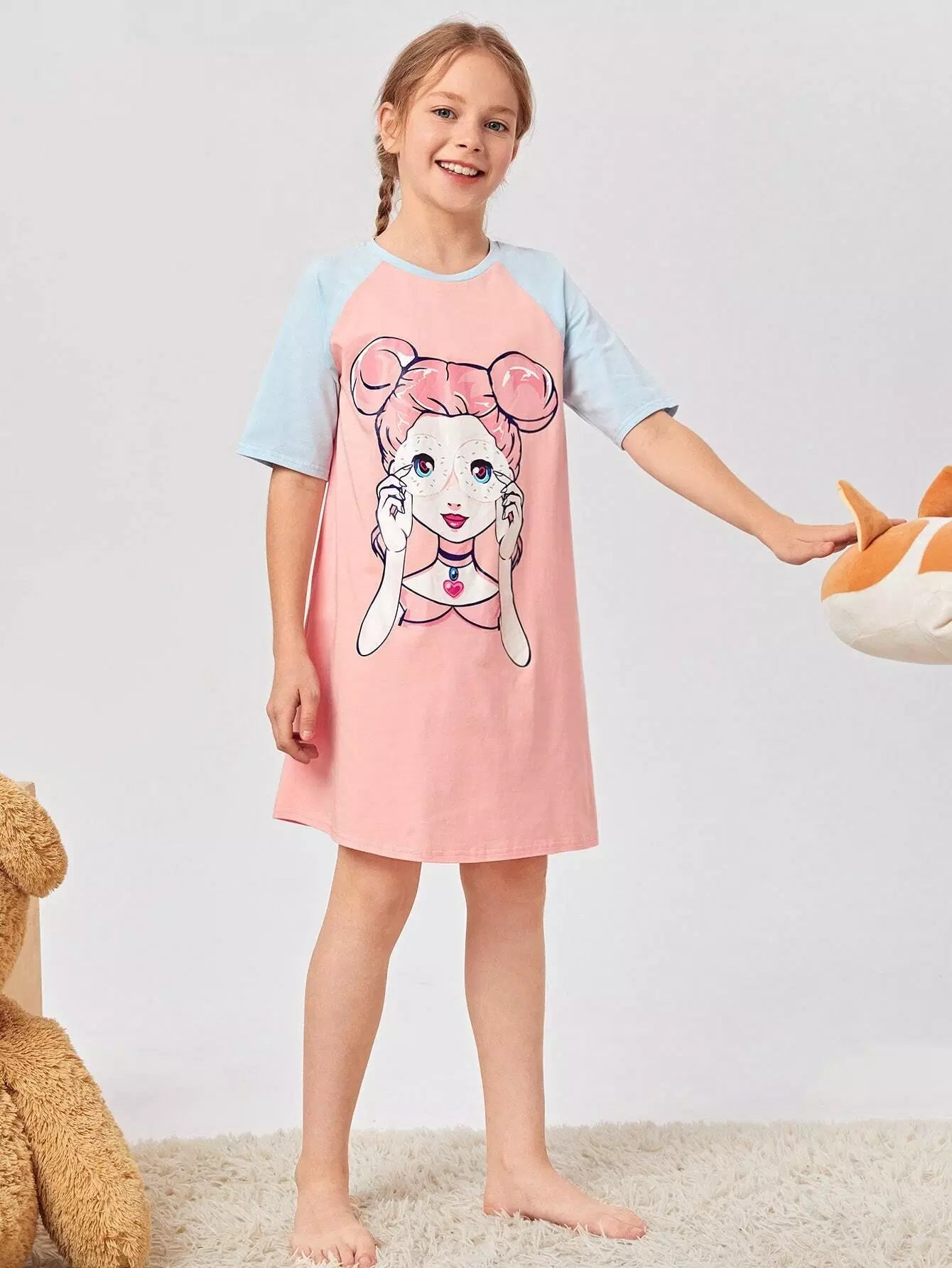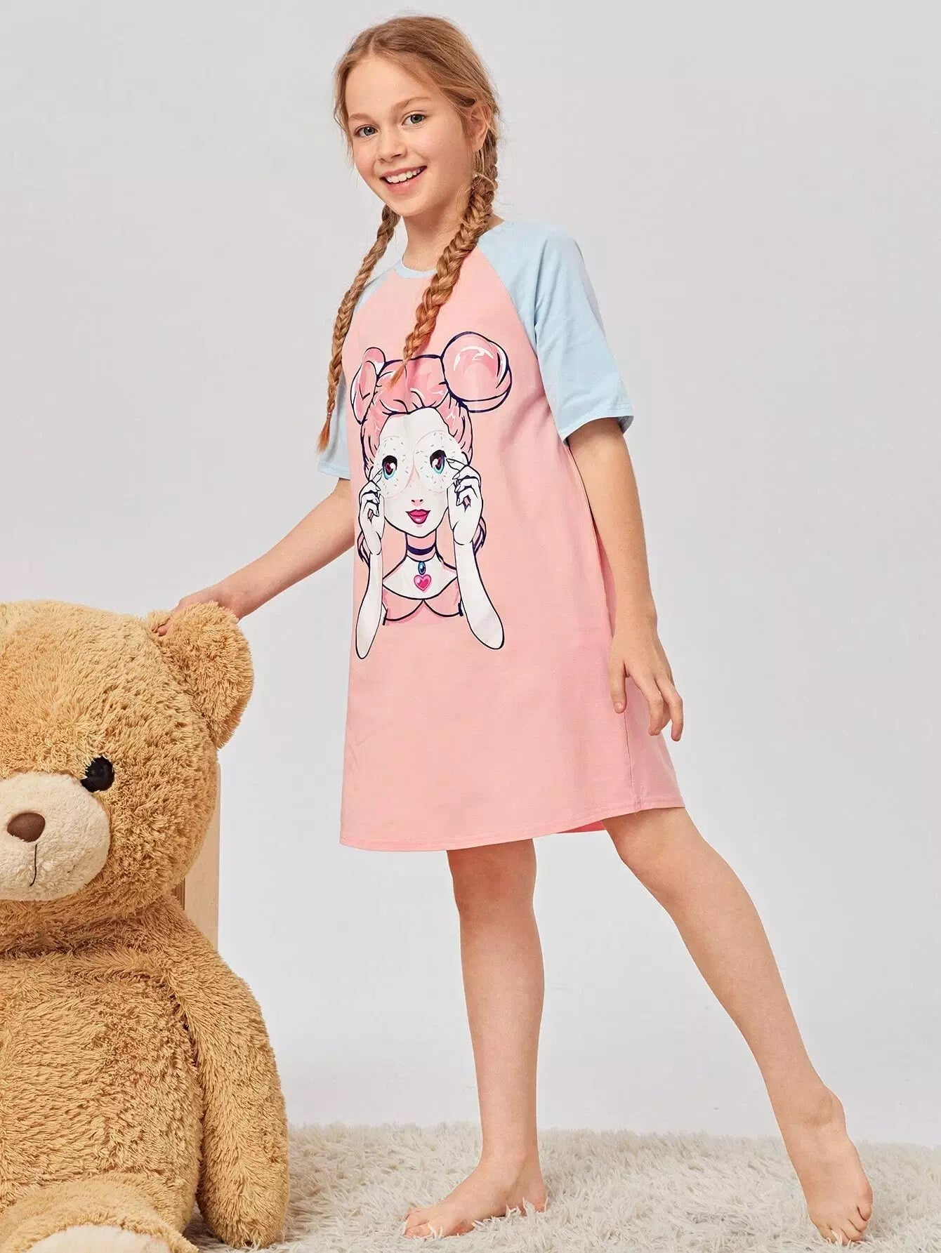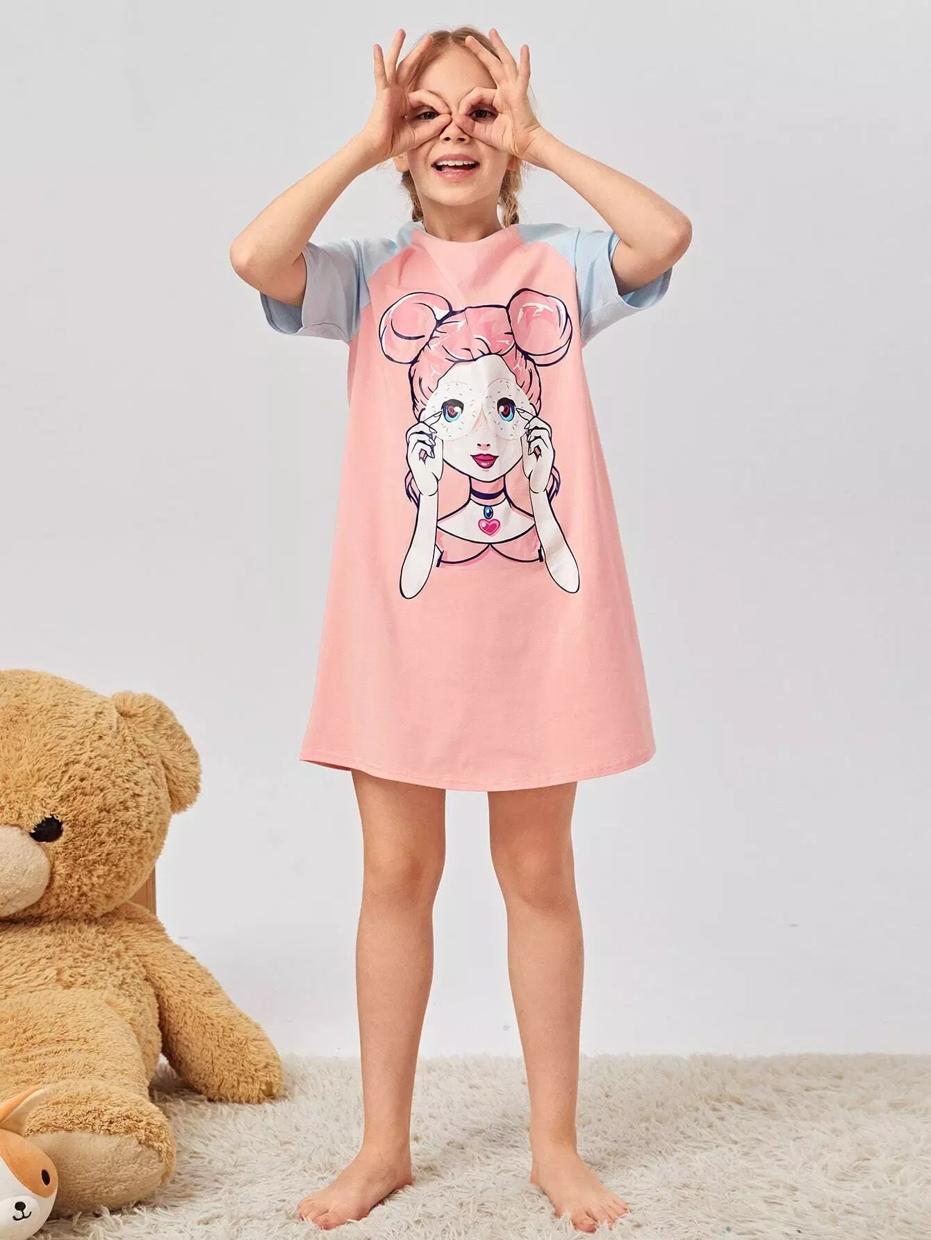 الأطفال - فستان نوم بناتي برسومات ملونة