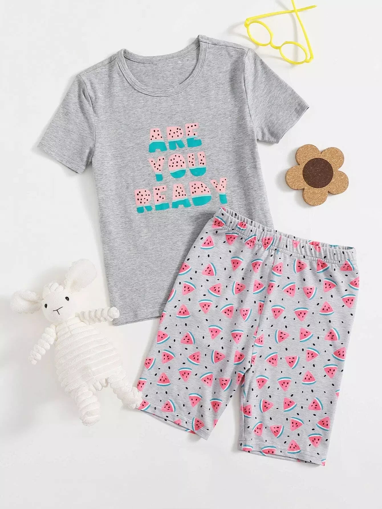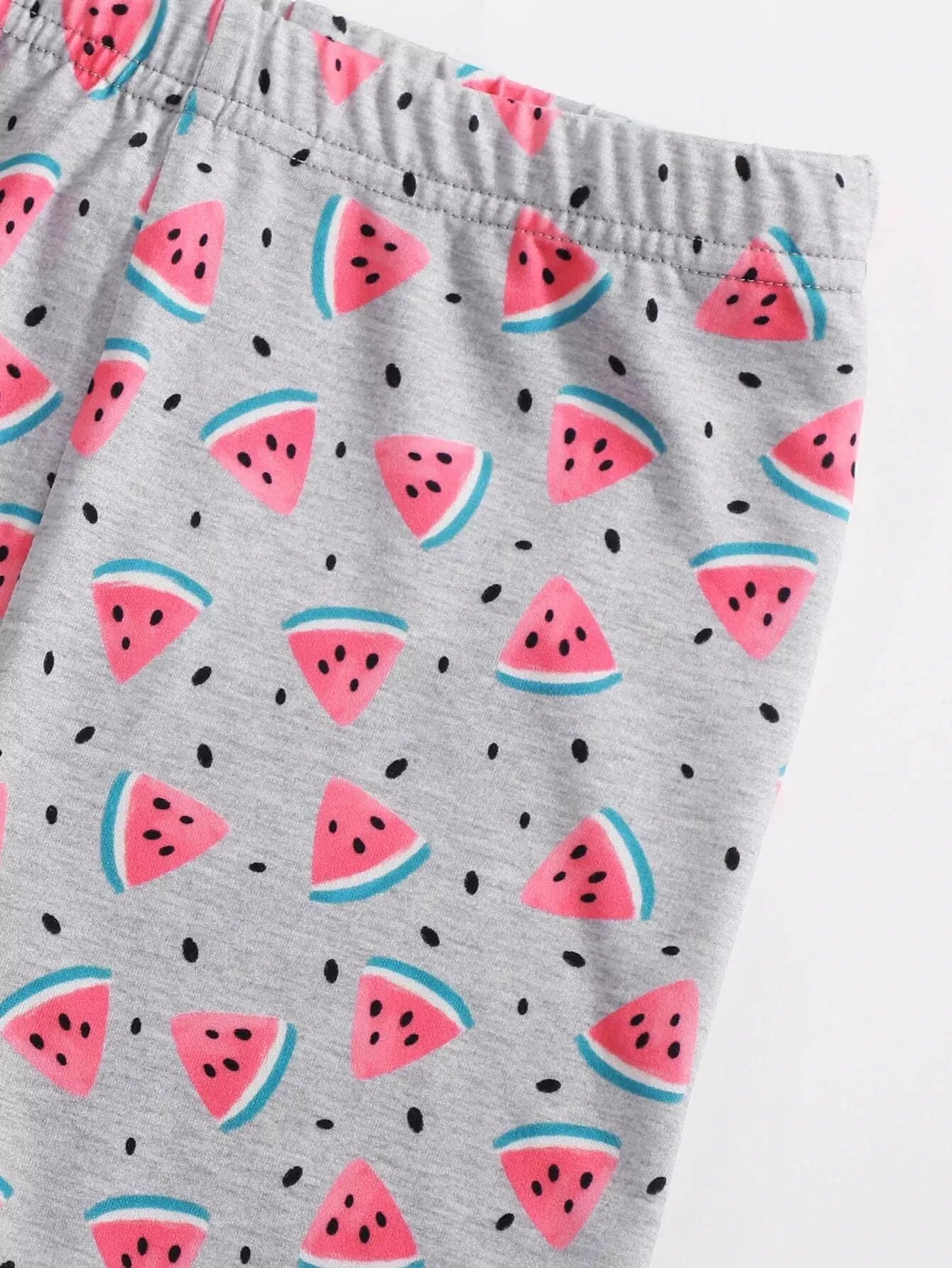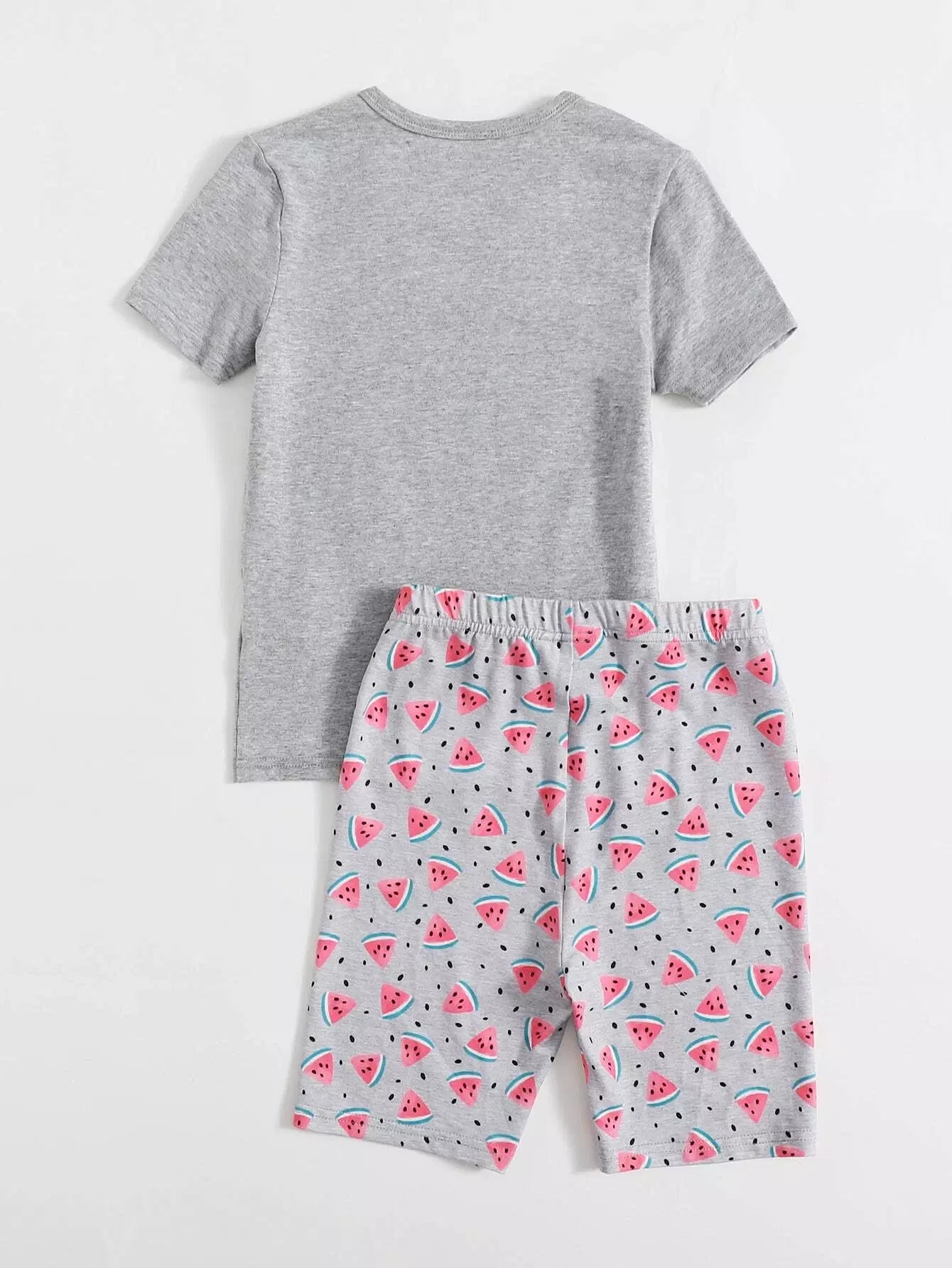 تي شيرت بطبعة حروف وشورت بطبعة البطيخ للبنات