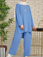 women Women Arab Style 2 Pieces Set Of Solid Color Long Sleeve Top And Long Pants