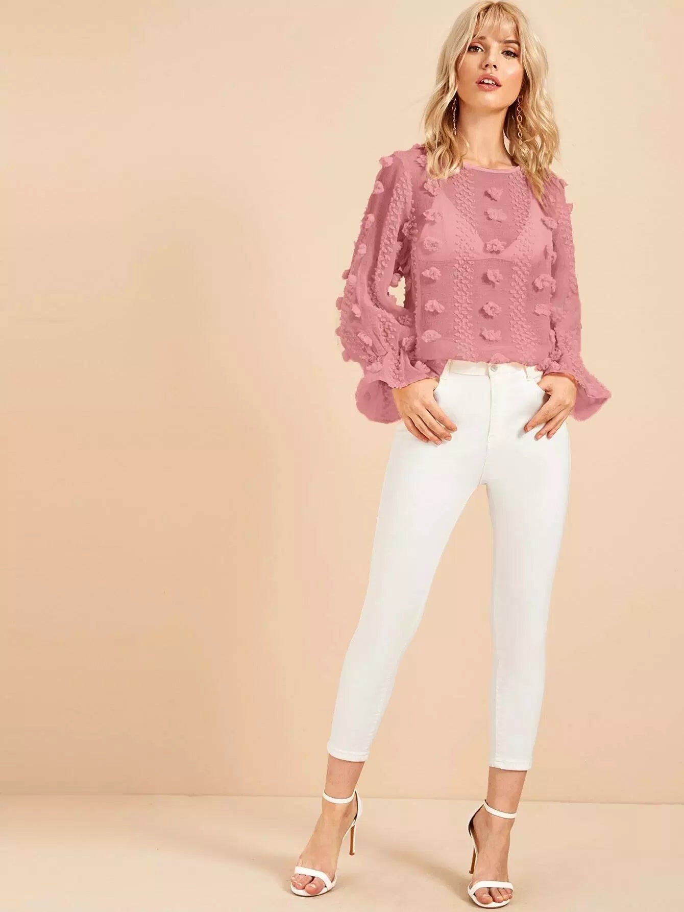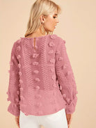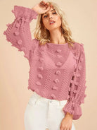 بلوزة بأكمام منفوشة بأكمام بفتحة من الخلف شفافة وشفافة
