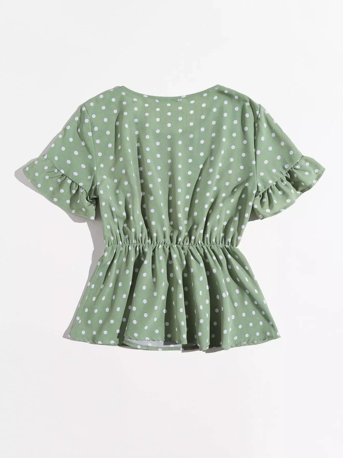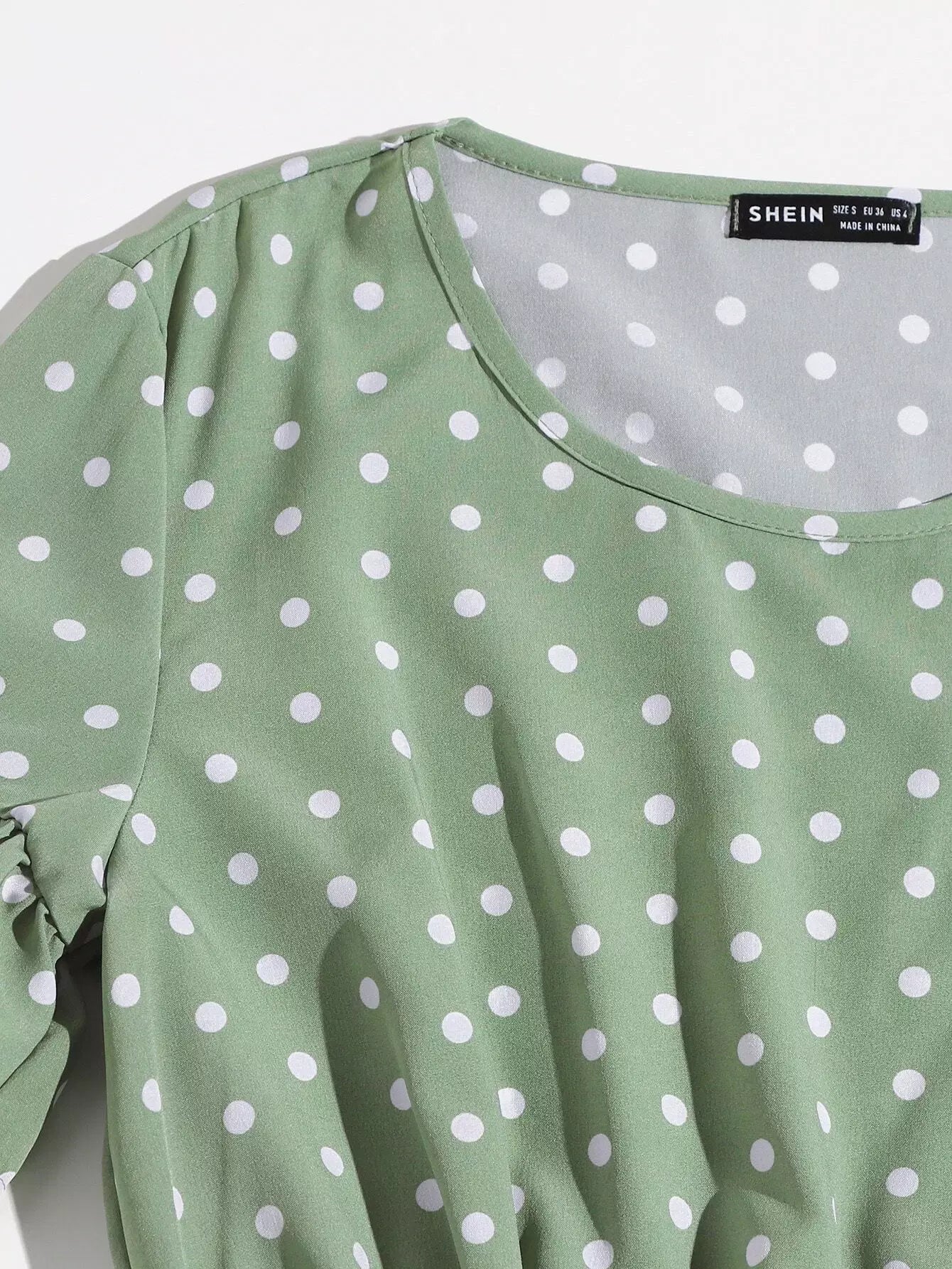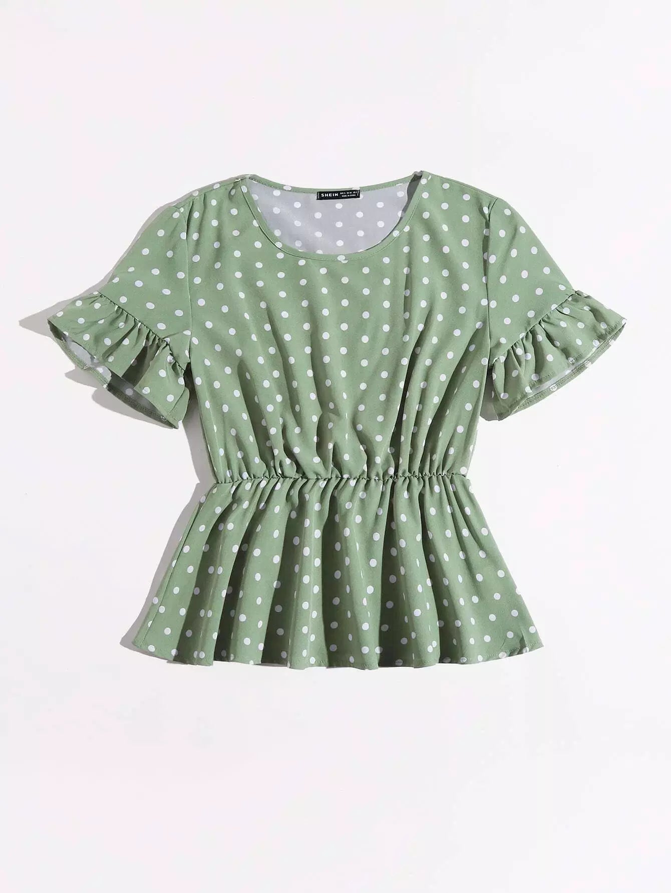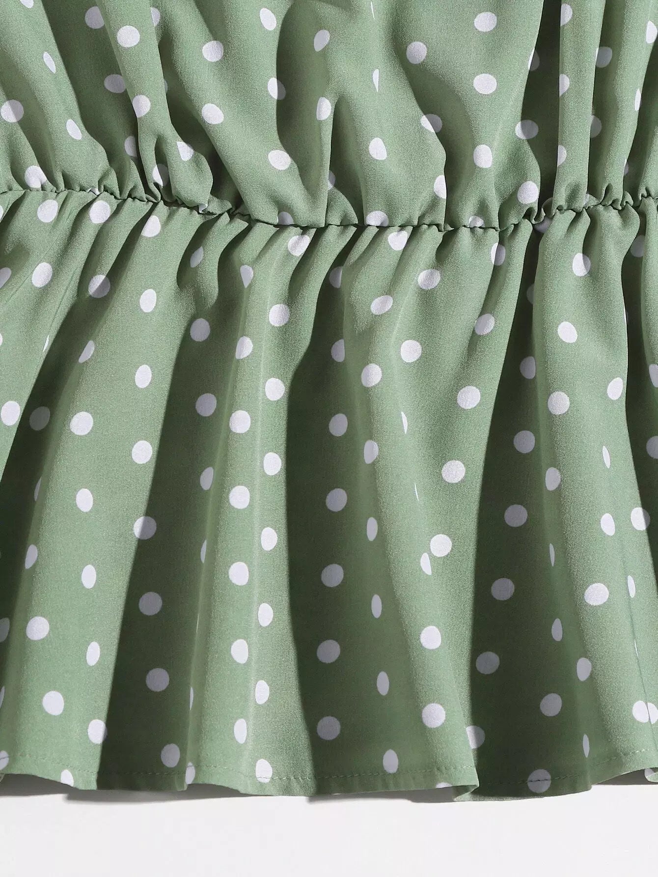 للنساء - بلوزة بيبلوم بأكمام واسعة ونقاط بولكا