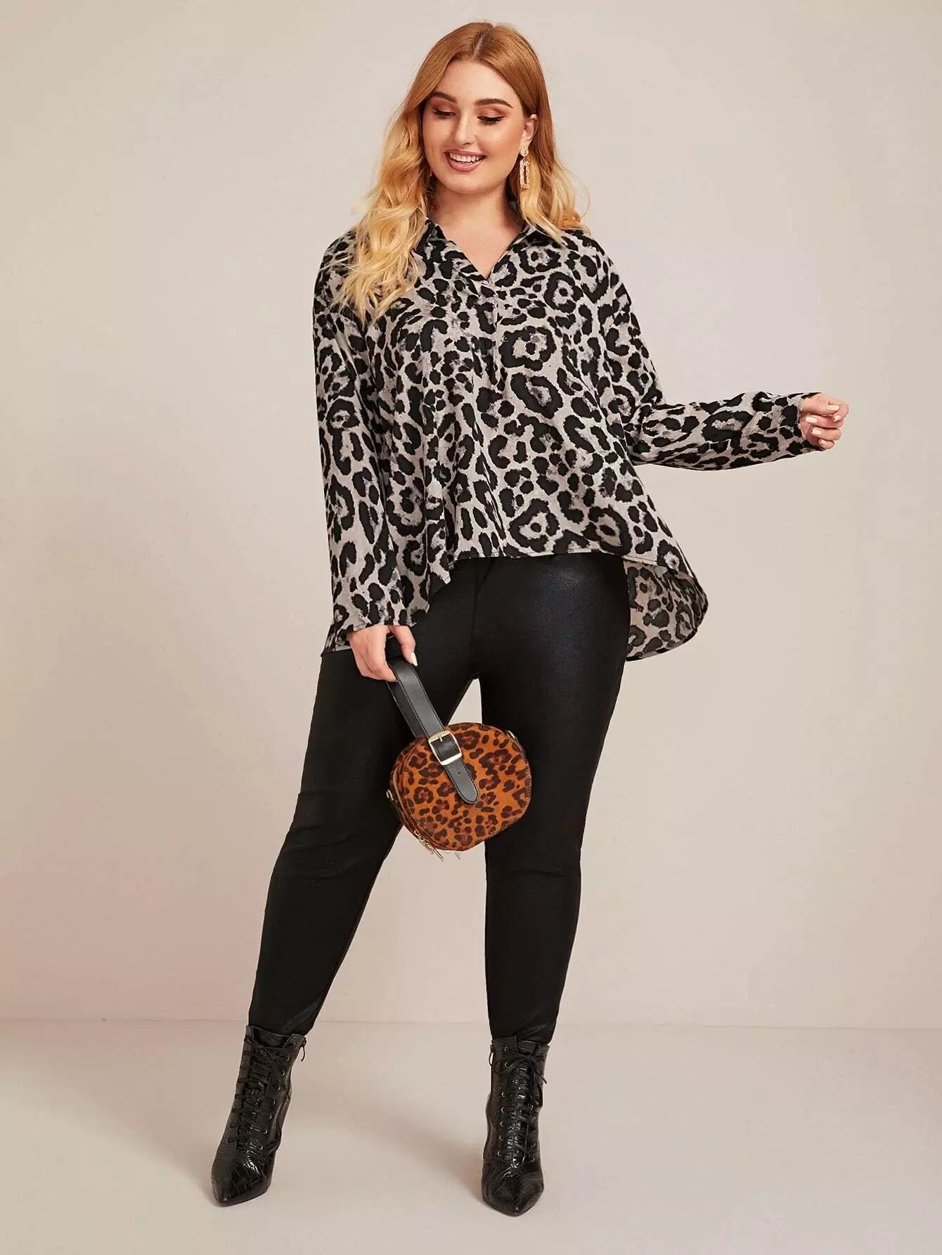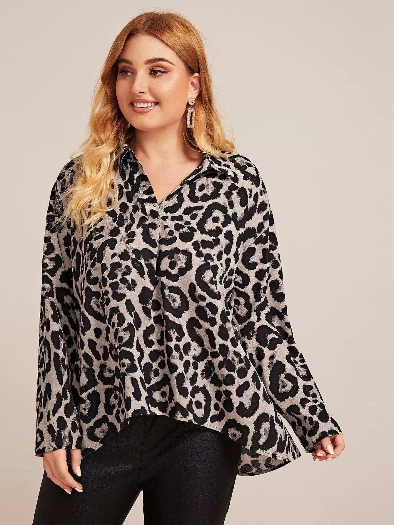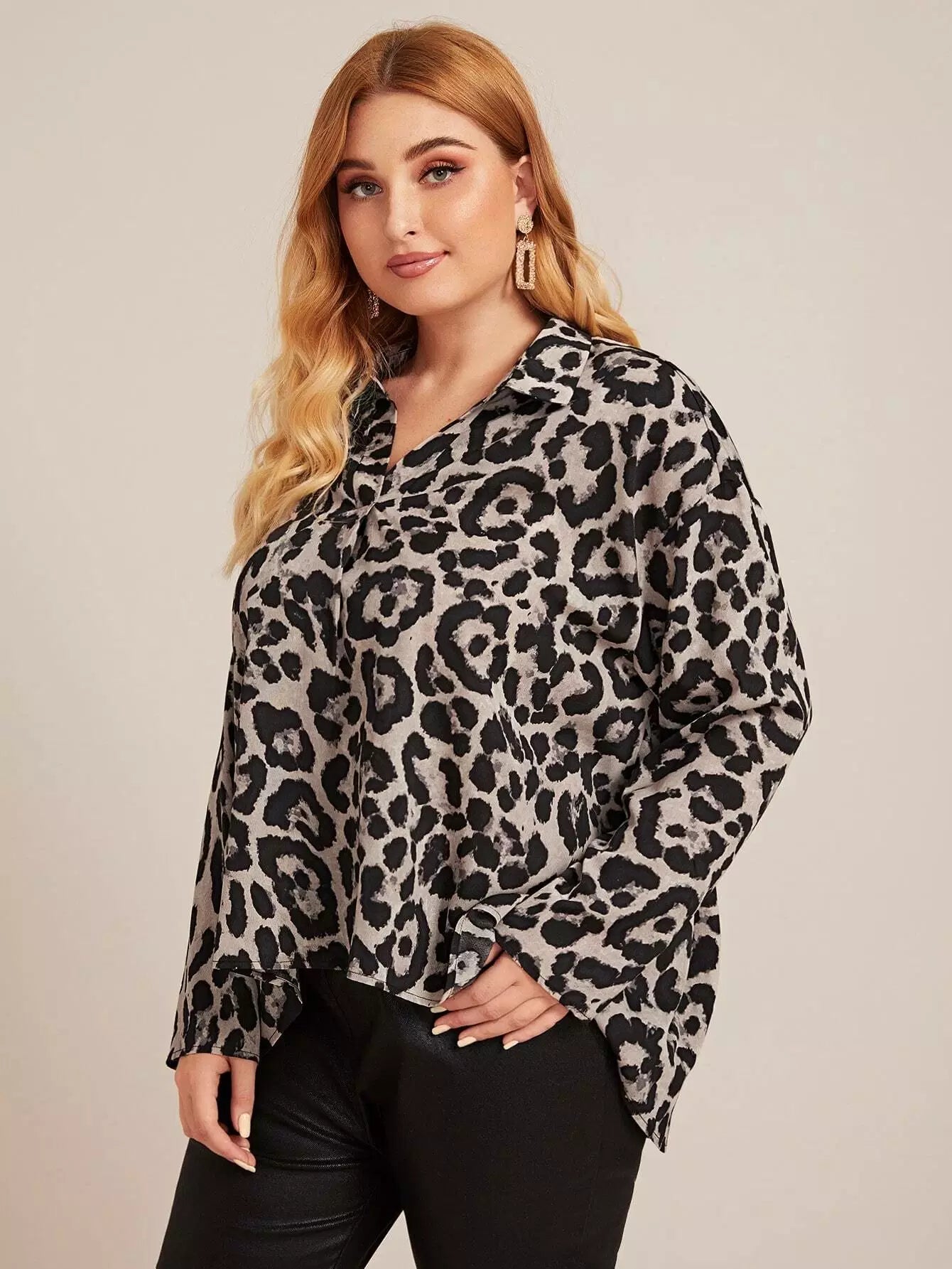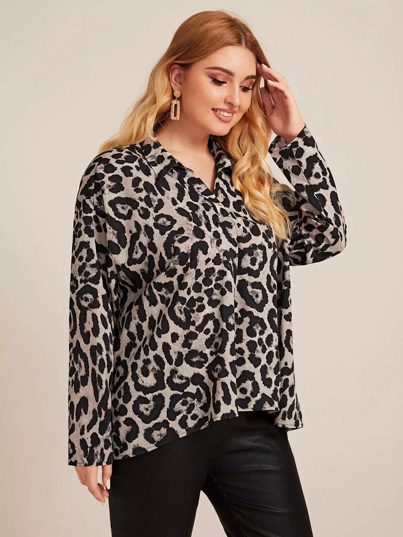 بلوزة منسدلة الأكتاف منسدلة الكتفين بلوزة ليوبارد