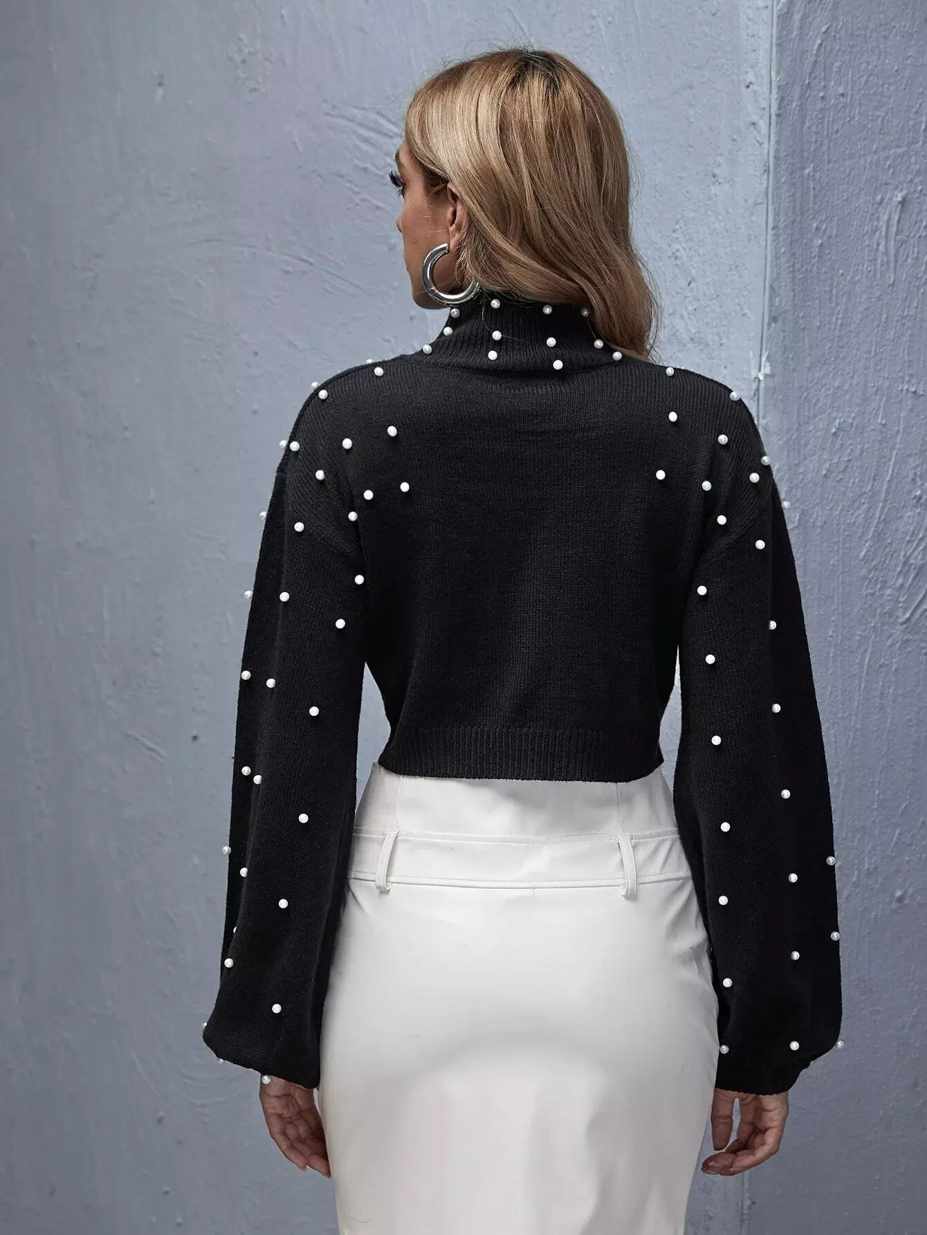 سترة بأكمام أسقف مزينة باللؤلؤ