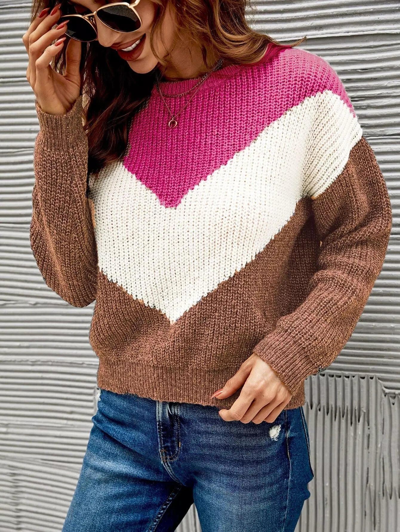 سترة بنقشة شيفرون ملونة