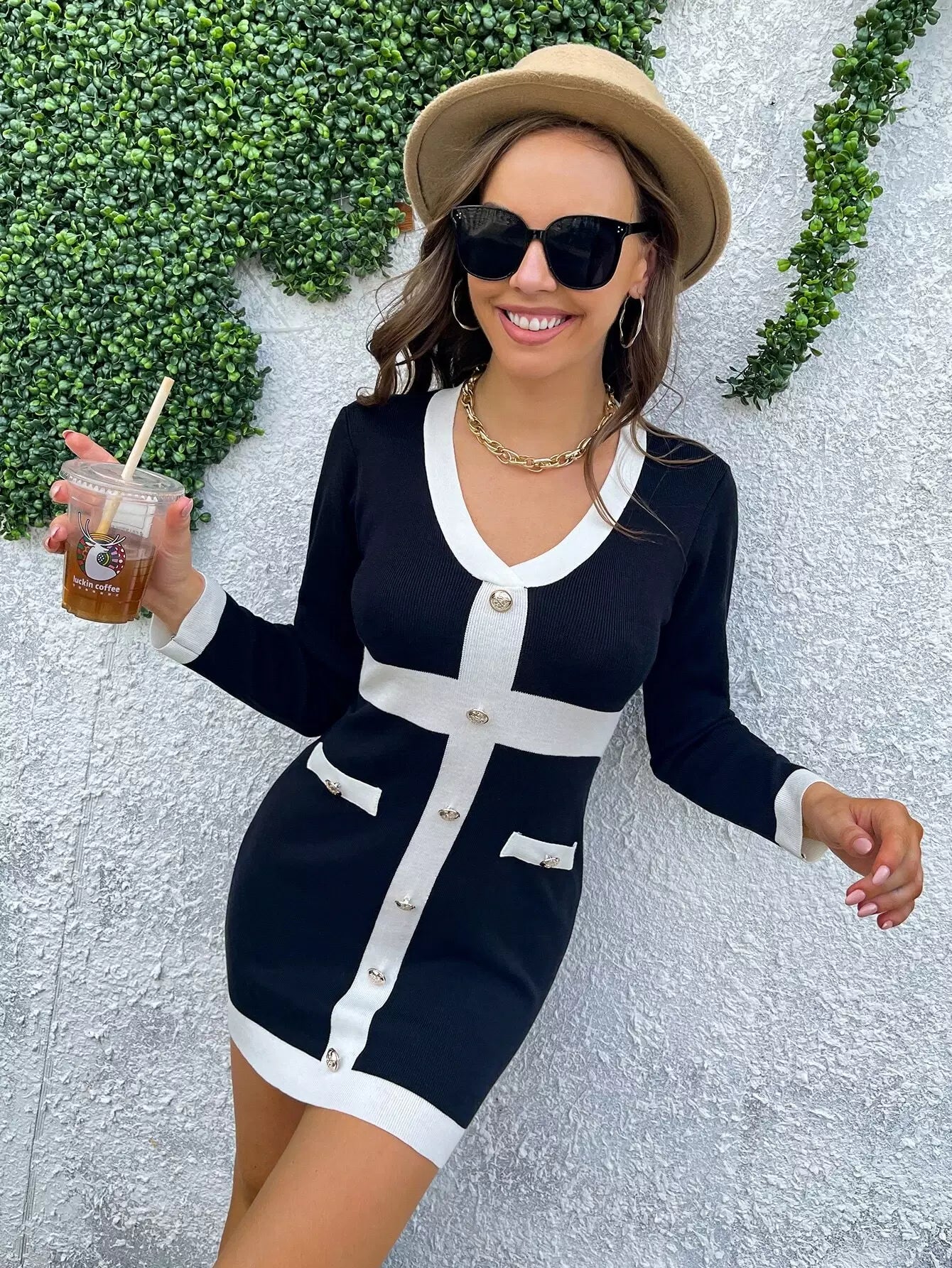 فستان ملون بأزرار أمامية بأزرار من الأمام
