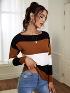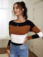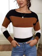 سترة برقبة دائرية ملونة بقطعة قماش ملونة