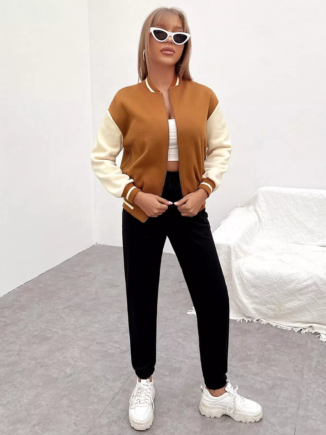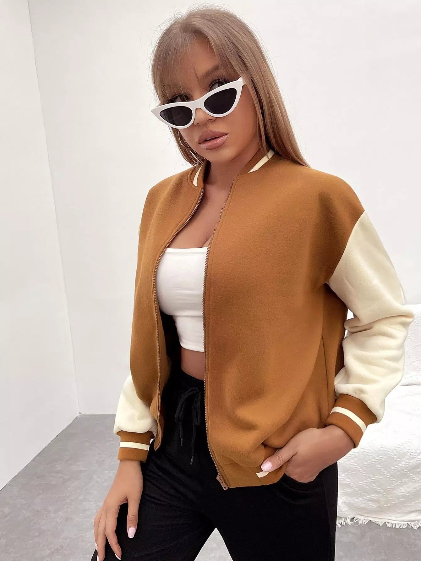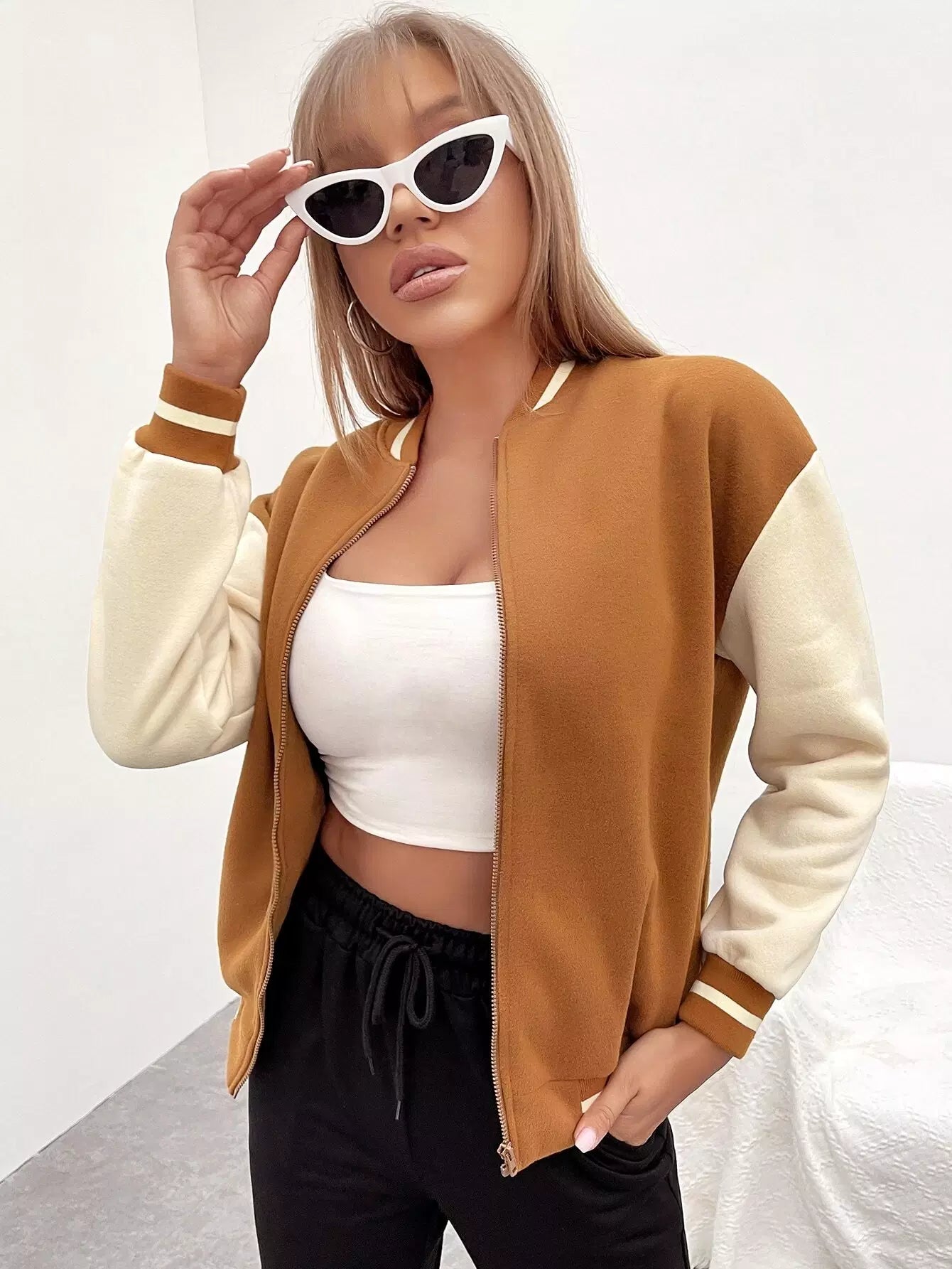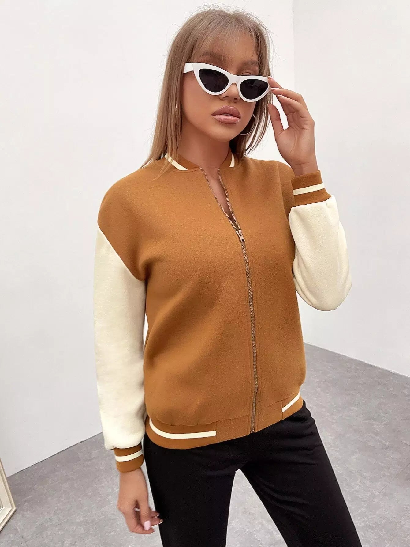 جاكيت ملون بسحّاب منسدل الكتفين بسحاب منسدل