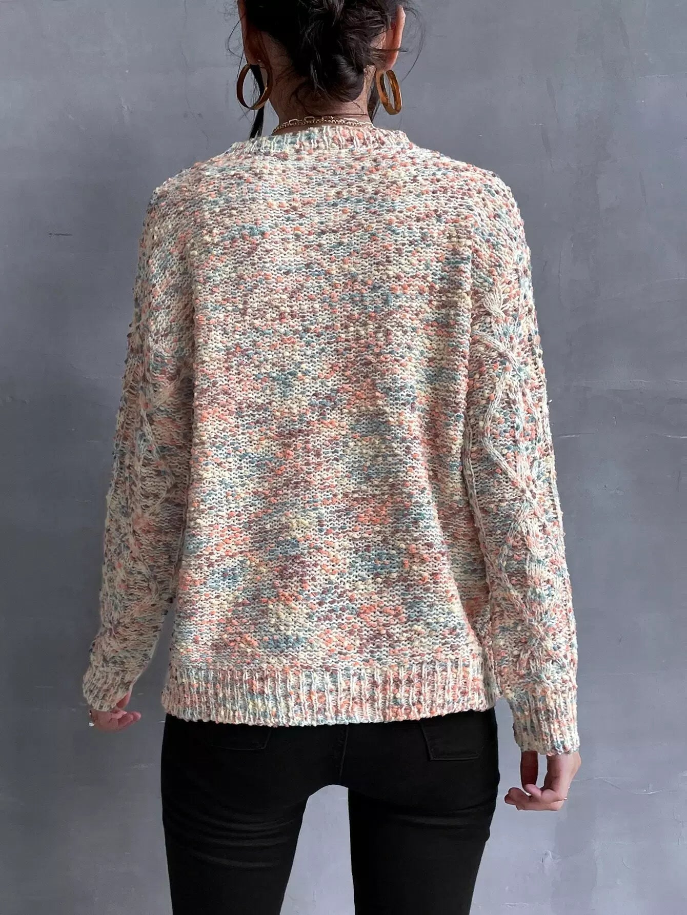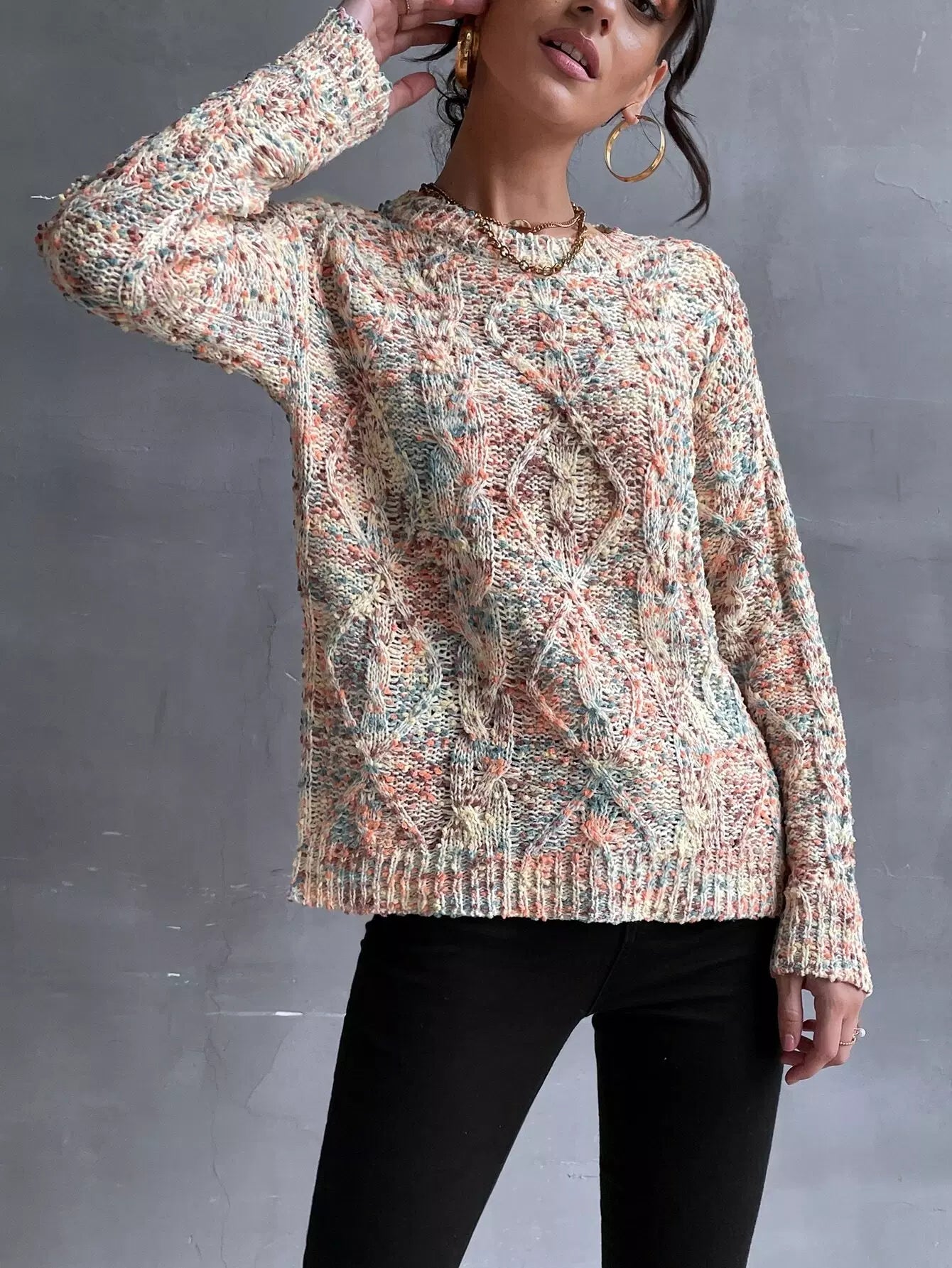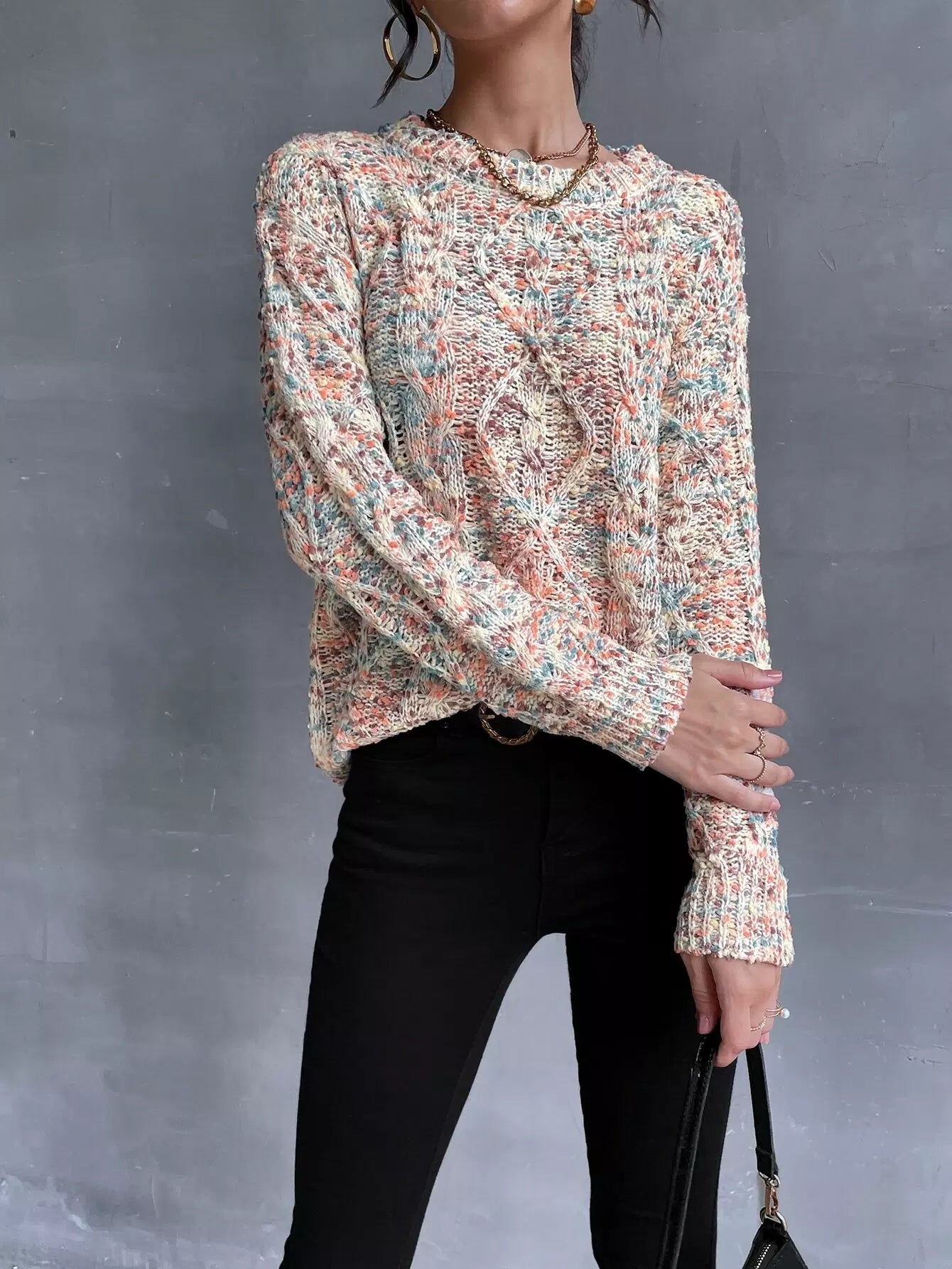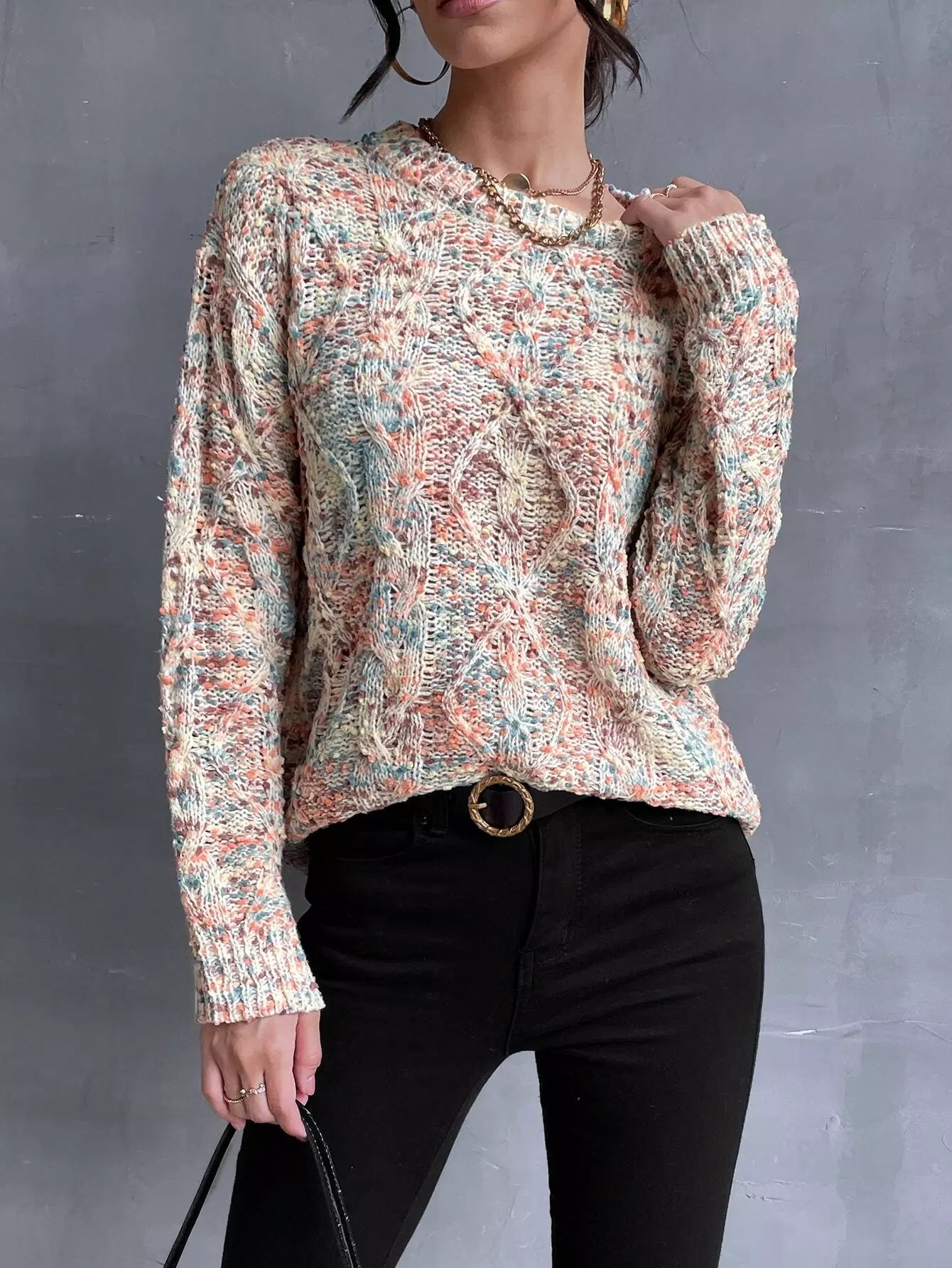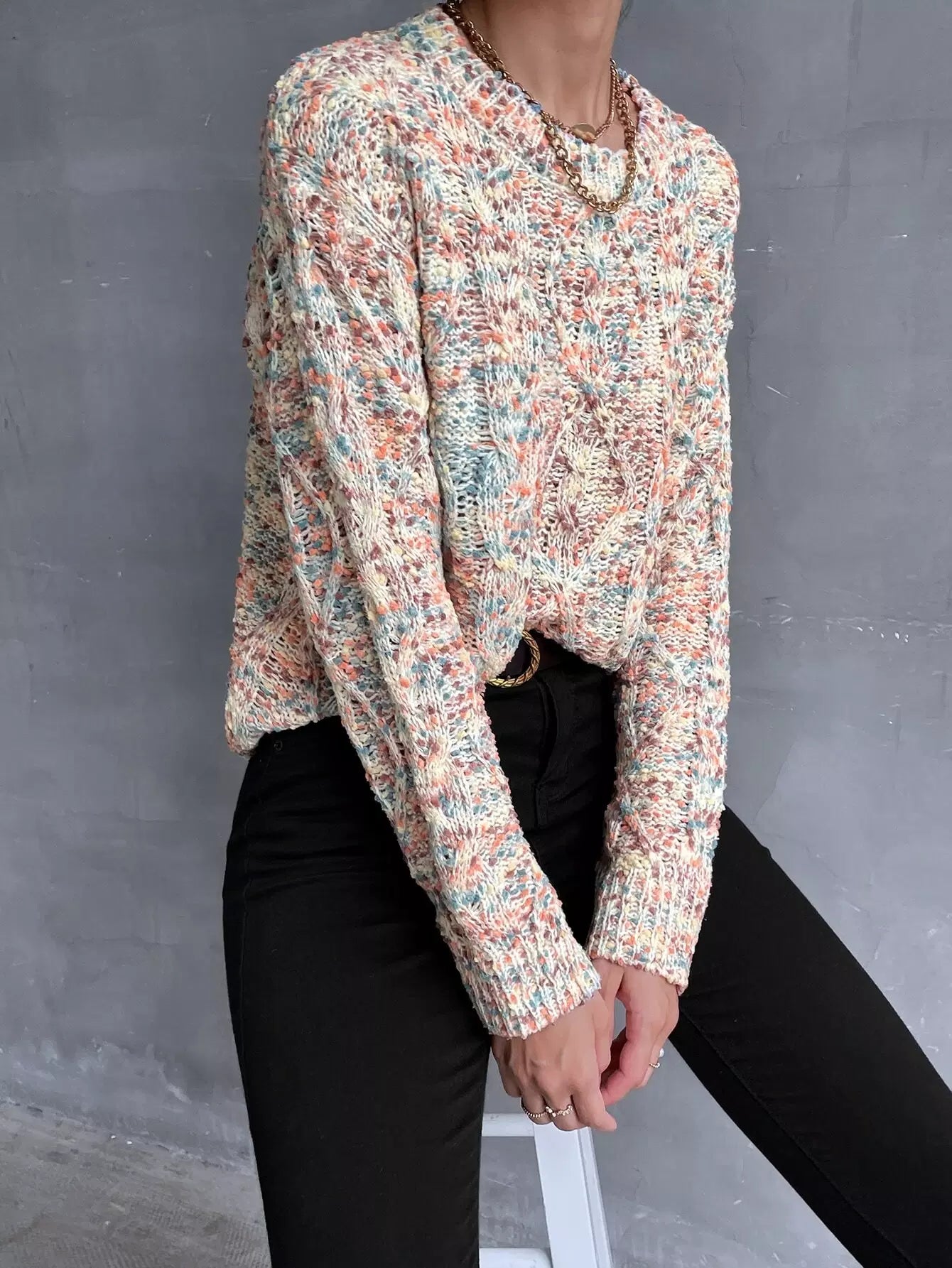 كنزة منسدلة الكتفين محبوكة بكابل محبوكة بالألوان