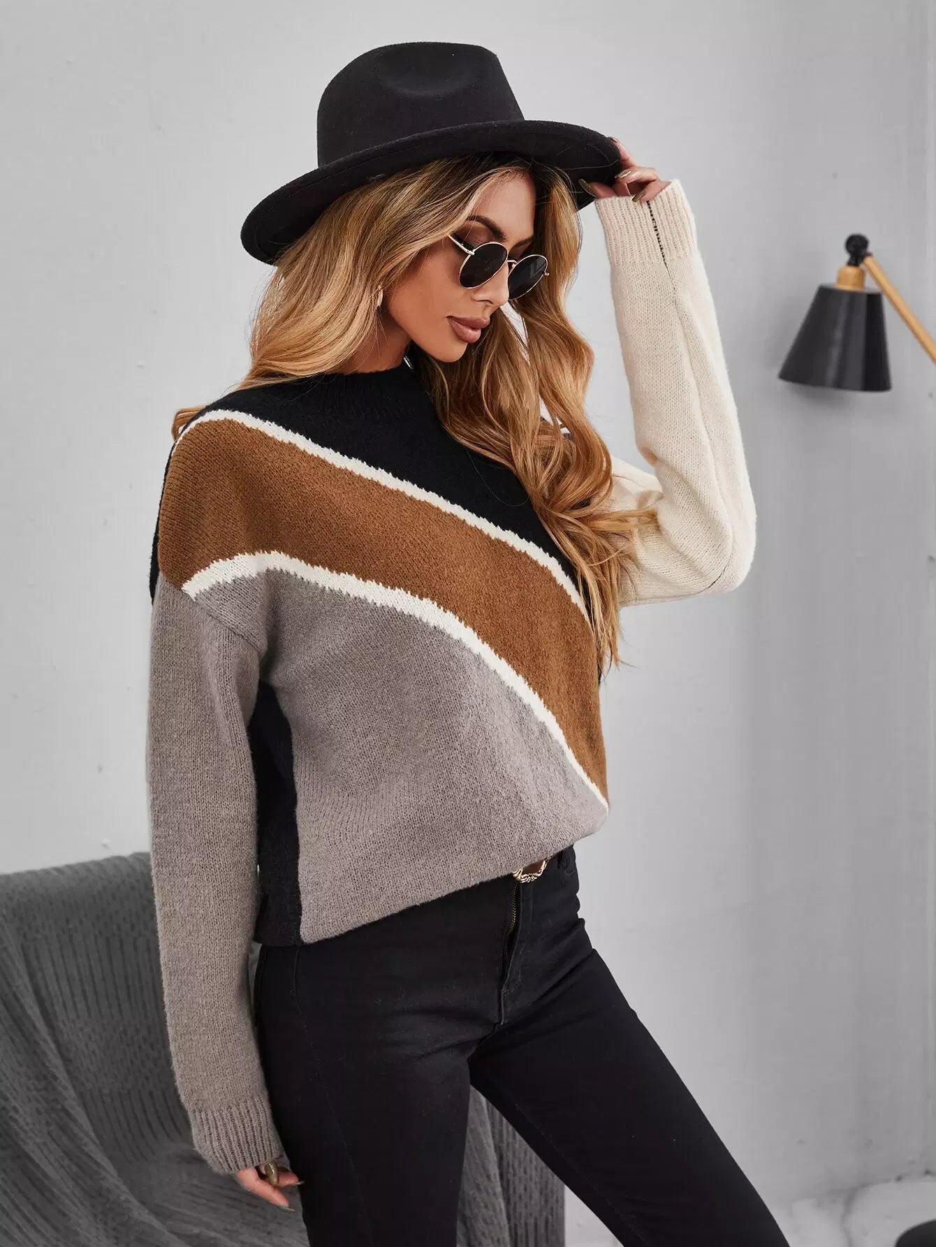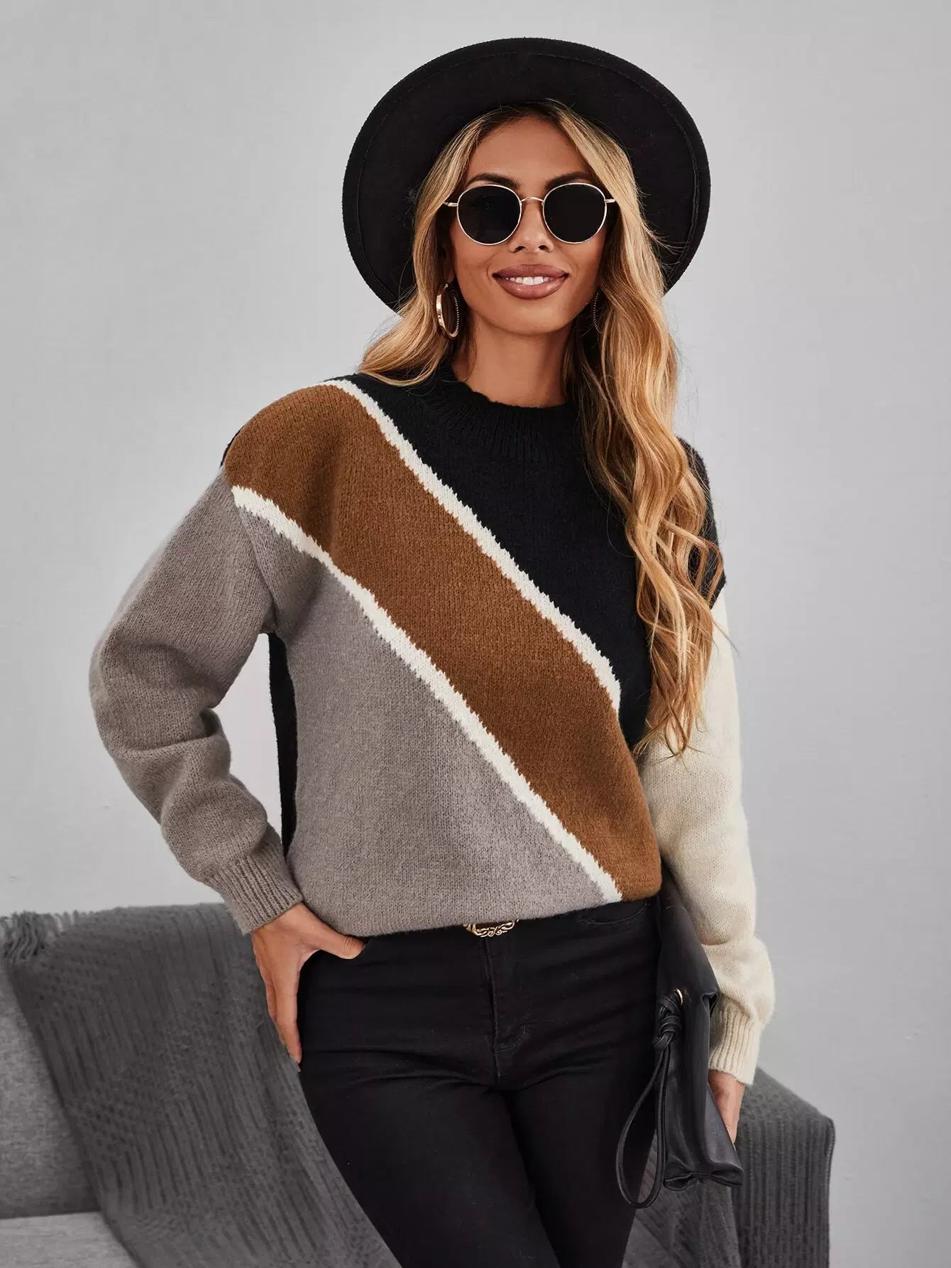 سترة منسدلة الكتفين ملونة ملونة