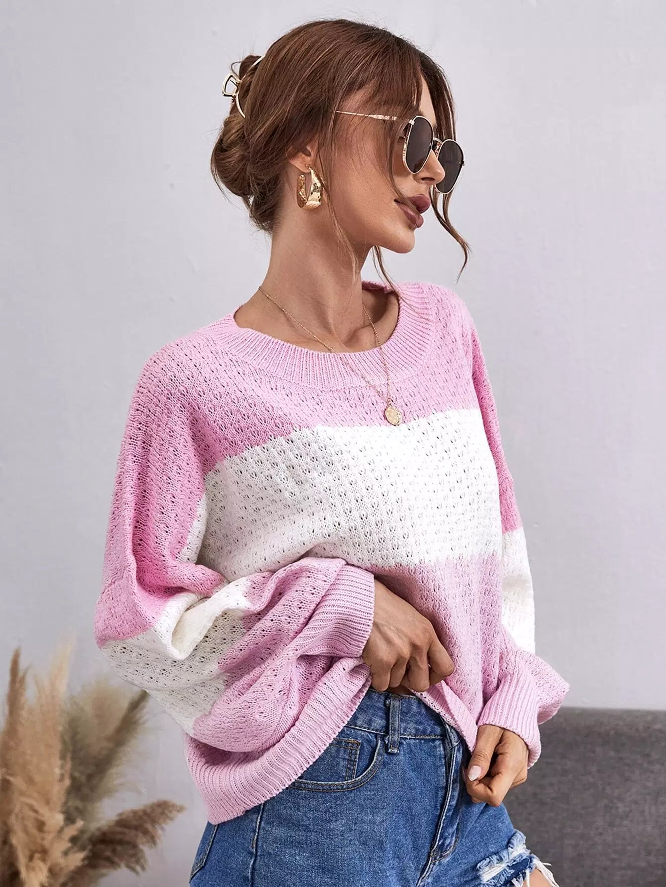 سترة منسدلة الكتفين ملونة ملونة