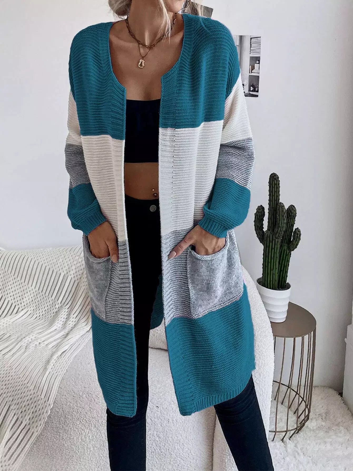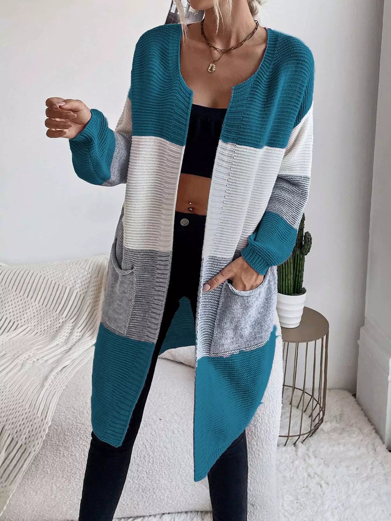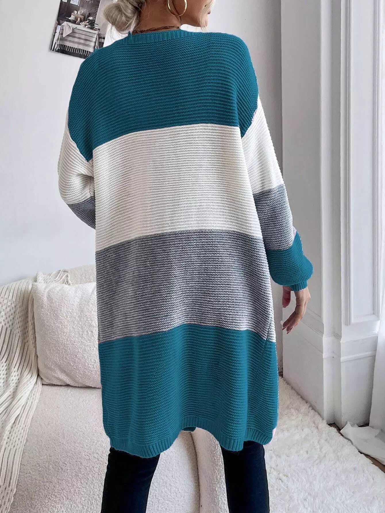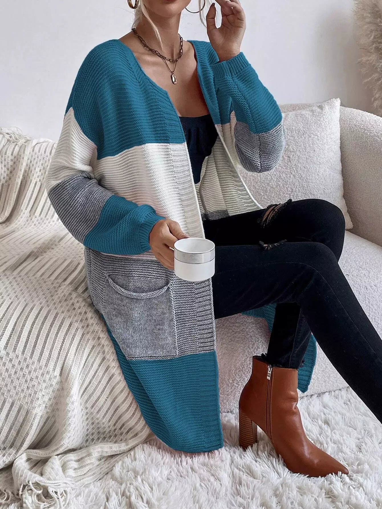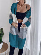 كارديجان صوفي منسدل الكتف برقعة على شكل جيب ملون