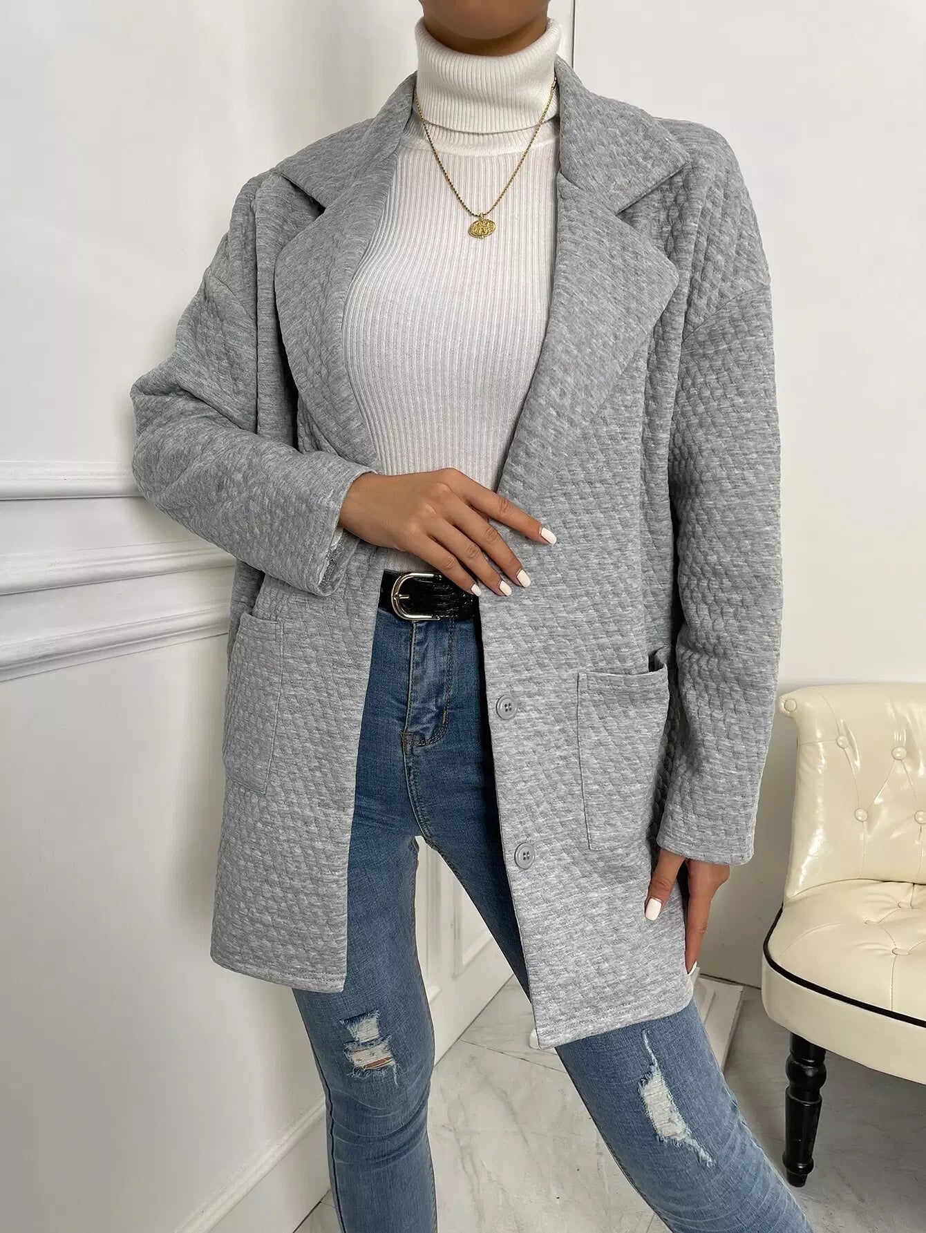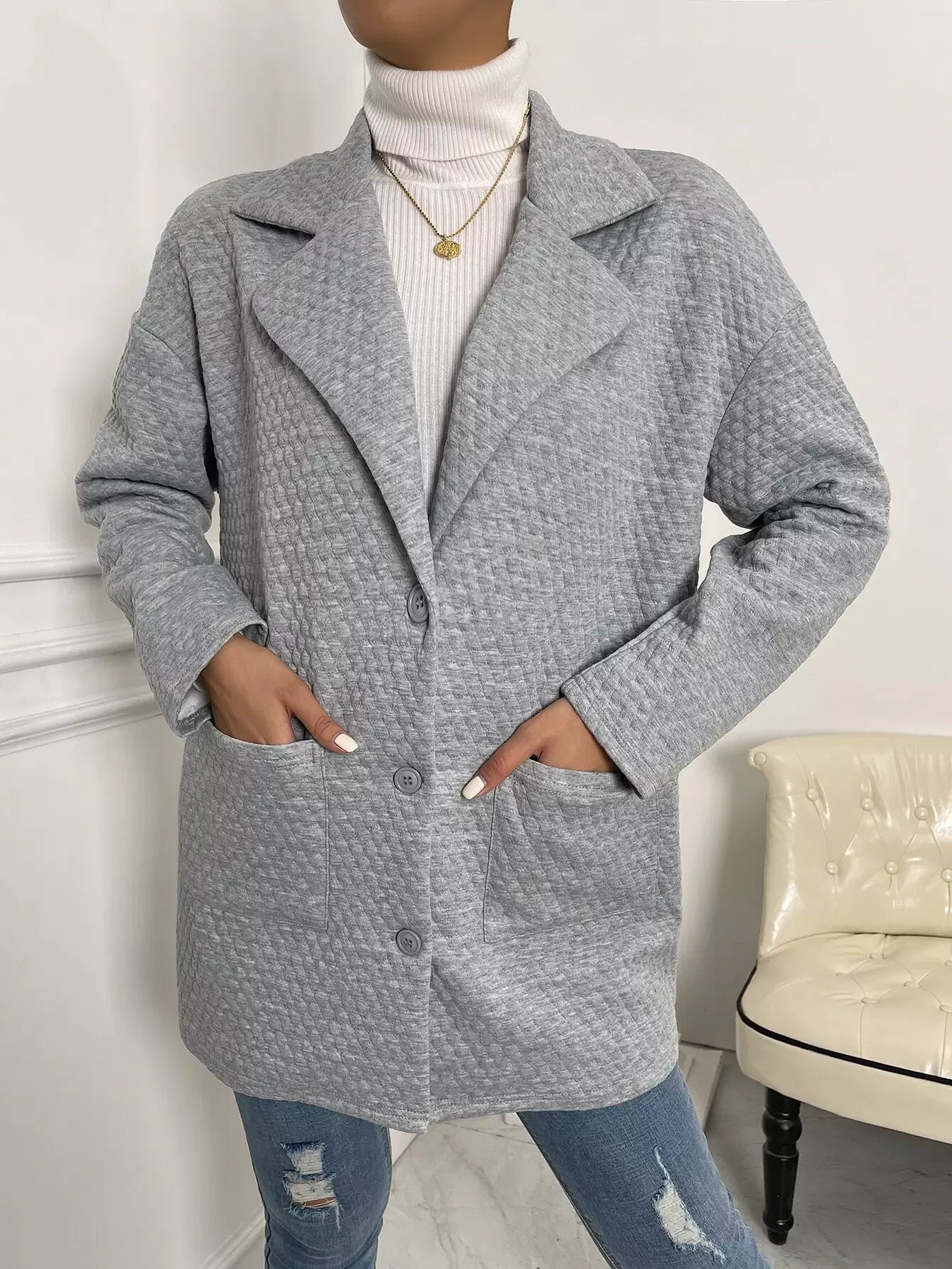 معطف بجيوب منسدلة الكتف