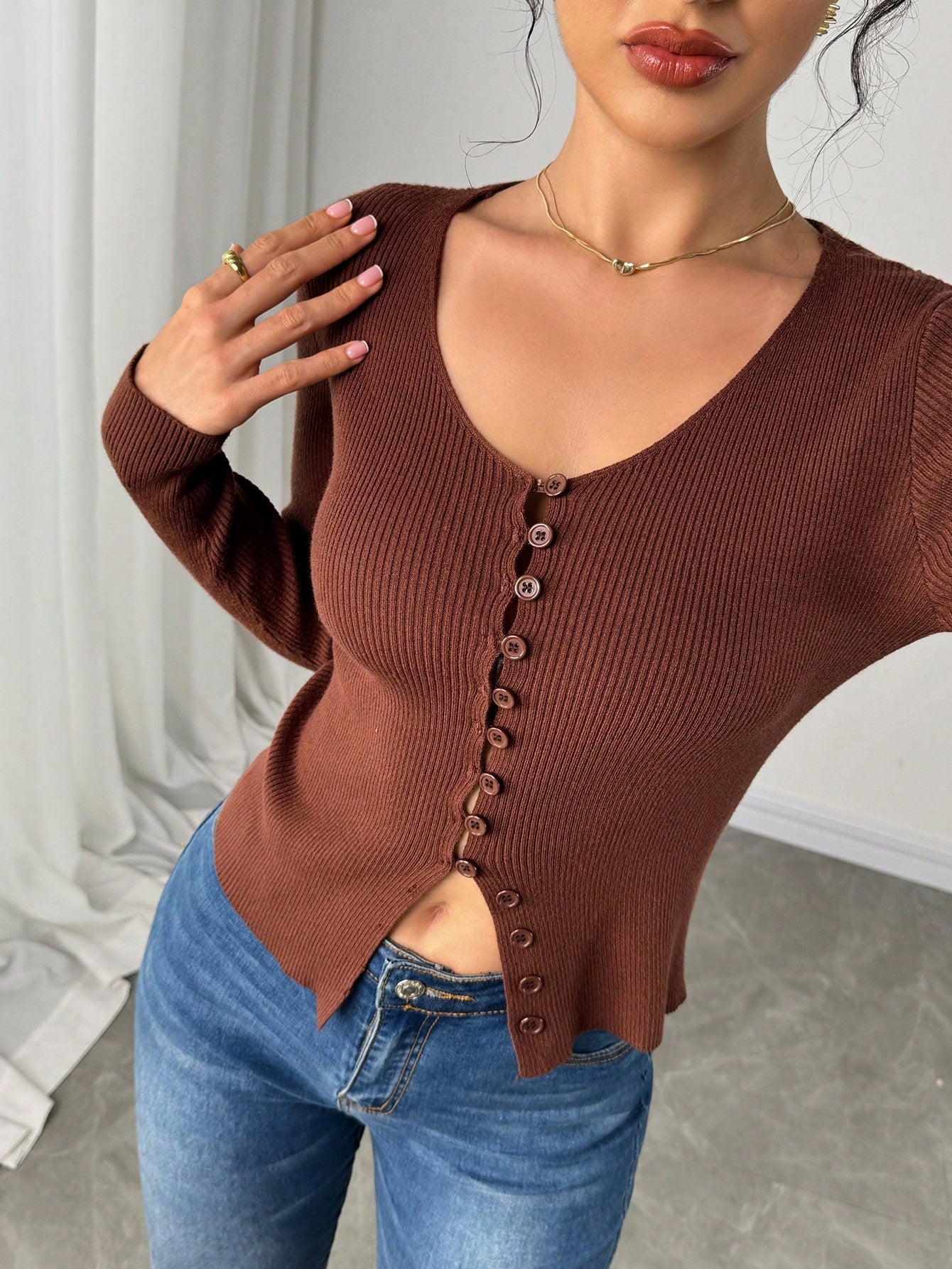 INAWLY Solva V-Neck Single-Breasted Solid Color Knit Cardigan, Simple Fashion Casual Everyday Wear Fall