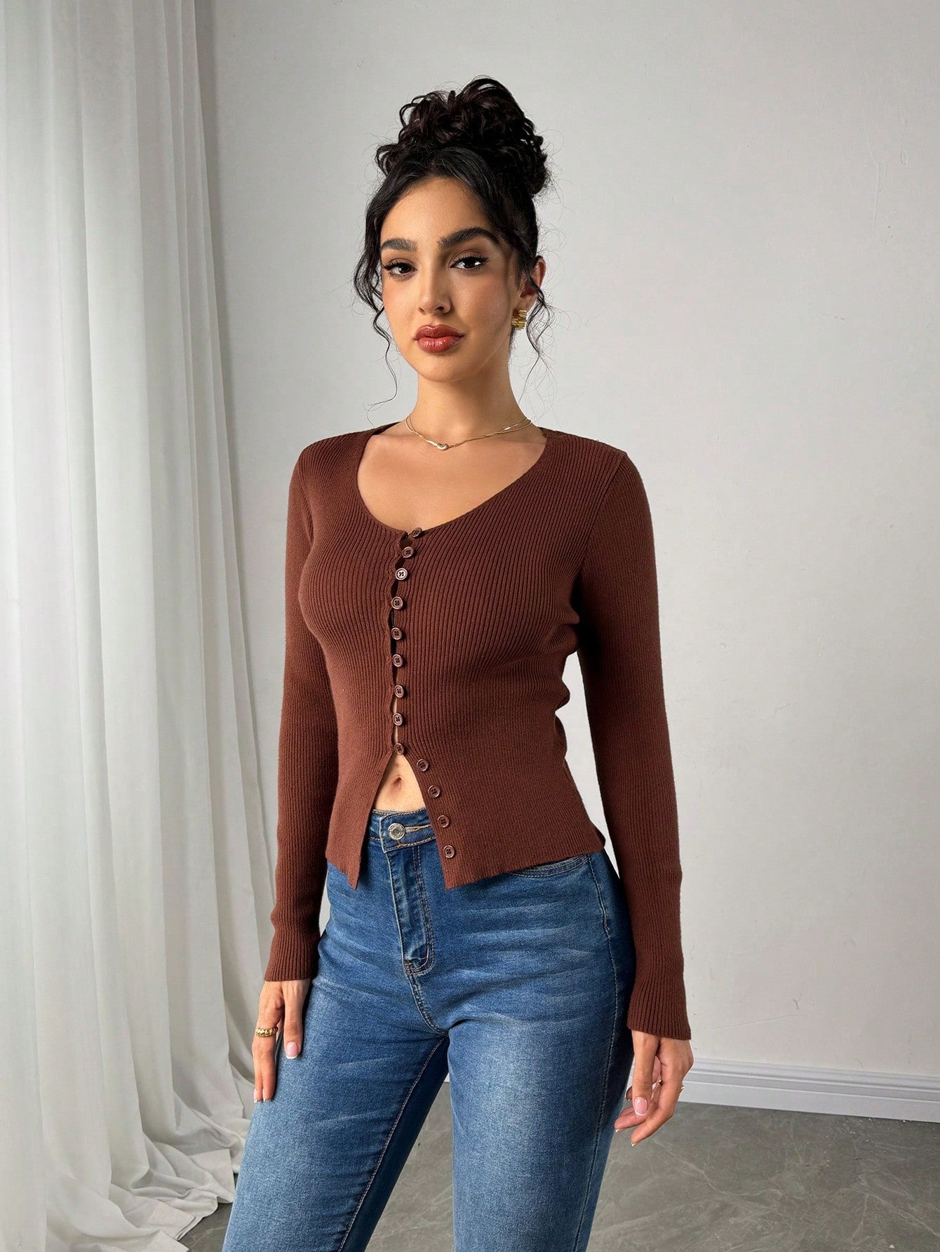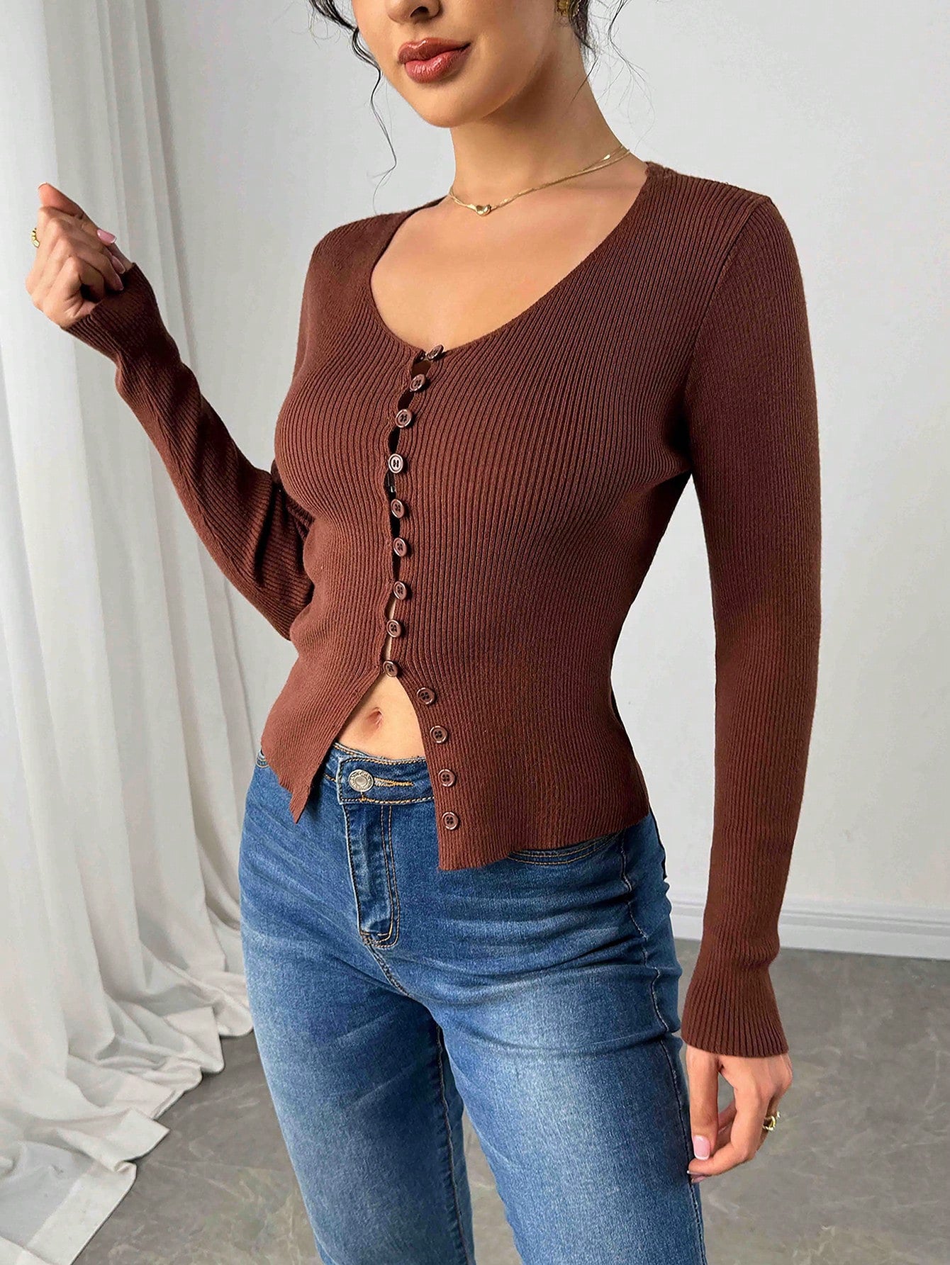 كارديجان INAWLY Solva ذو رقبة على شكل حرف V وصدر واحد بلون واحد، أنيق وبسيط، مناسب للارتداء اليومي في الخريف
