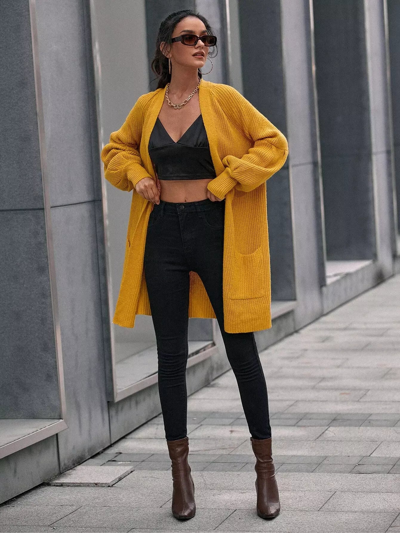 كارديجان بأكمام فانوس مفتوح من الأمام