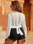 سترة صوفية محبوكة مفتوحة ملفوفة بربطة عنق على الظهر