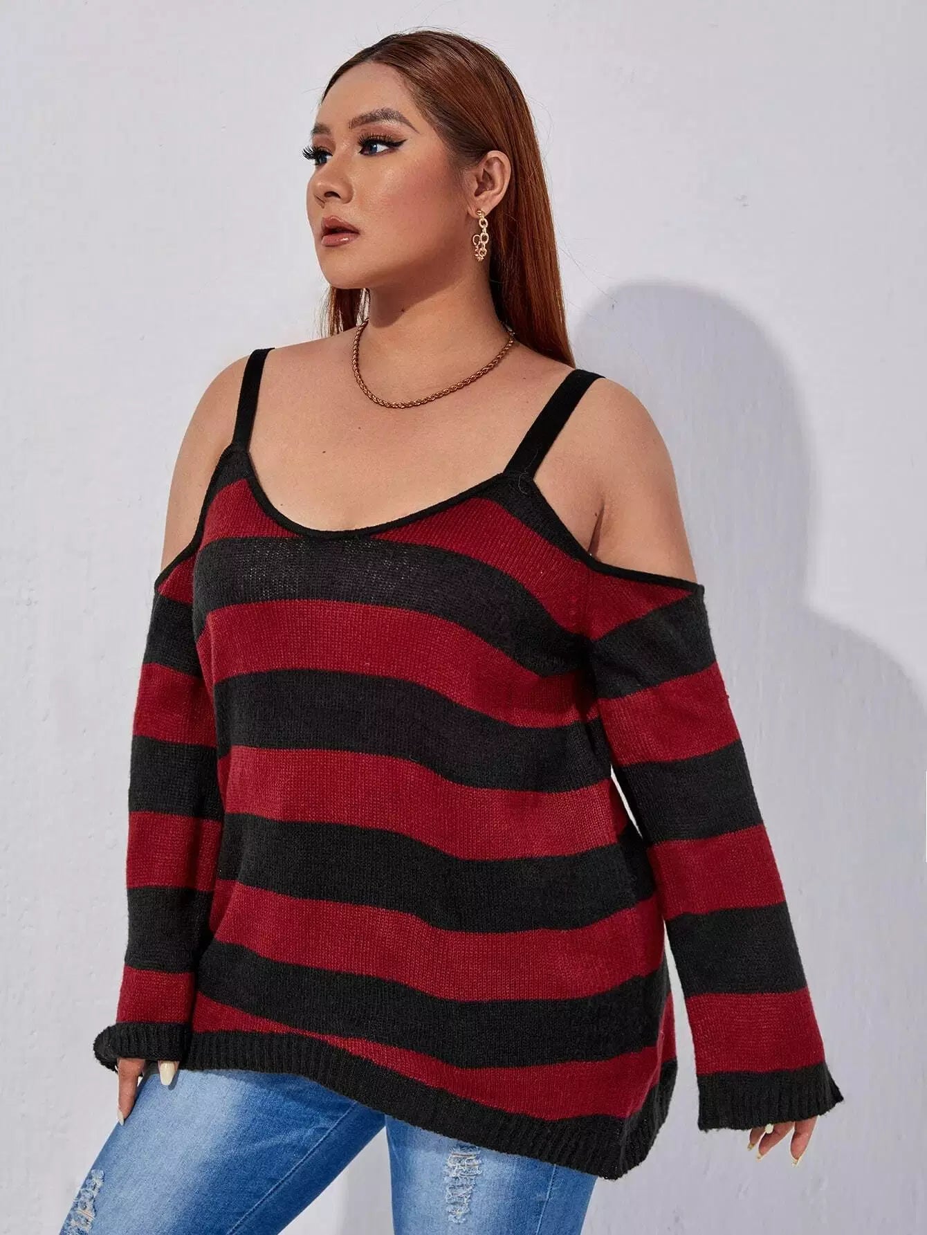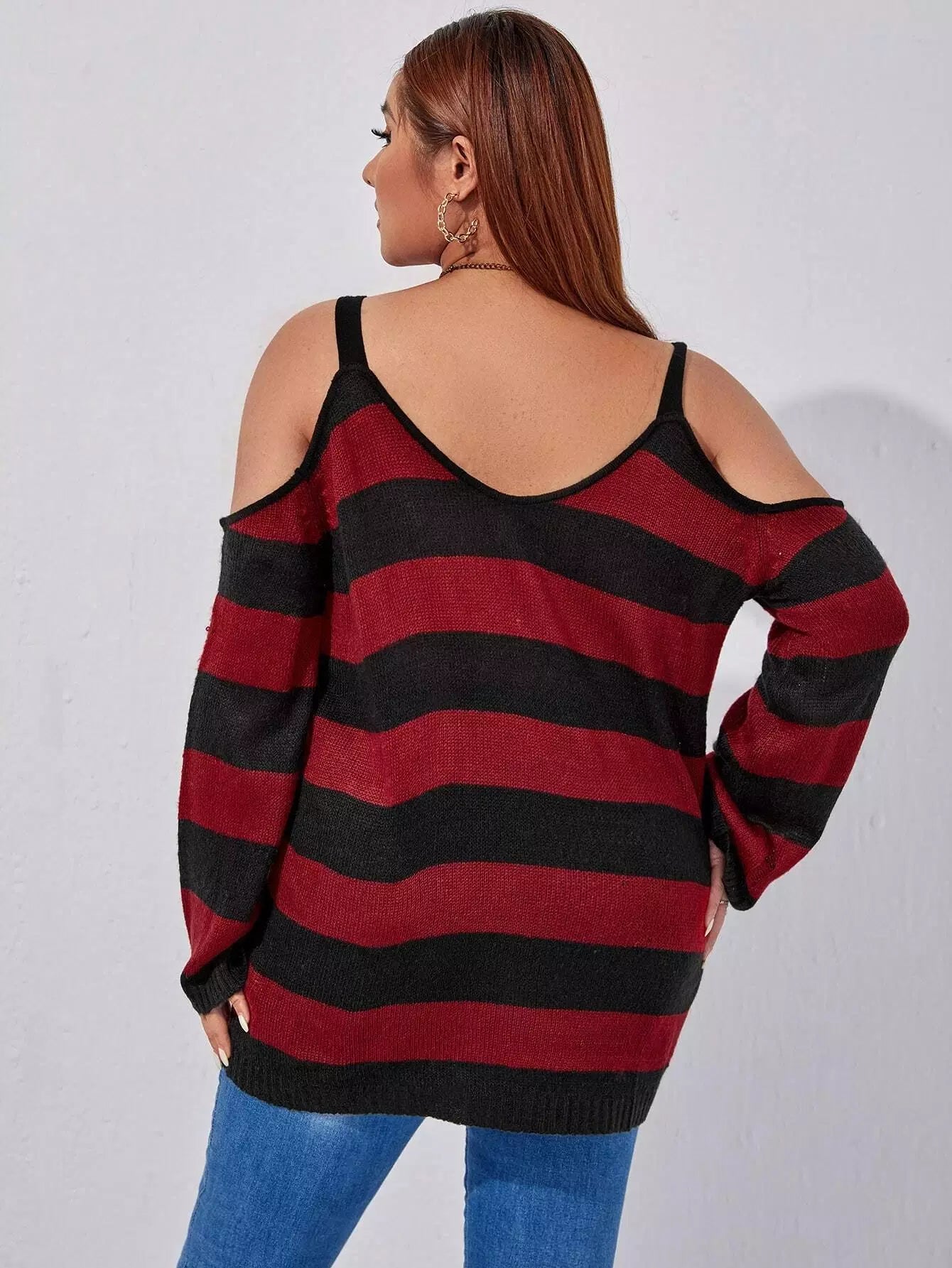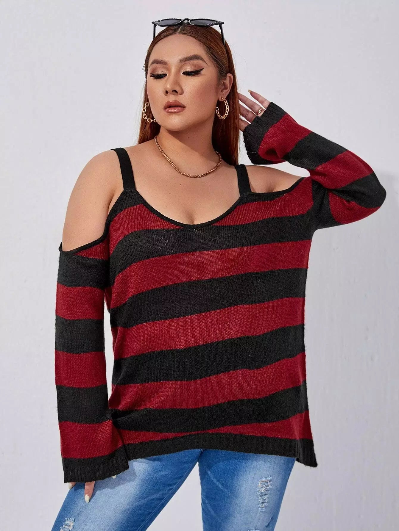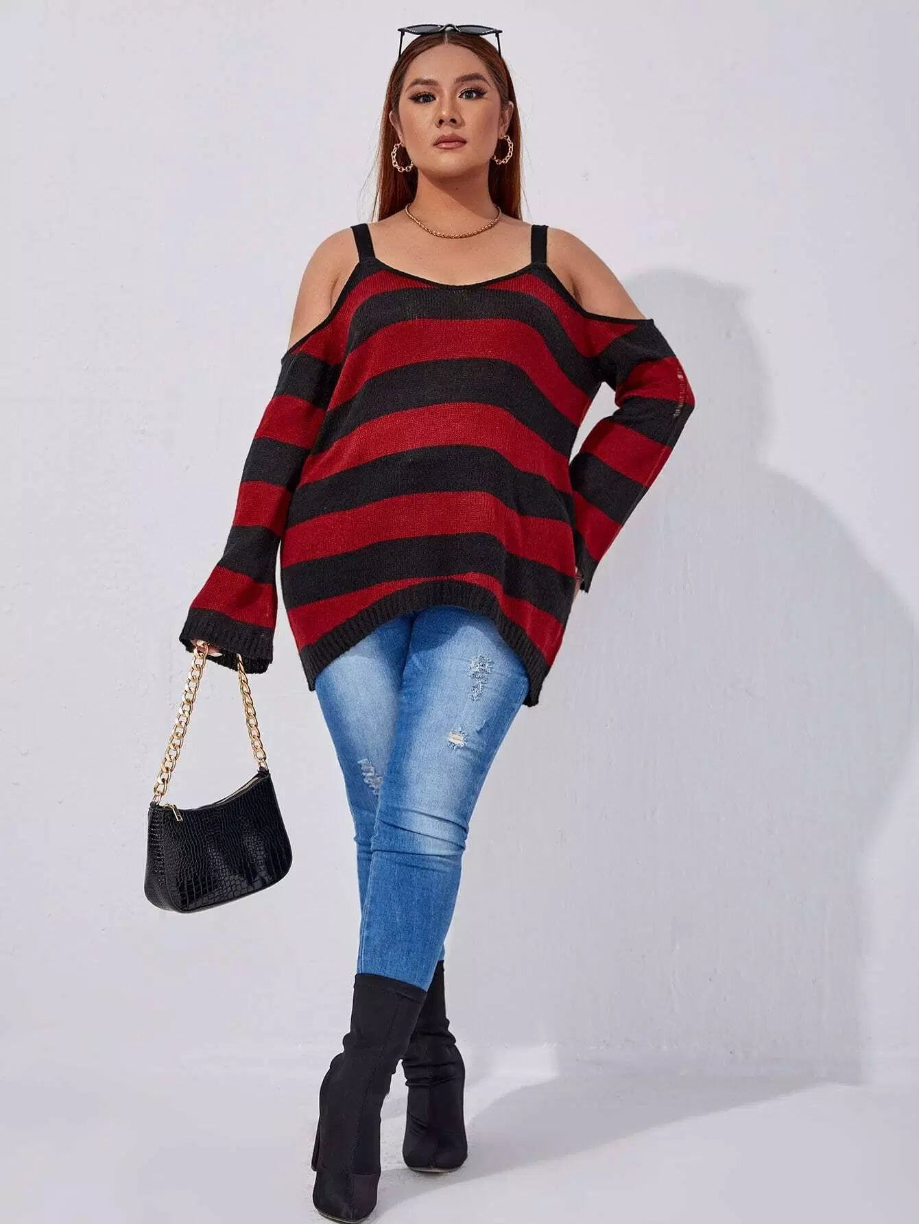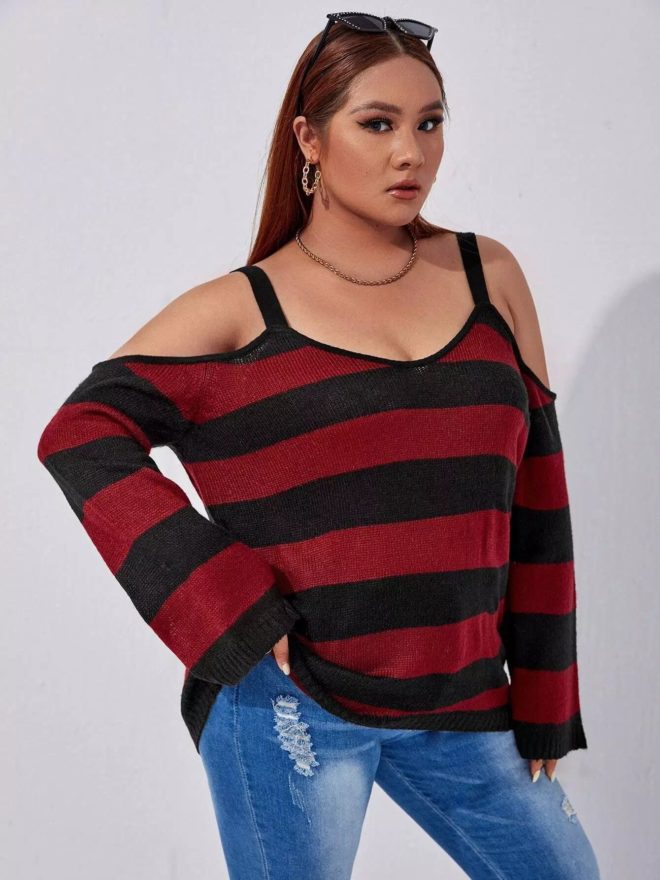 كنزة بدون أكتاف باردة ملونة بلون زائد