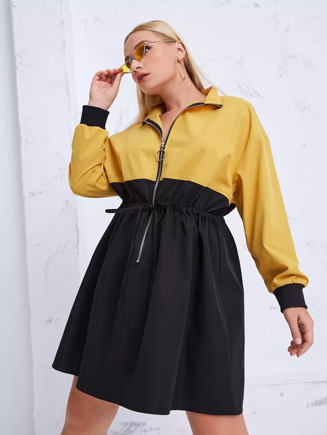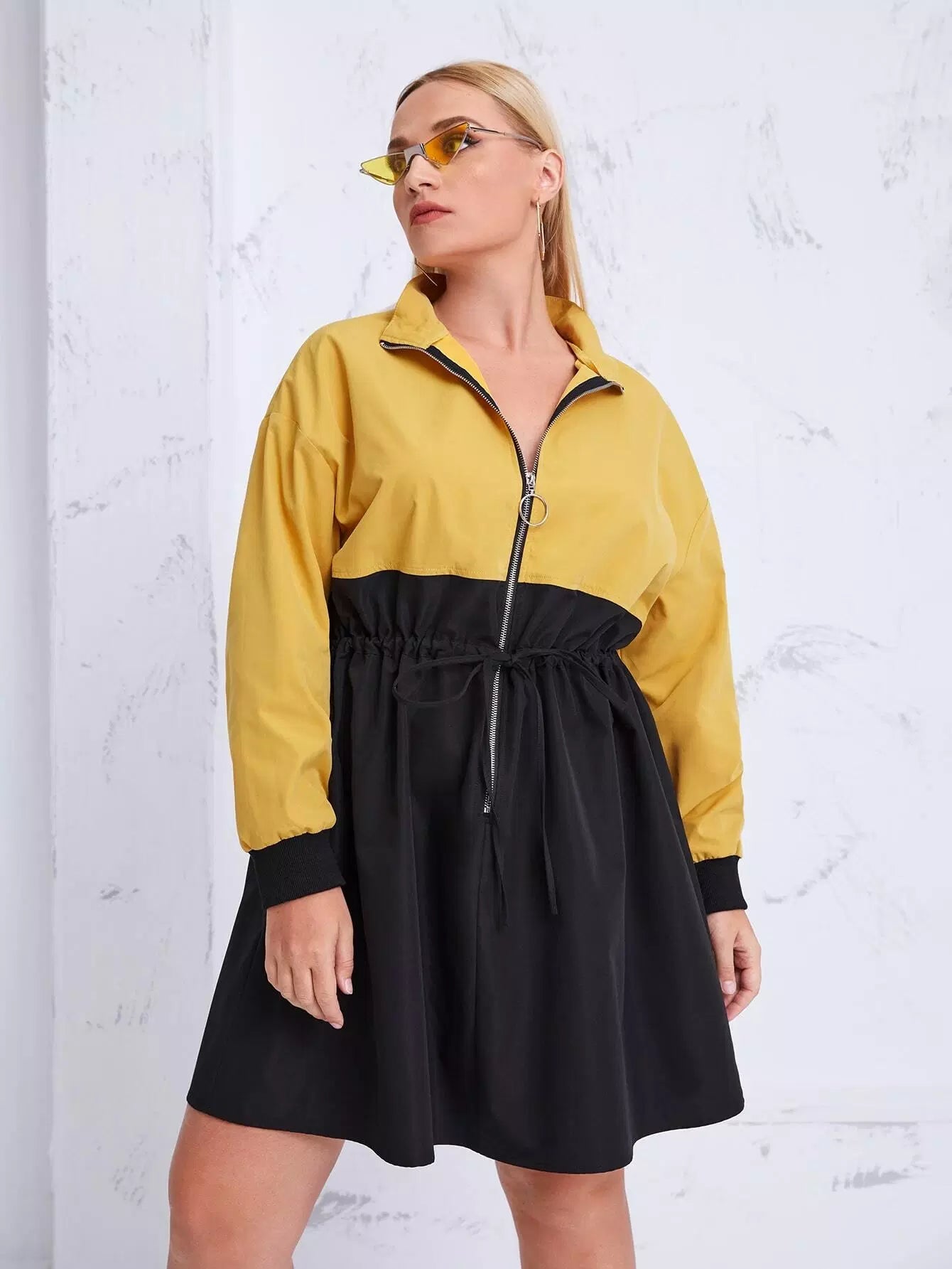 جاكيت بخصر برباط خصر ملون بلون زائد