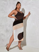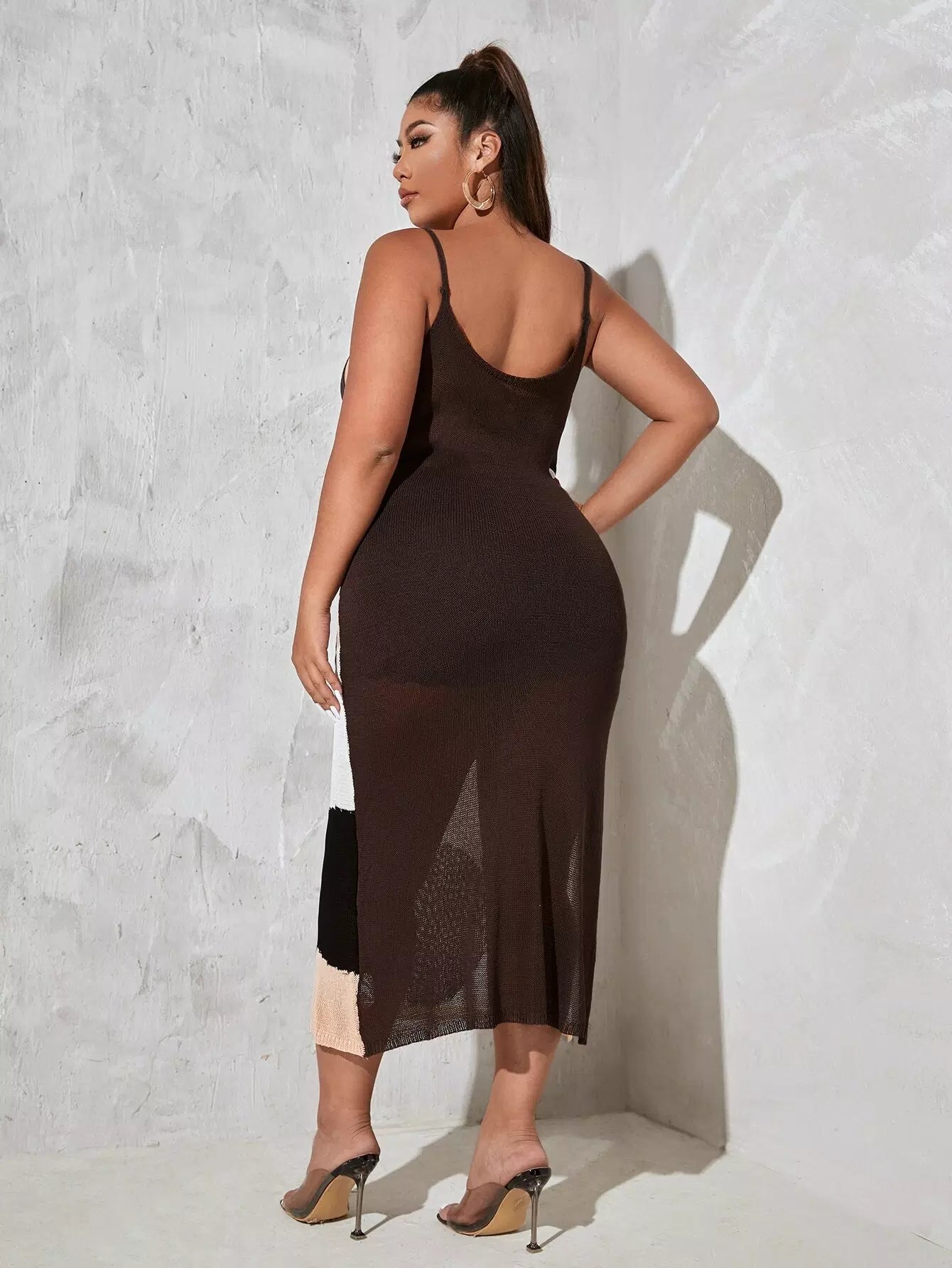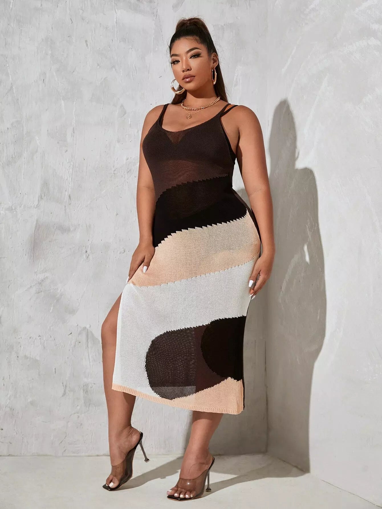 فستان سويت شبيه بالألوان زائد بسترة كمّي منقسمة الفخذين