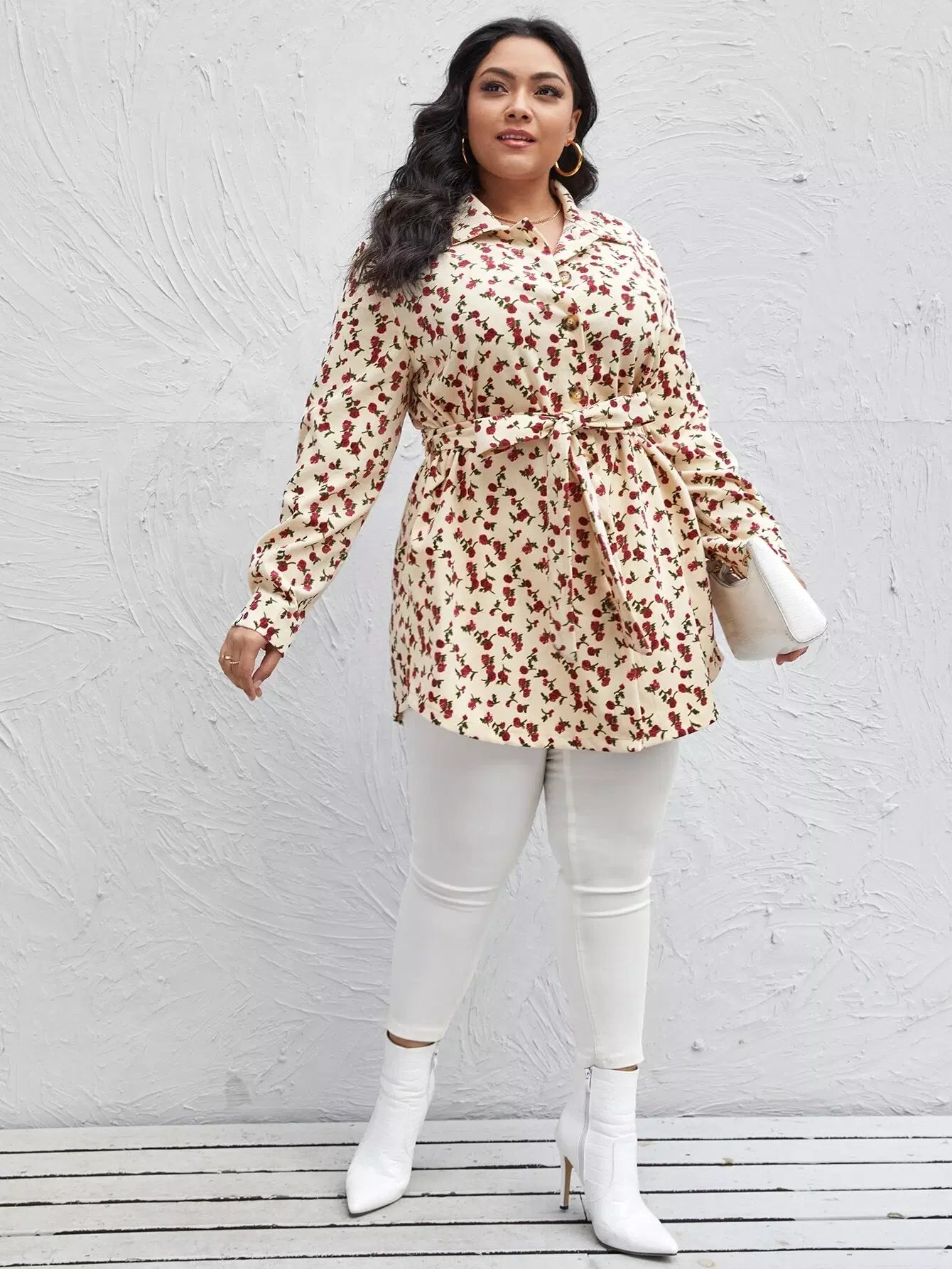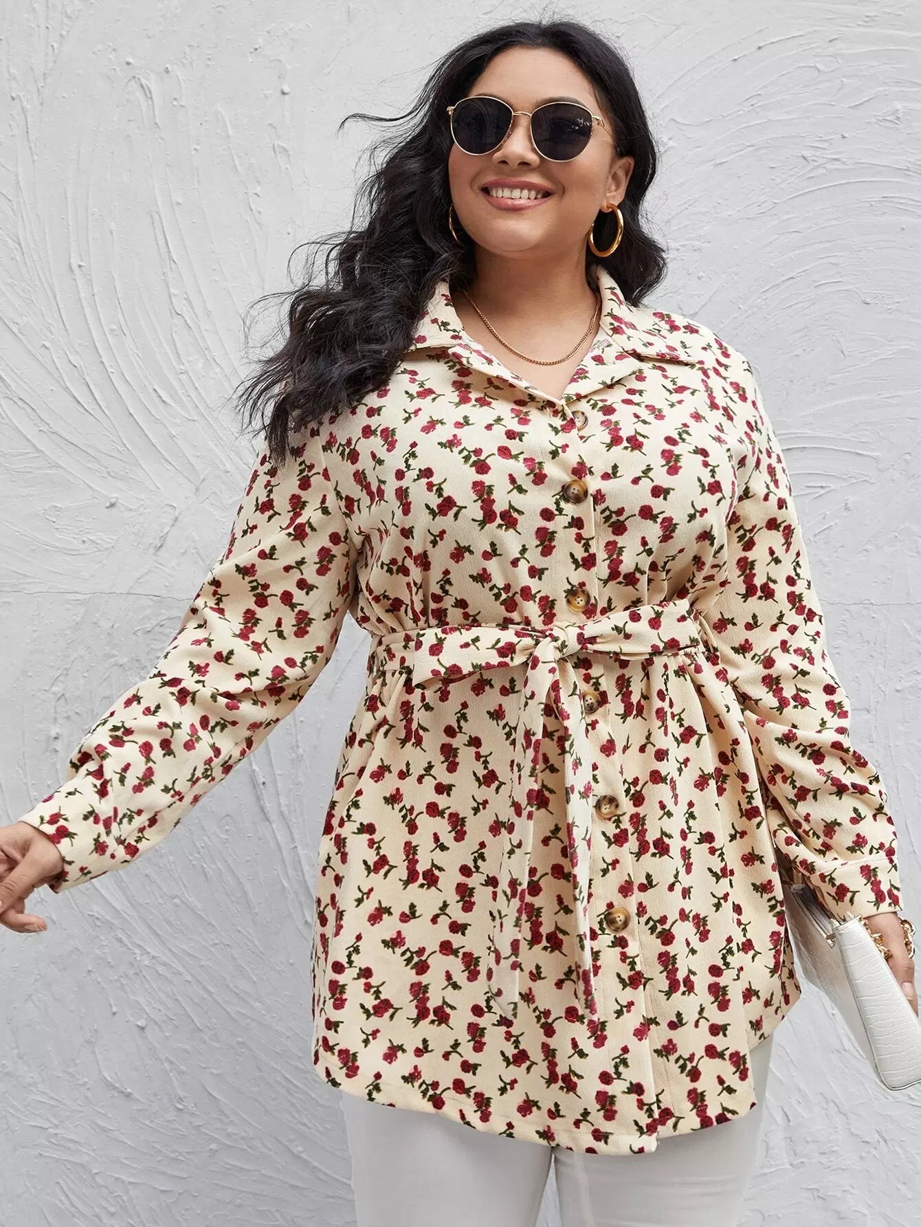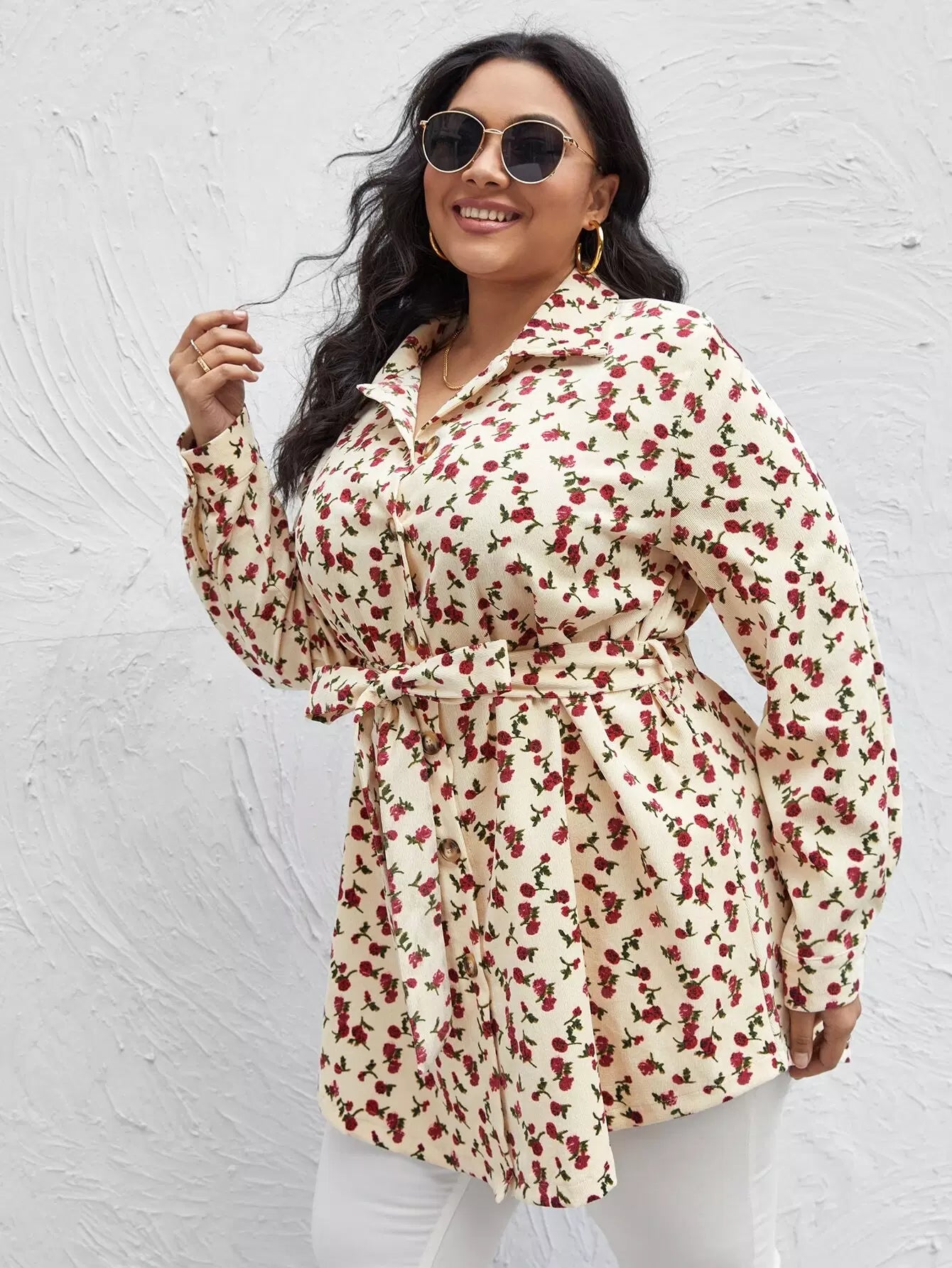 بالإضافة إلى قميص Ditsy سروال قصير مزين بالزهور بدون حزام