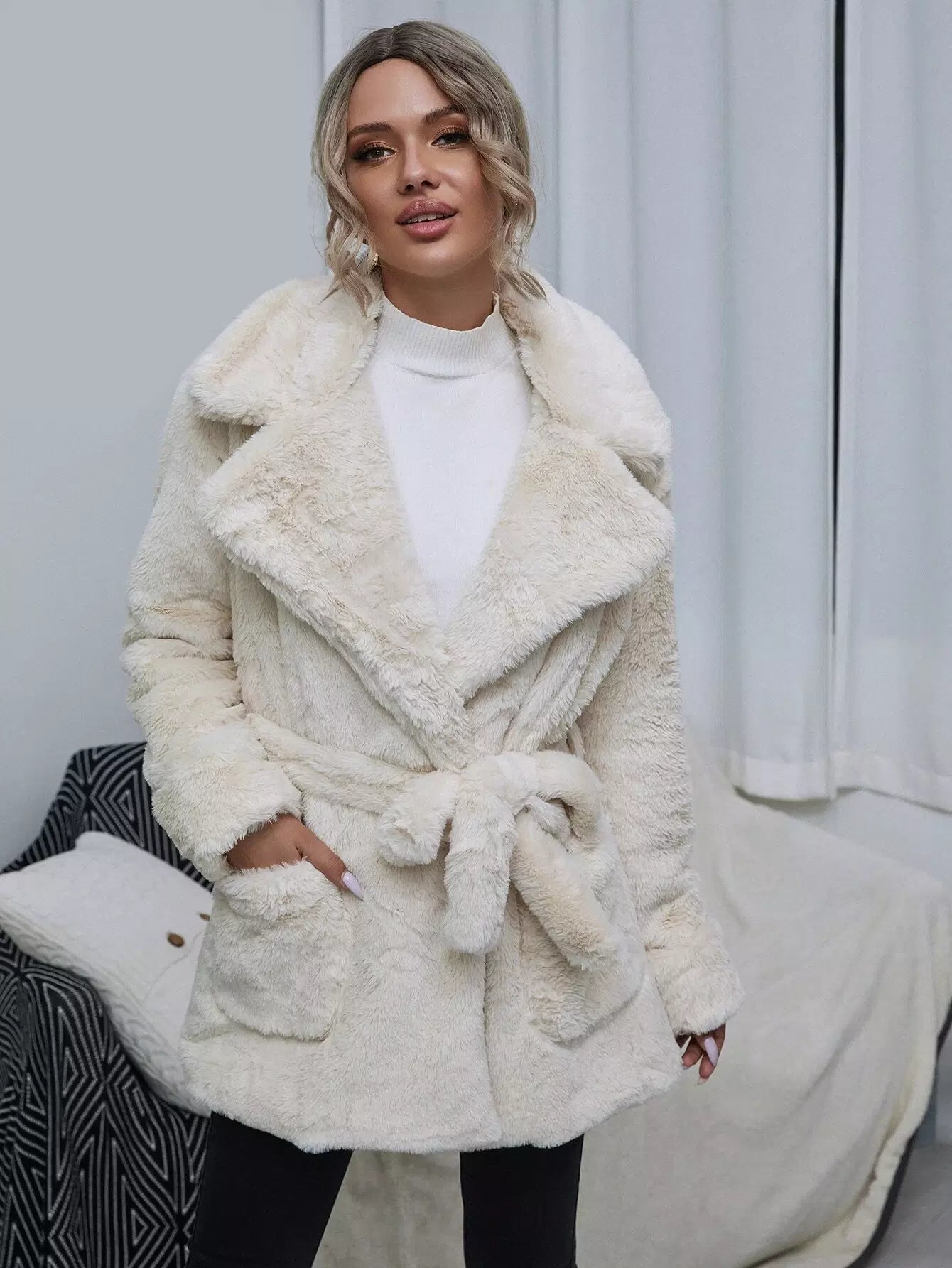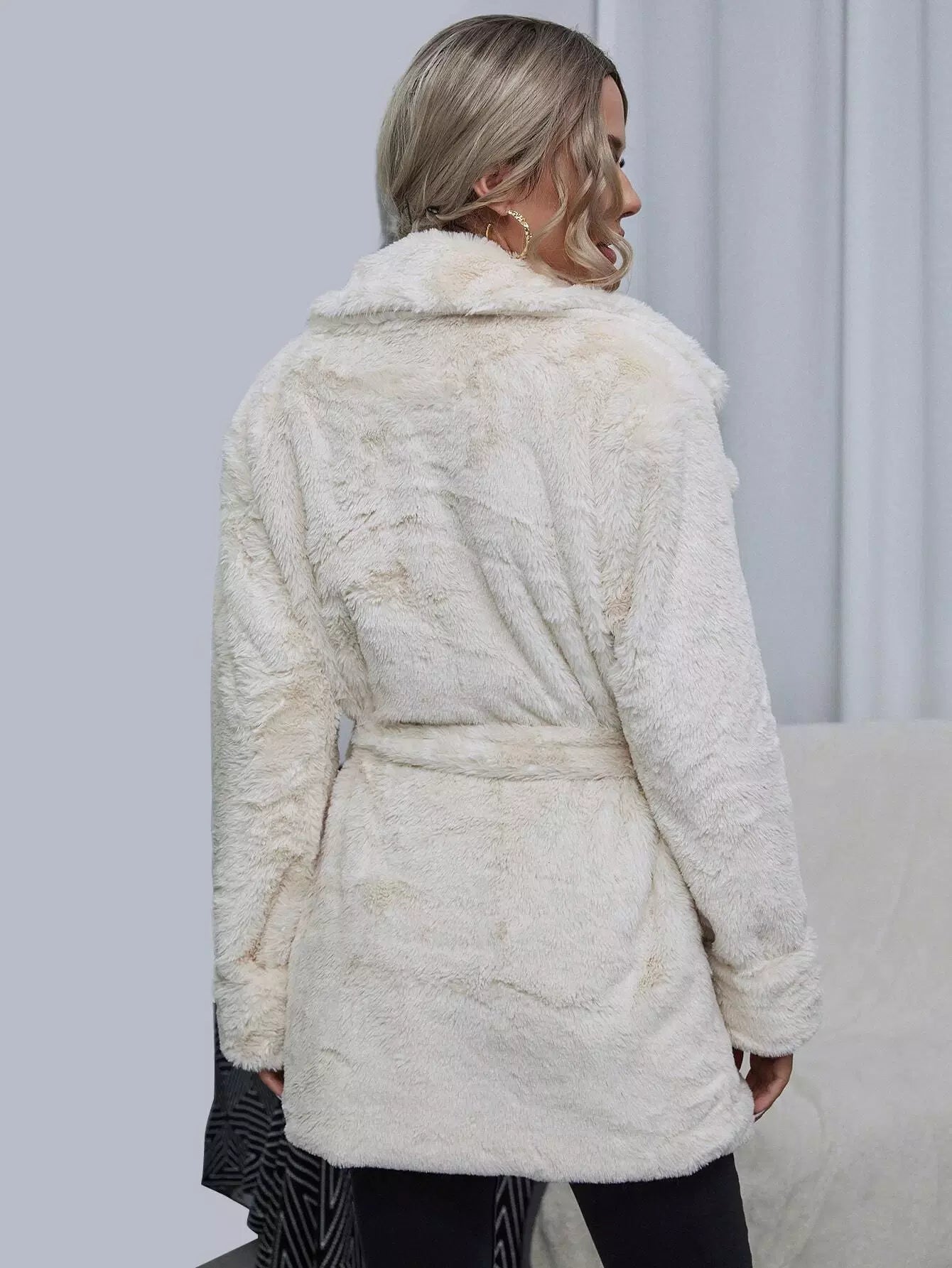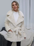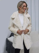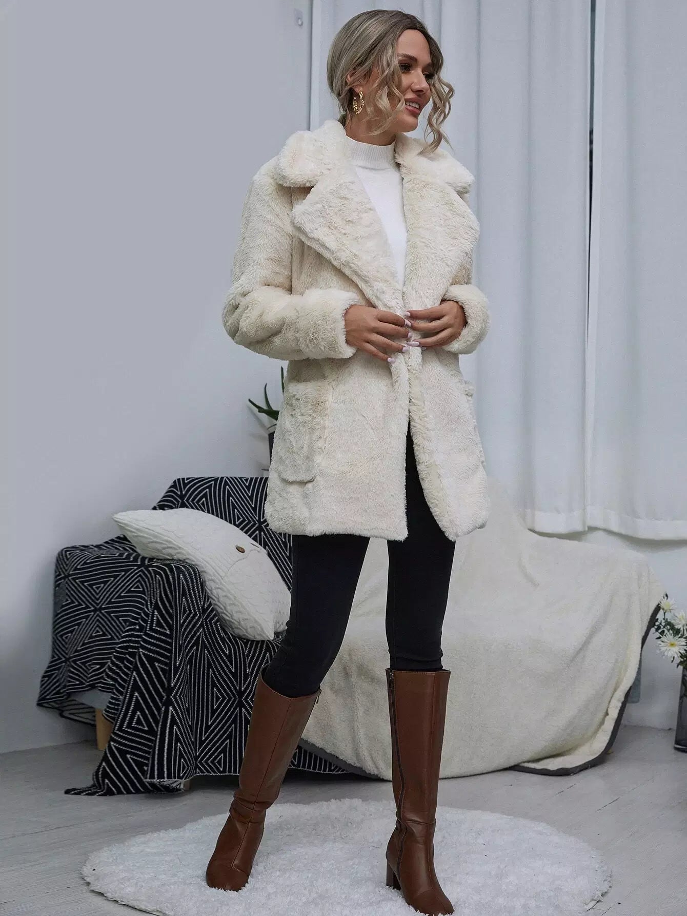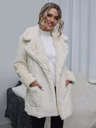 الصلبة معطف تيدي جيب مزدوج بدون حزام