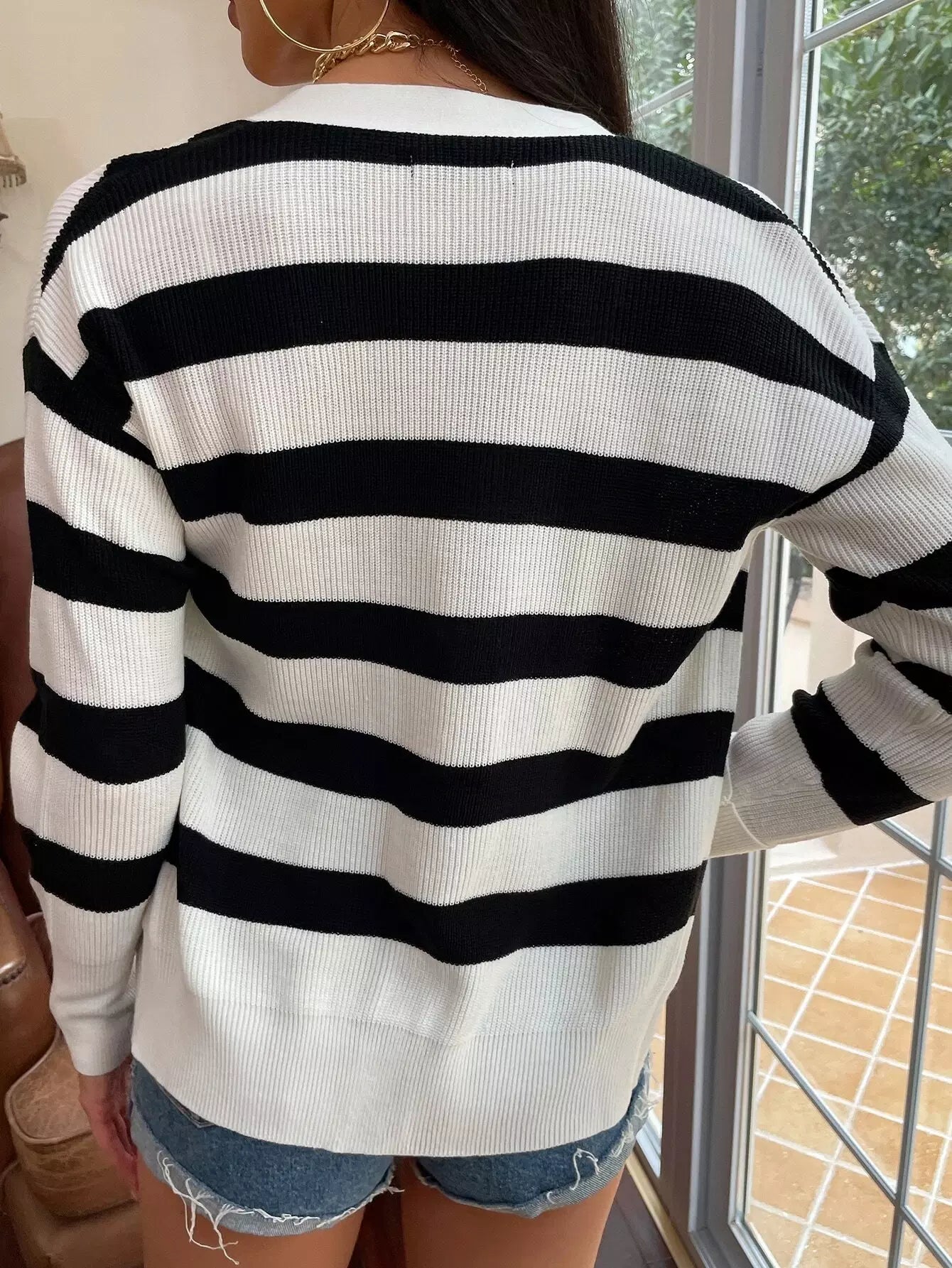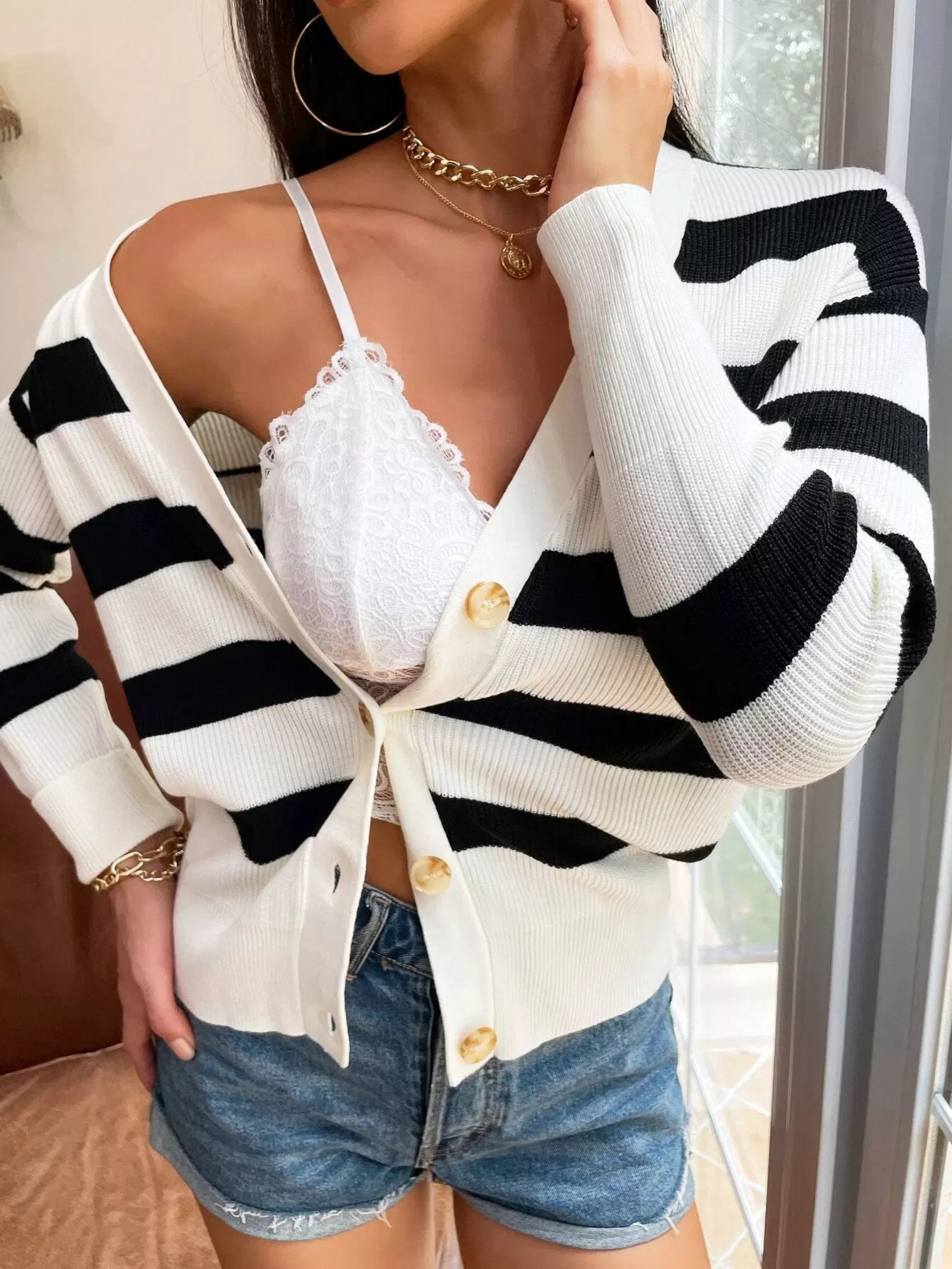 كارديغان مخطط بأزرار من خلال سترة صوفية