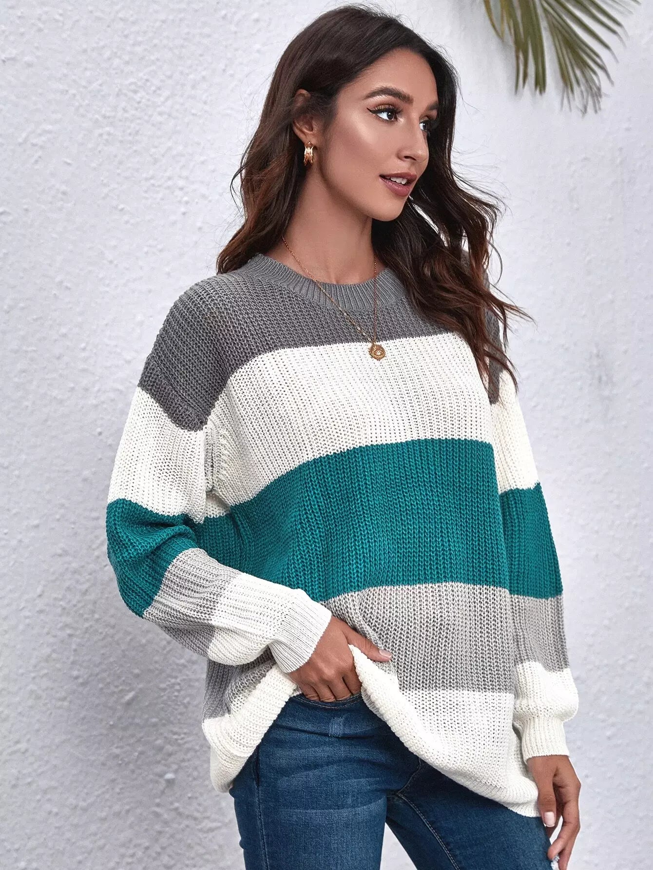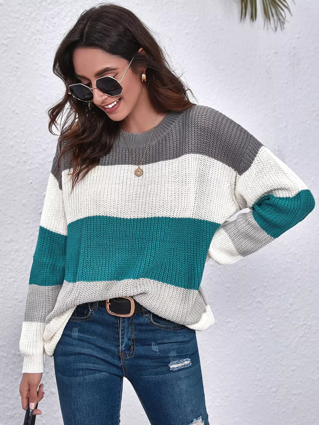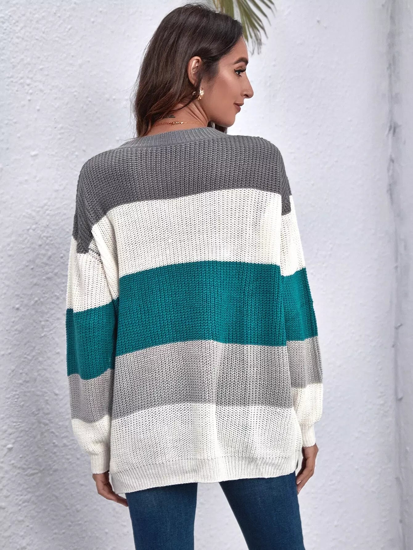 سترة مخططة منسدلة الكتفين ملونة الأكتاف مخططة