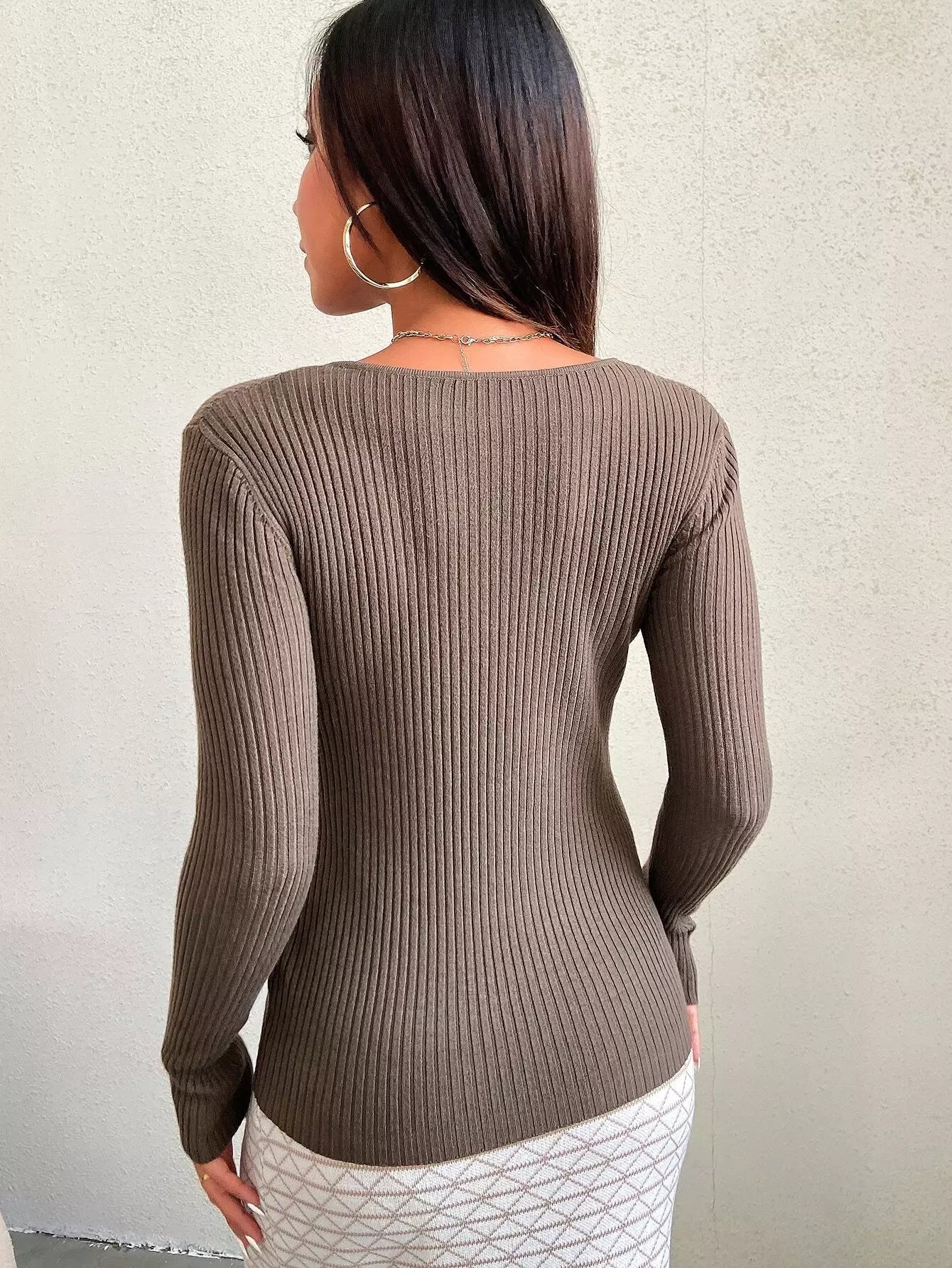 سترة محبوكة مضلعة برقبة عنق مضلع برقبة حلوة