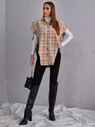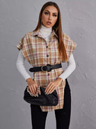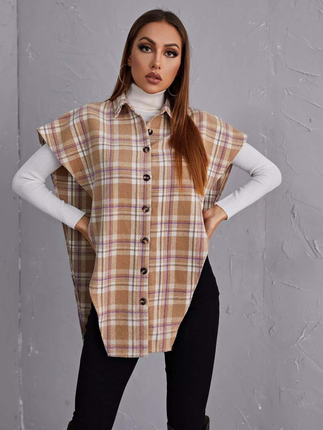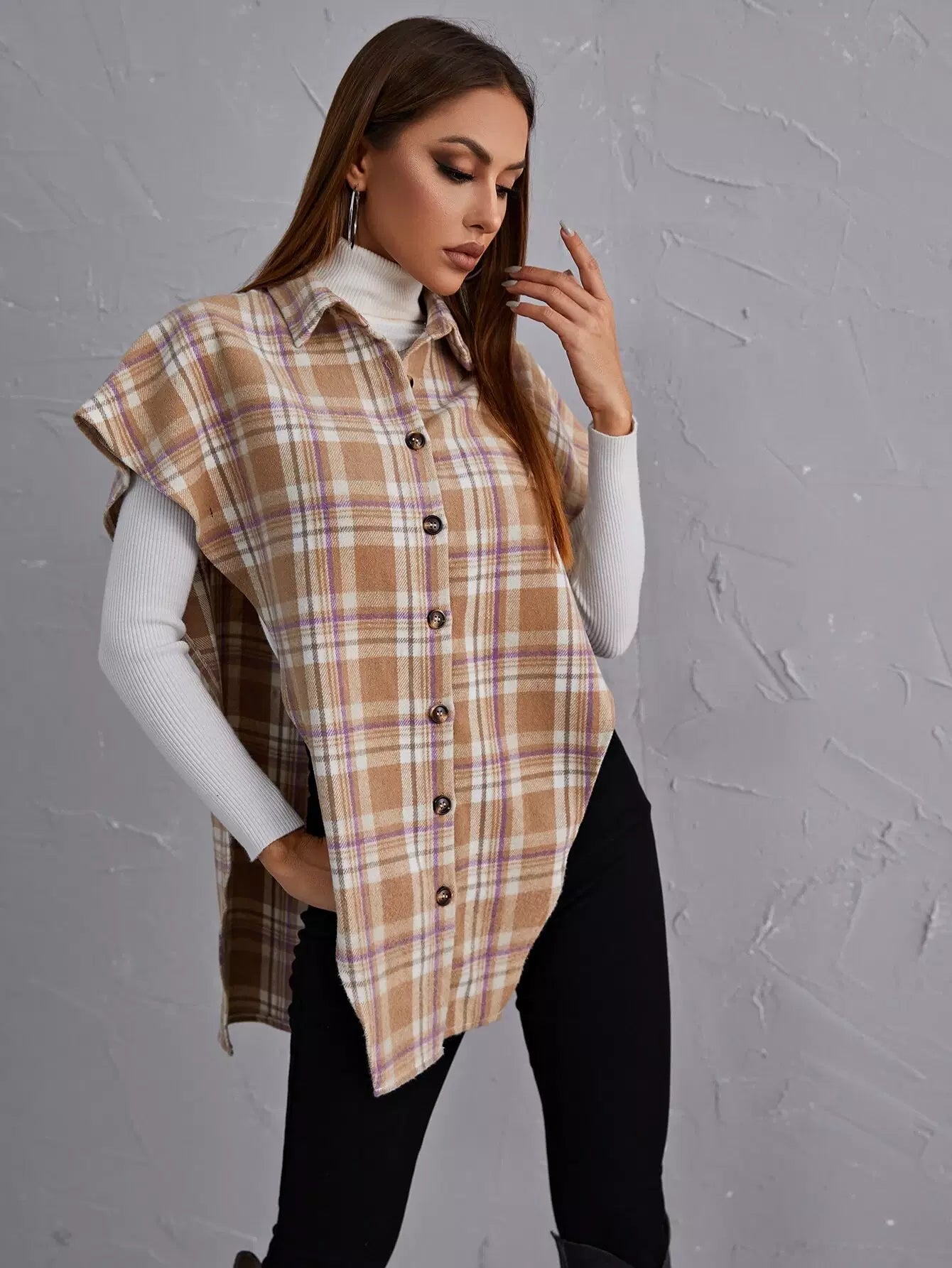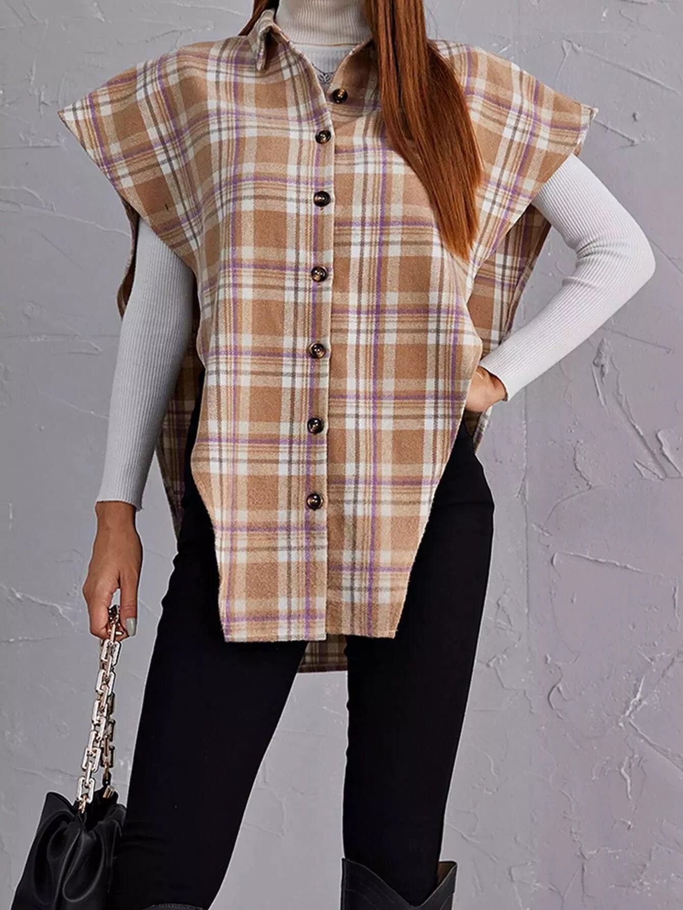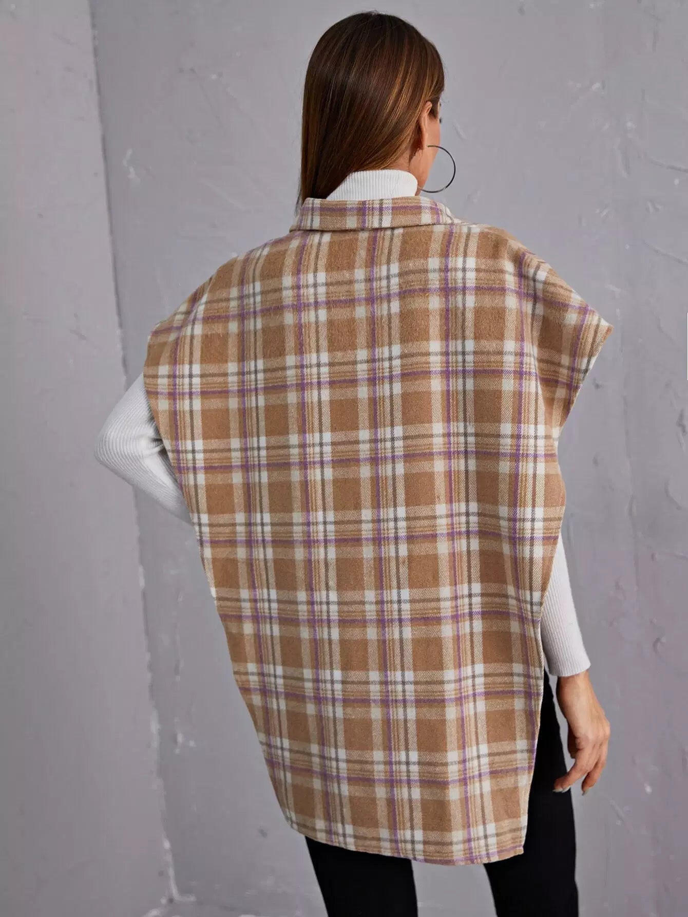 معطف تارتان بأكمام دولمان وفتحة جانبية بدون حزام