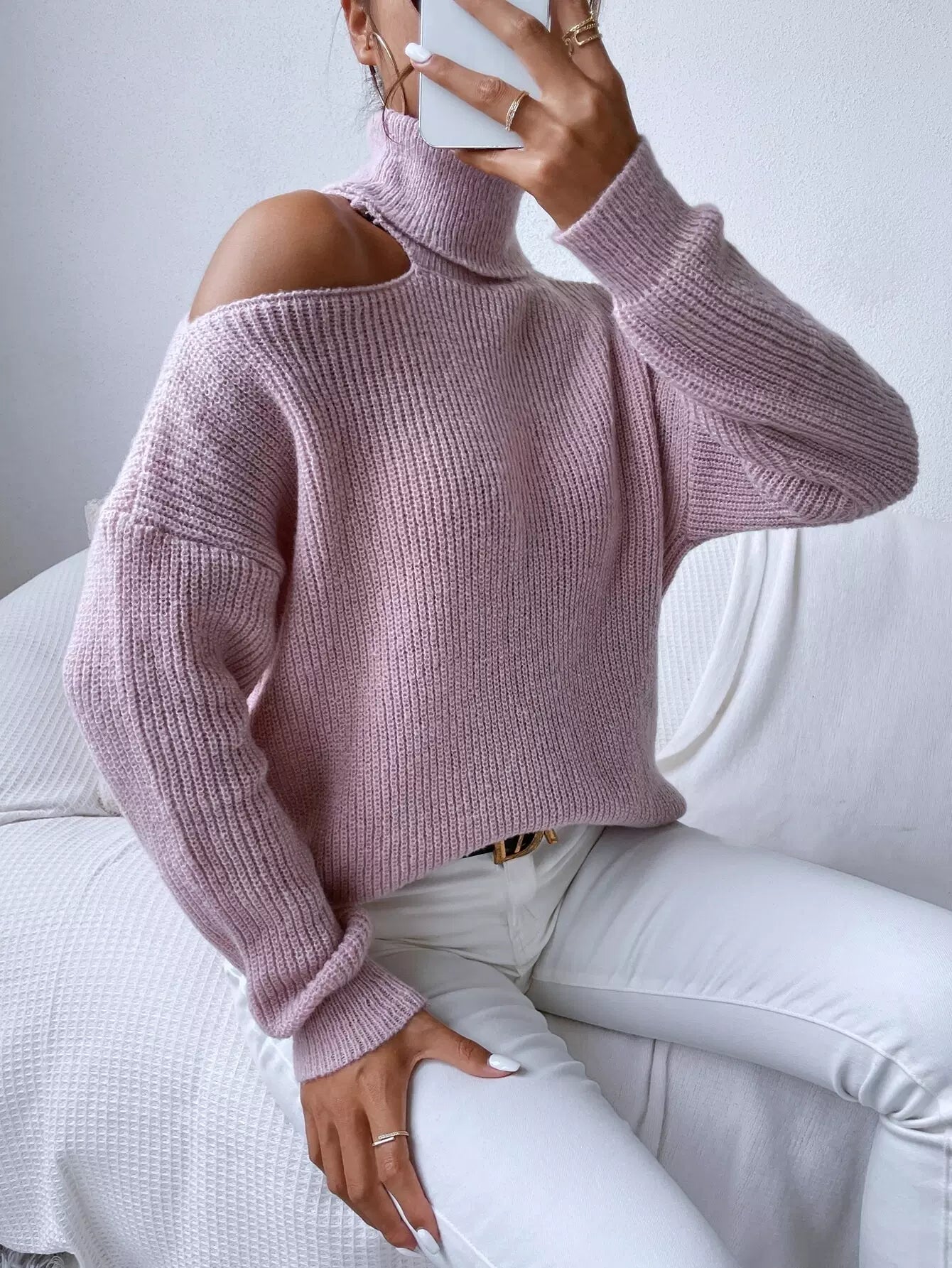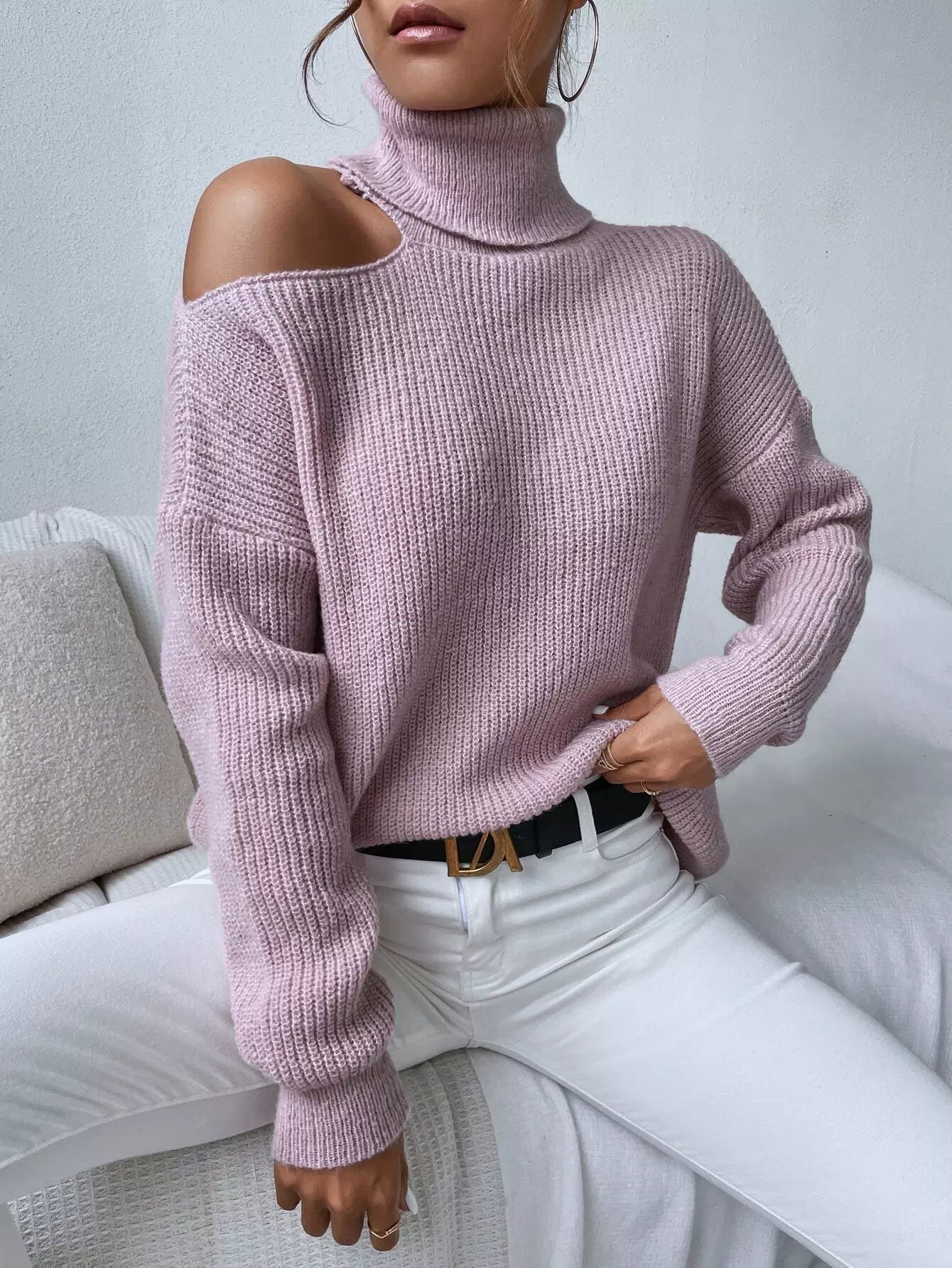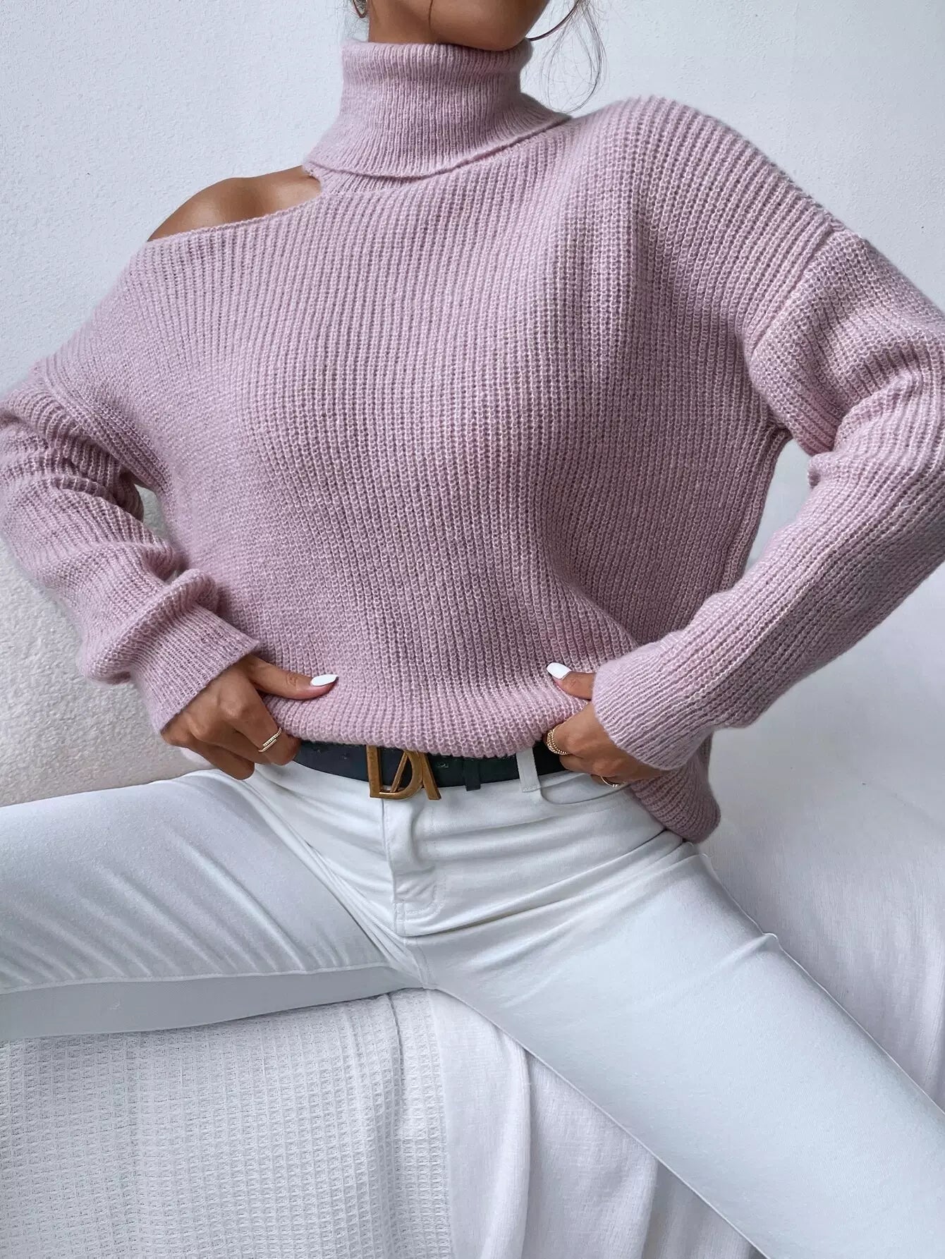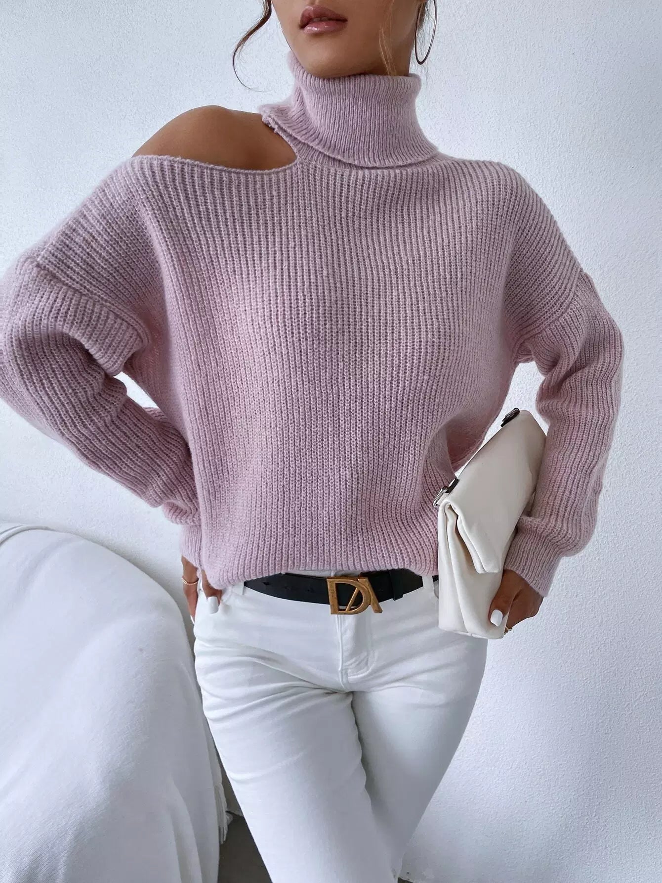 سترة برقبة سلحفاة بفتحة منسدلة الكتفين برقبة سلحفاة