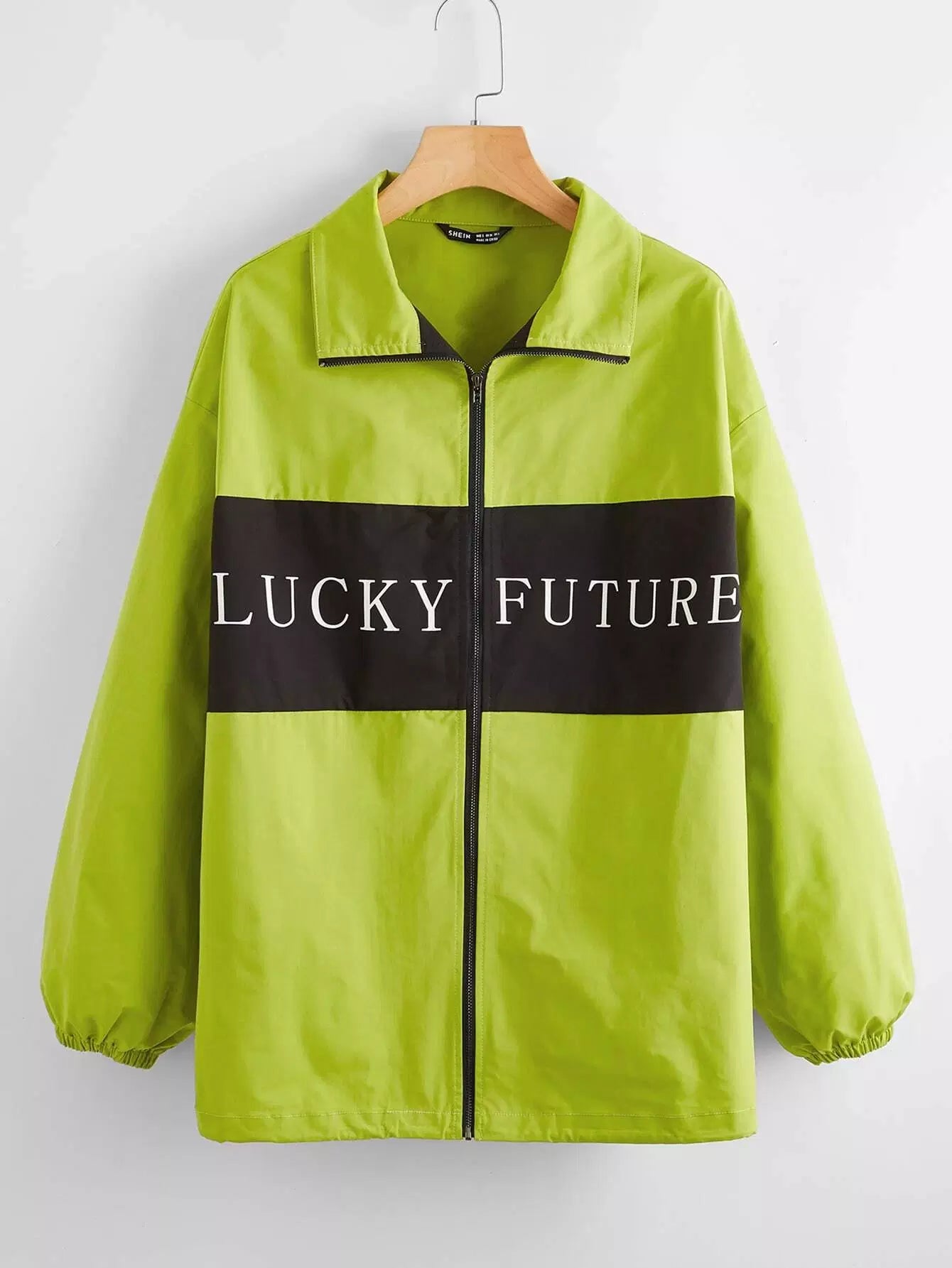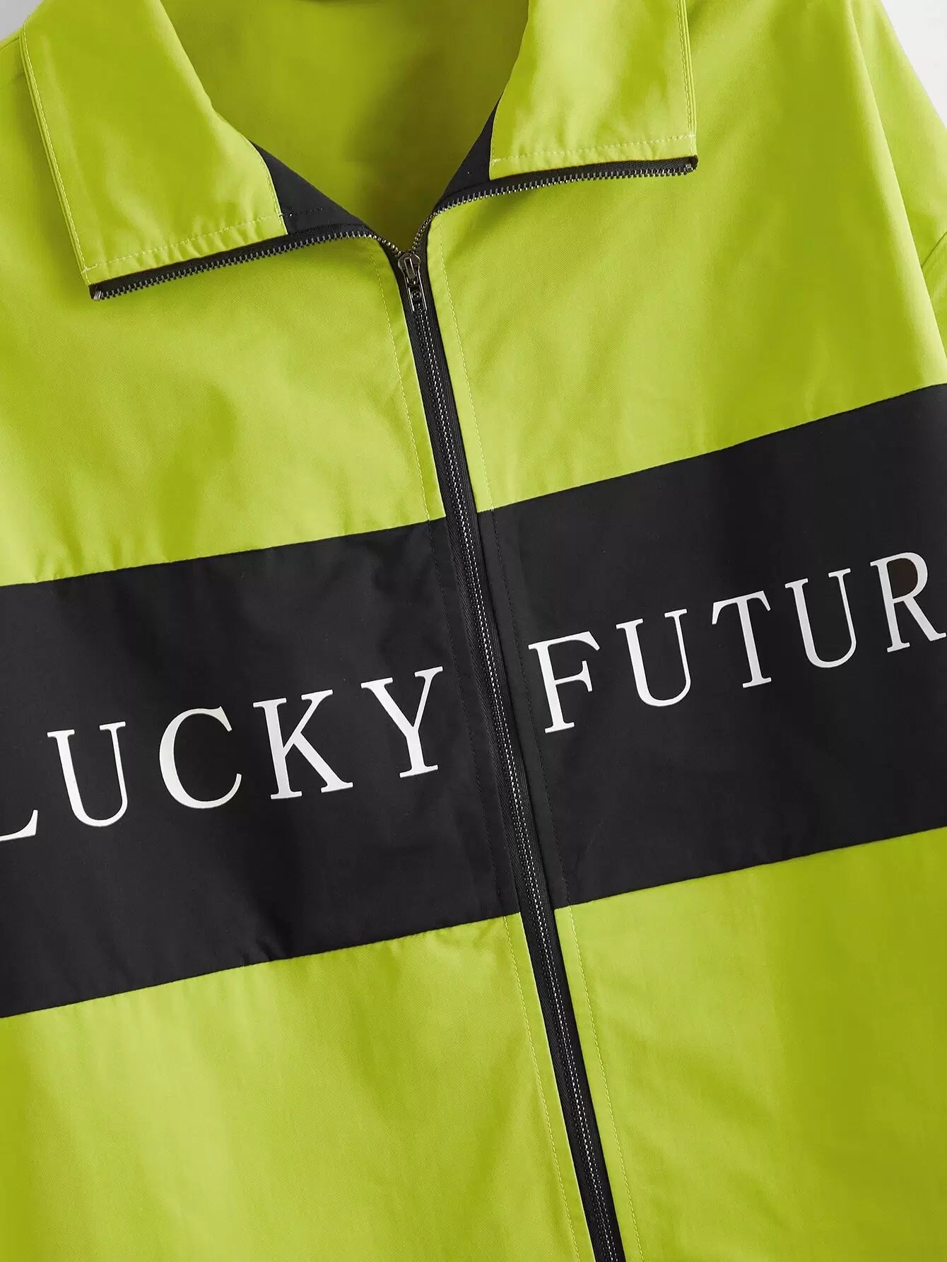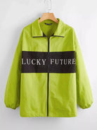 سترة واقية ملونة بلوحة رسومية بأحرف وسحّاب أمامي