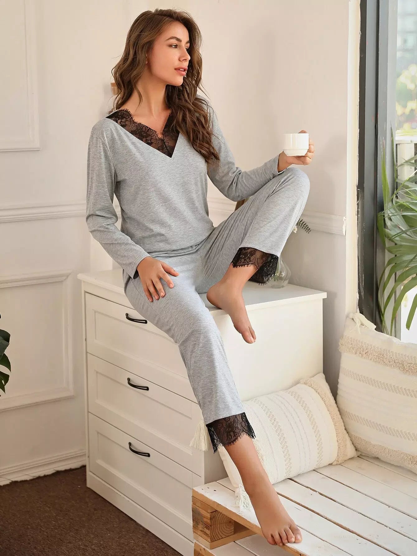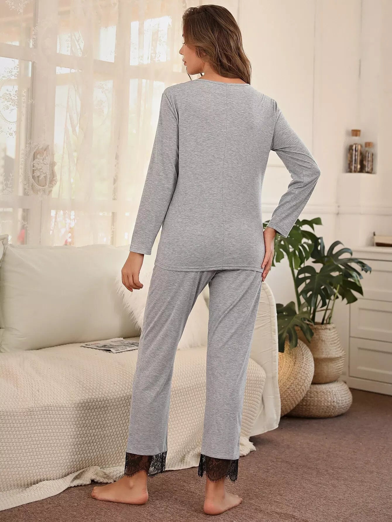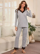 طقم بيجامات من الدانتيل المتباين