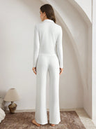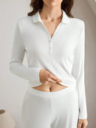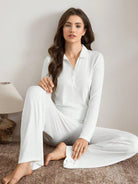 Ocili Leisure Women Solid Color Button Front Long Sleeve Top And Pants Pajama Set