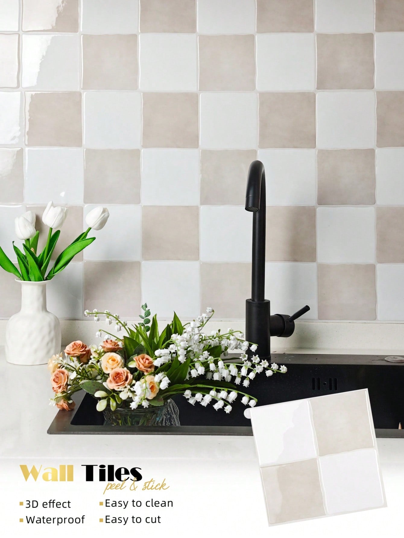 ٤/١٠ أوراق - بلاط جداري مربع الشكل مقاس ٩ بوصات × ٩ بوصات، قابل للتقشير واللصق