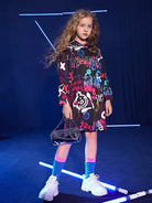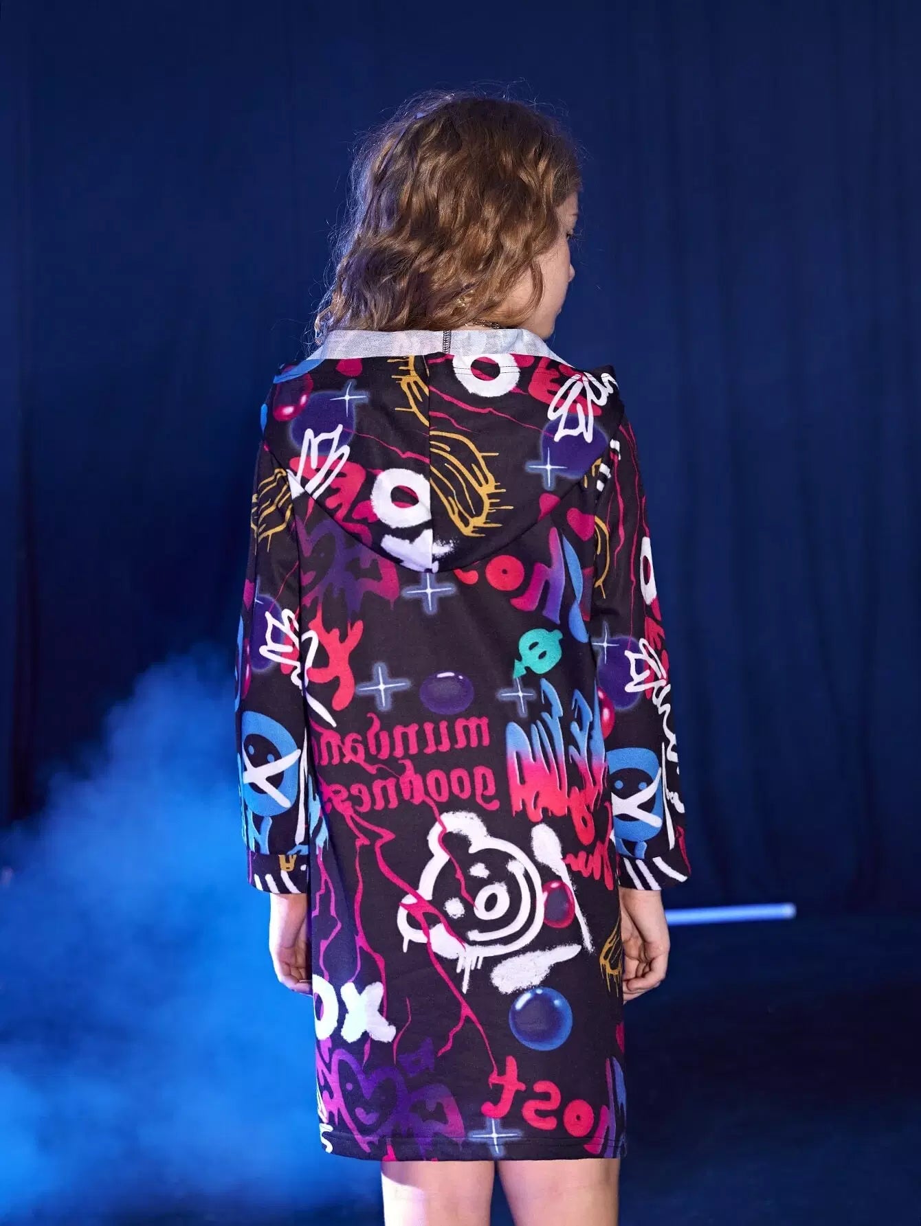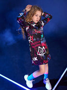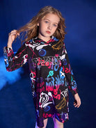 فستان بقلنسوة برسومات دب ورسومات حروف للبنات