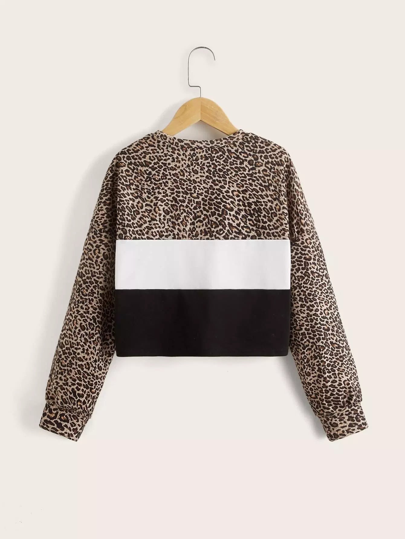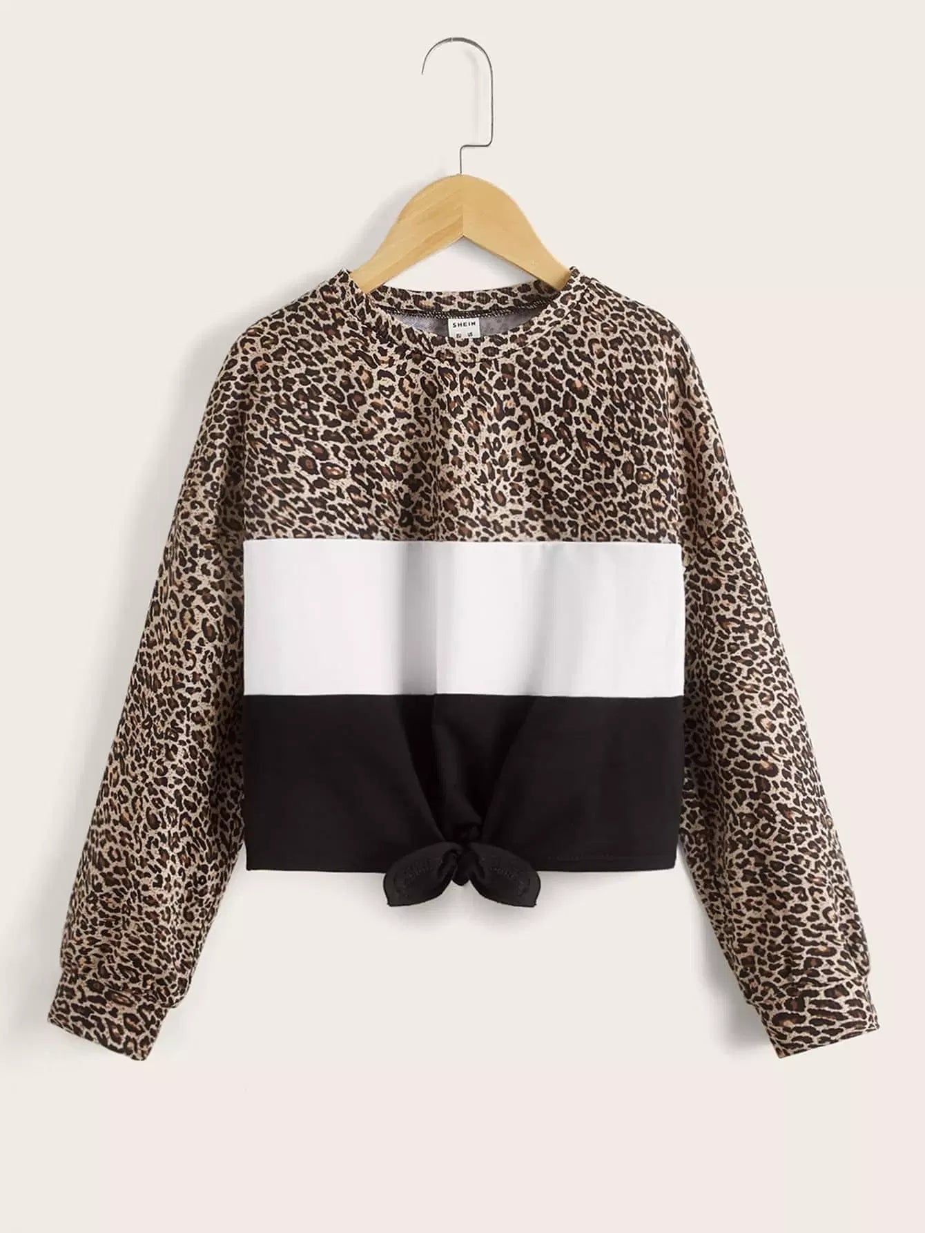سويت شيرت بناتي بحاشية عقدة جلد النمر الملونة