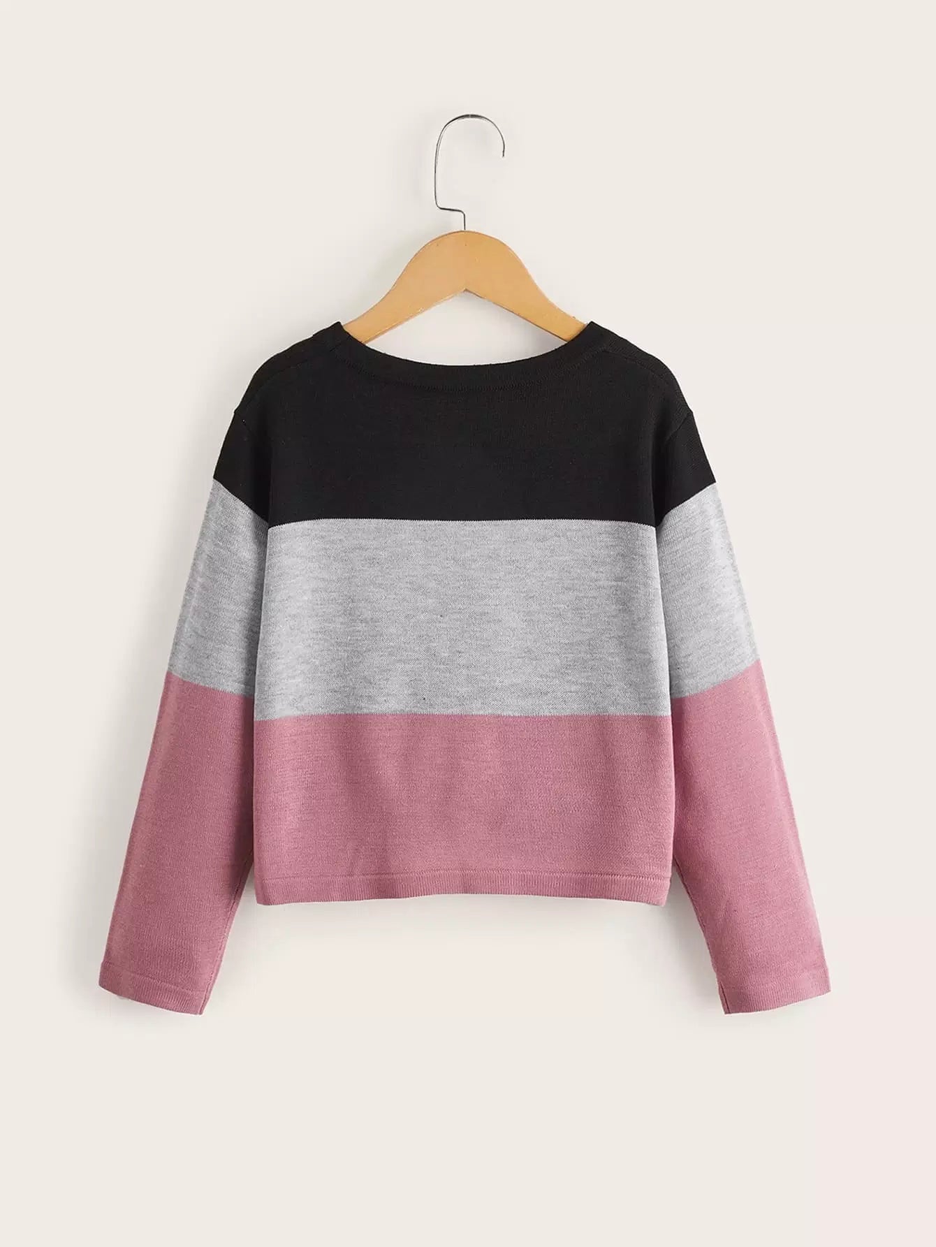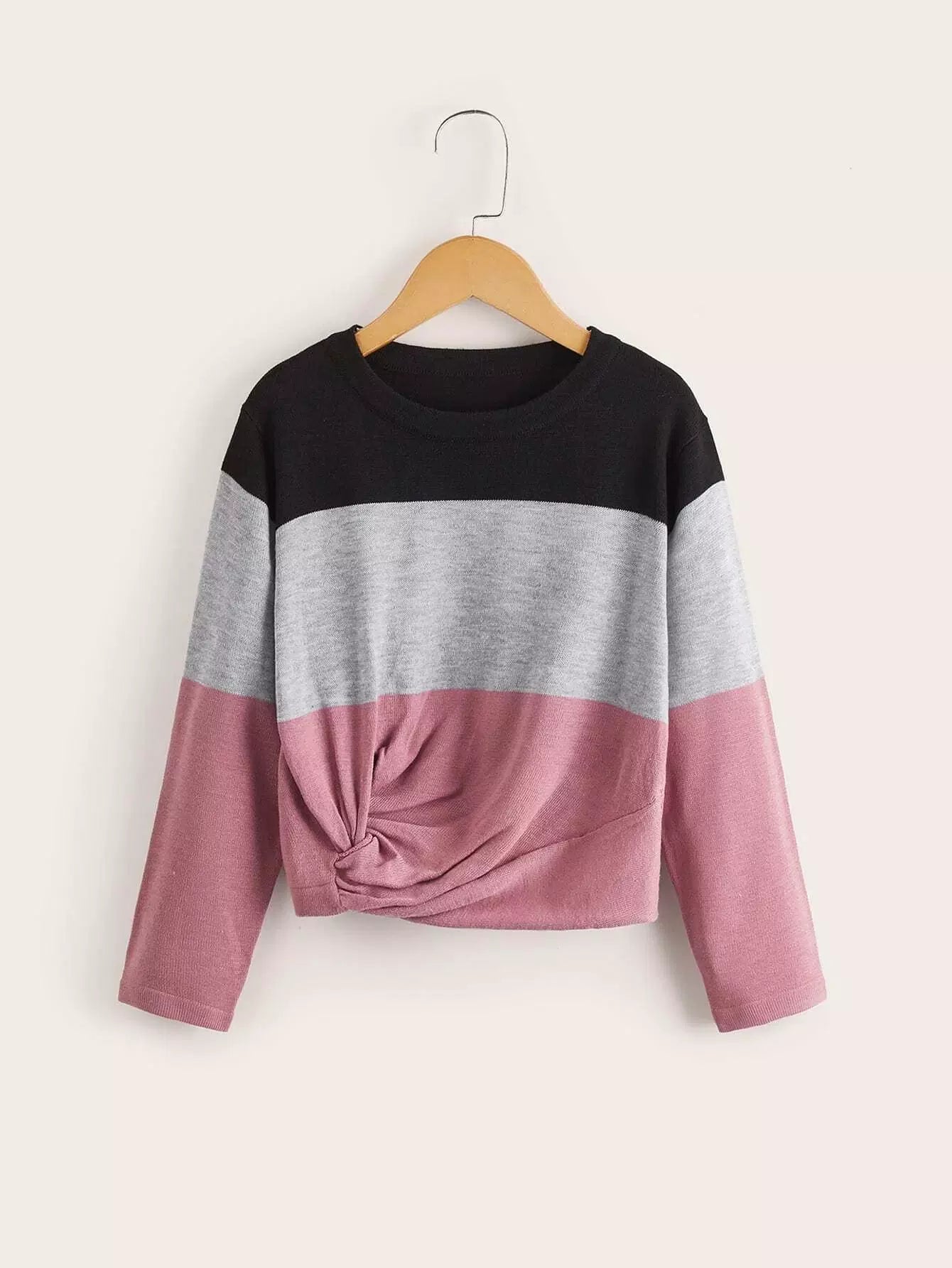 سترة ملونة بلوك أمامية تويست تويست للبنات