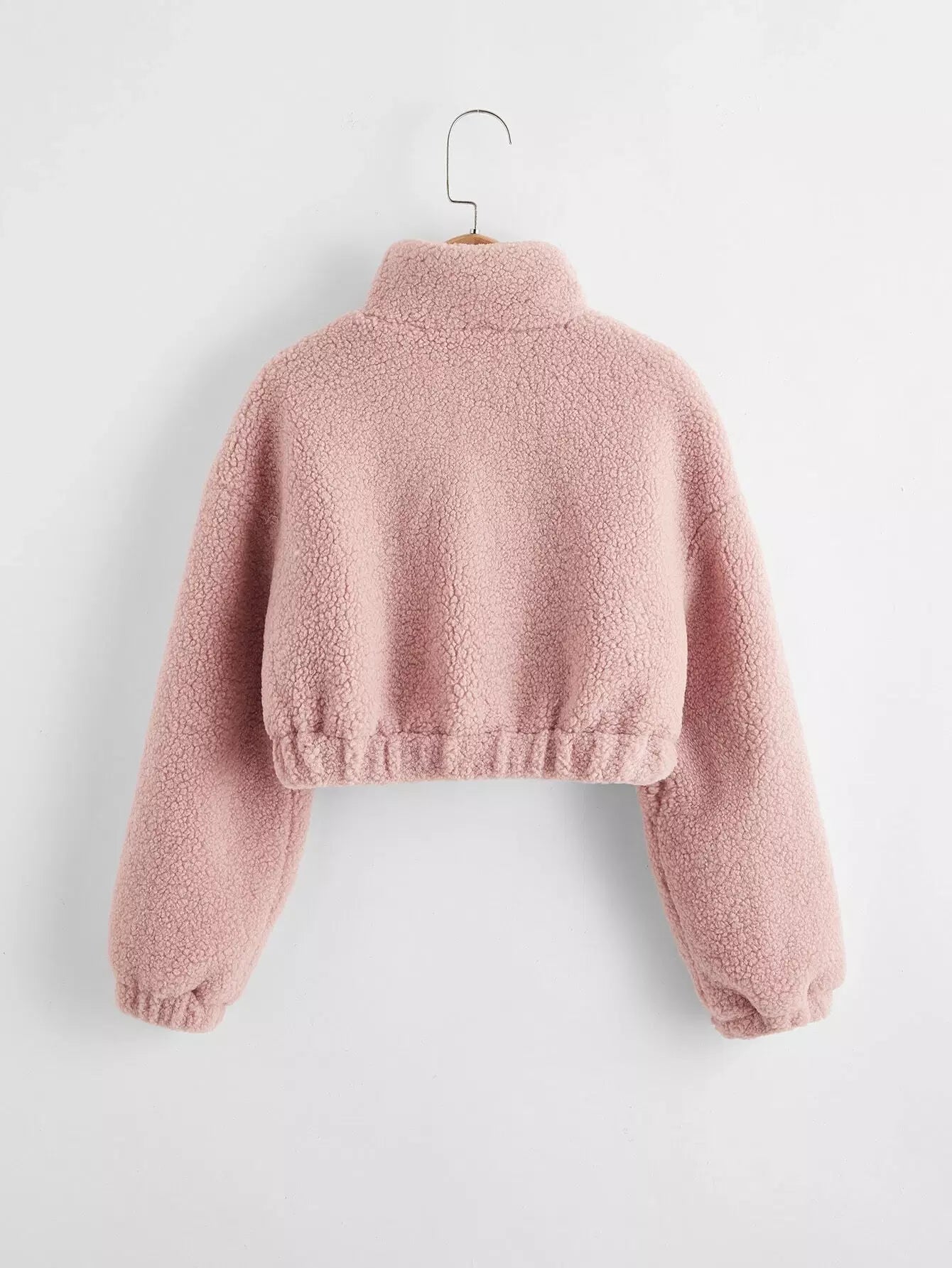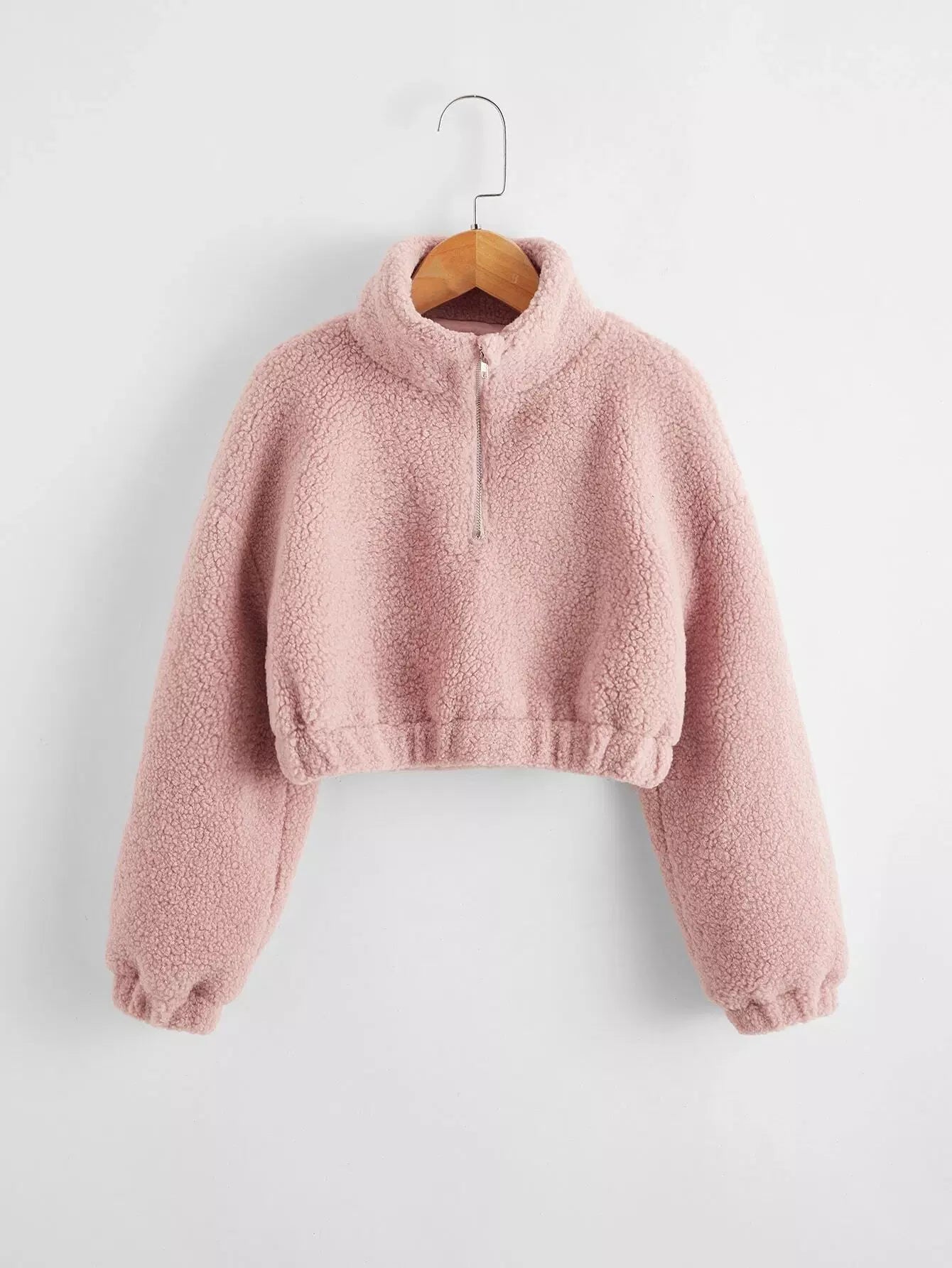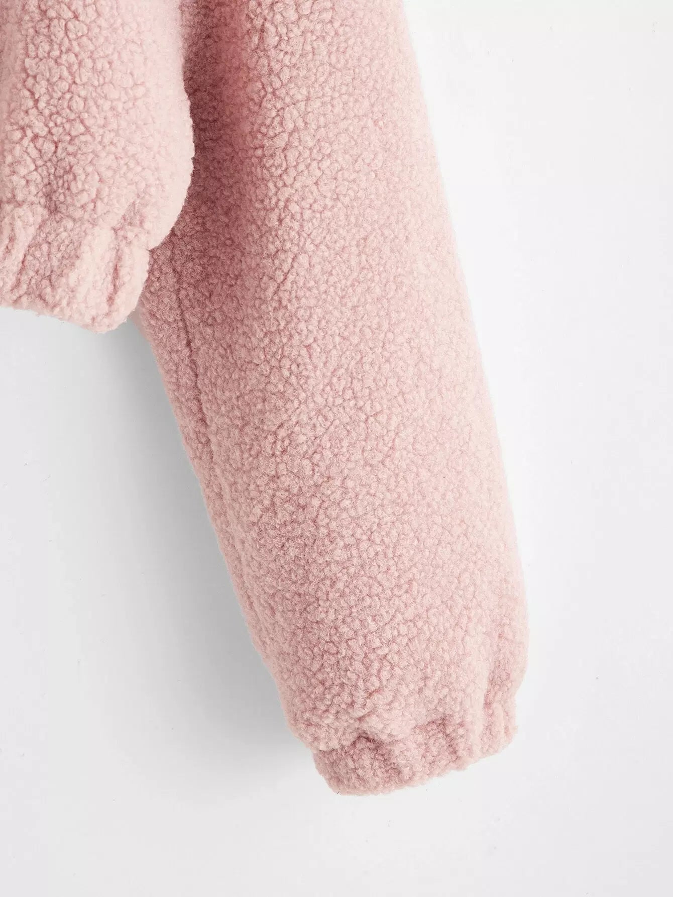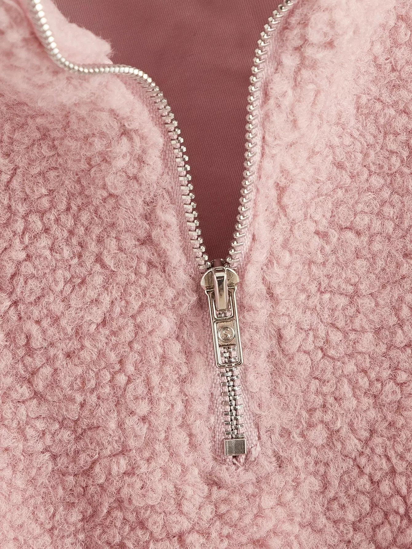 سويت شيرت تيدي بكتف منسدل للبنات مع سحاب نصفي
