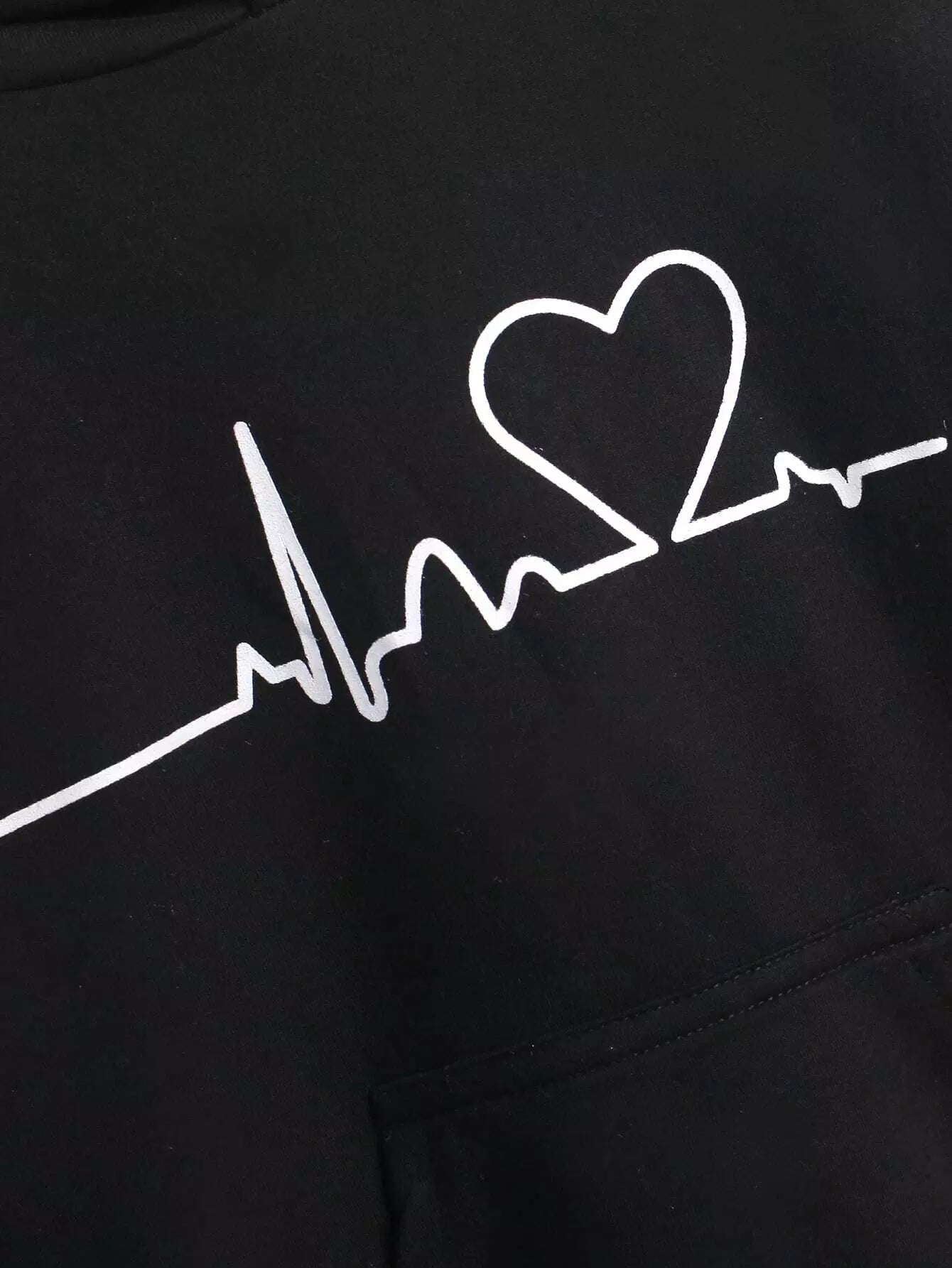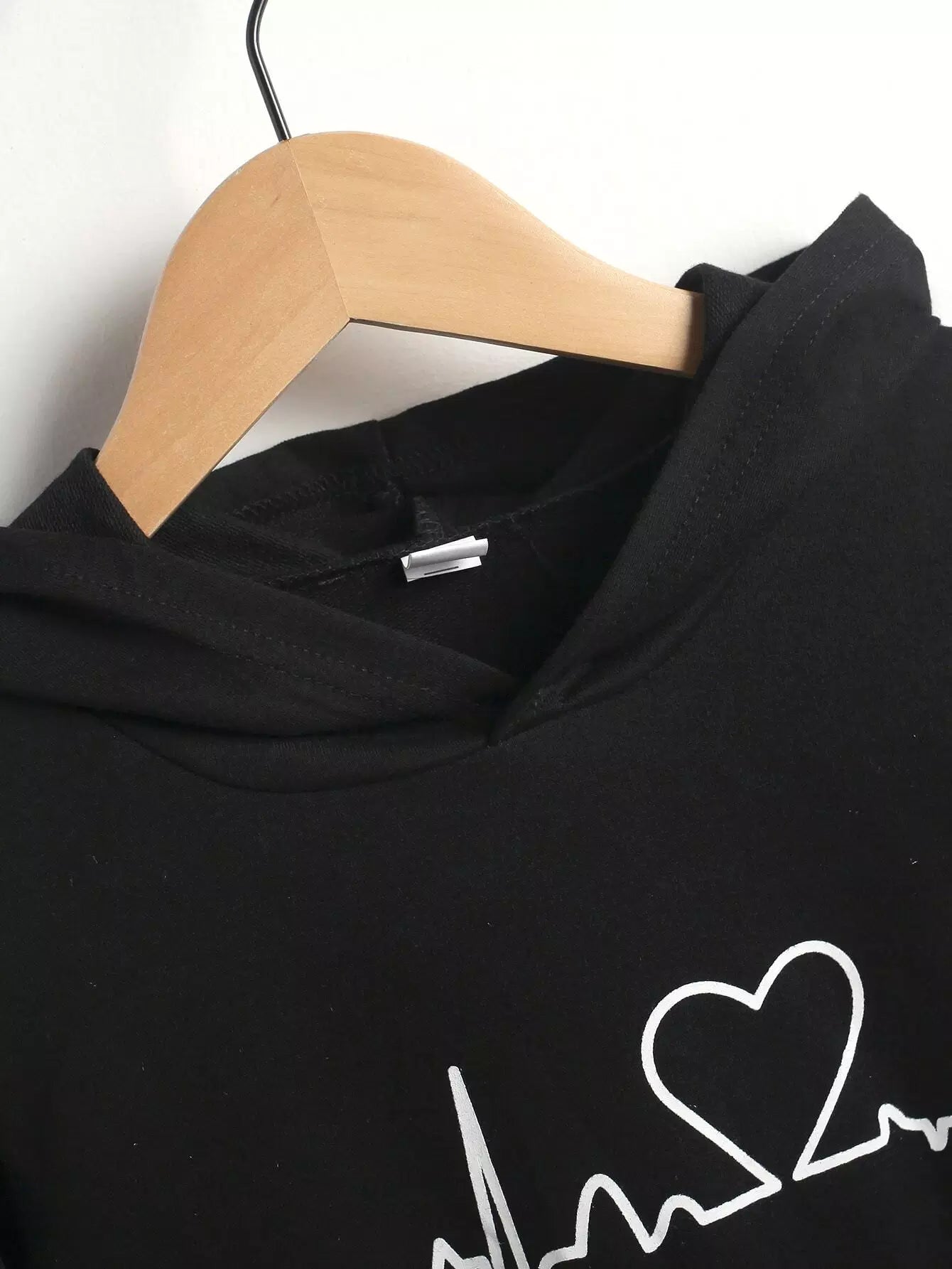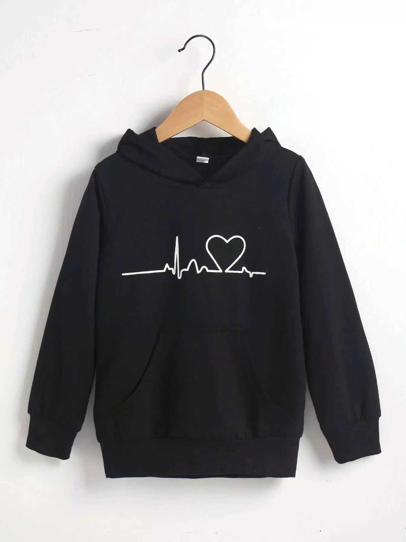 كنزة بقلنسوة مطبوع عليها قلب مطبوع عليها قلب للبنات