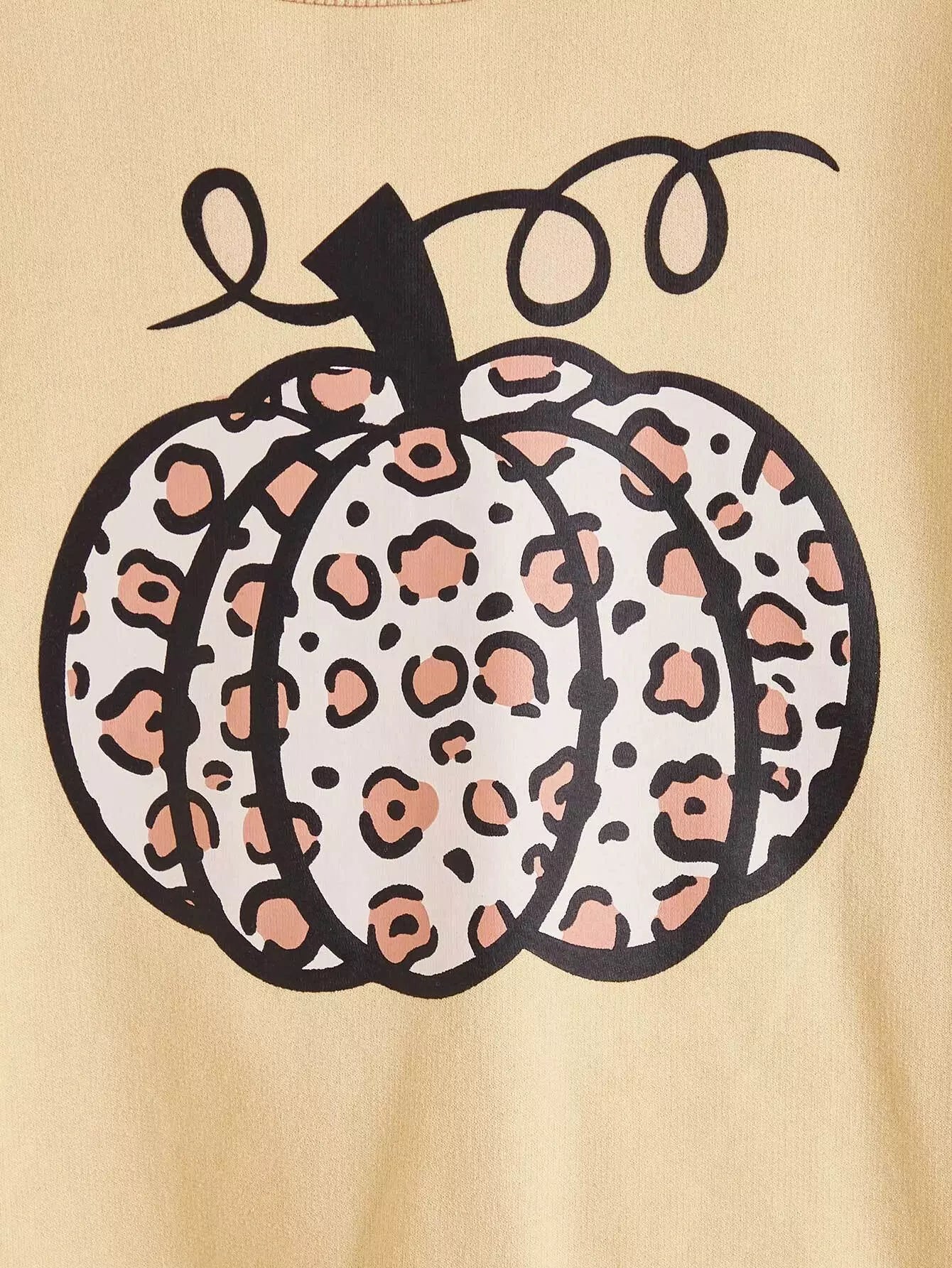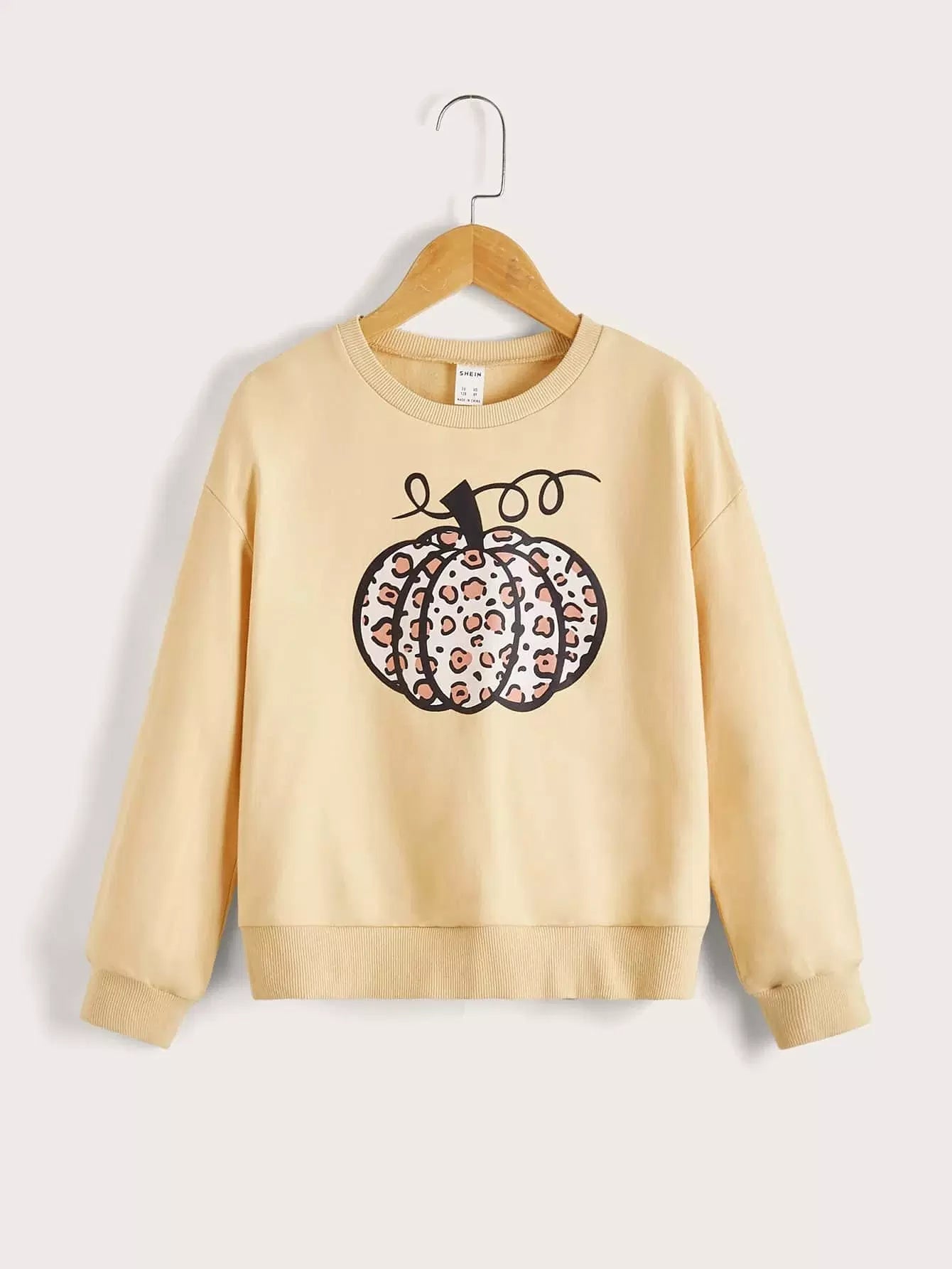 سويت شيرت بناتي بطبعة اليقطين وأكتاف منسدلة