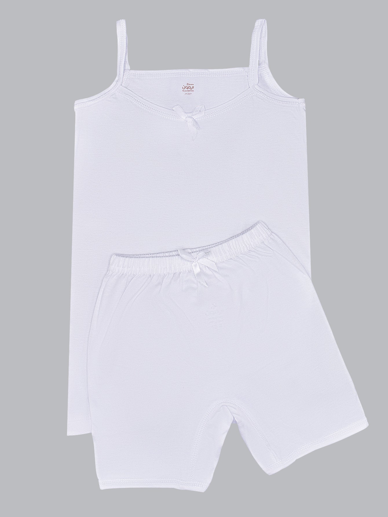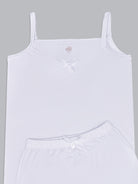 طقم بناتي بحمالات رفيعة - أبيض