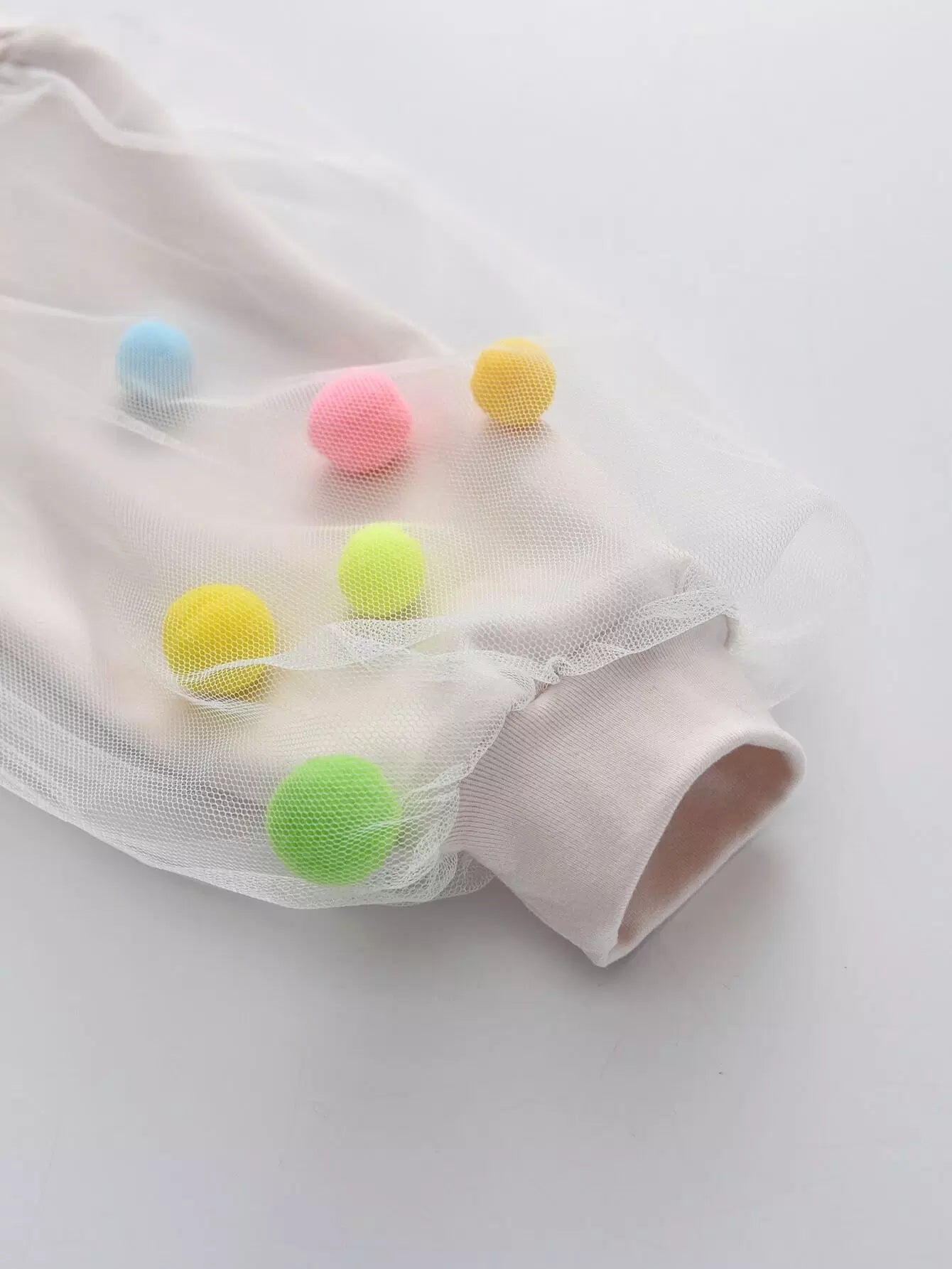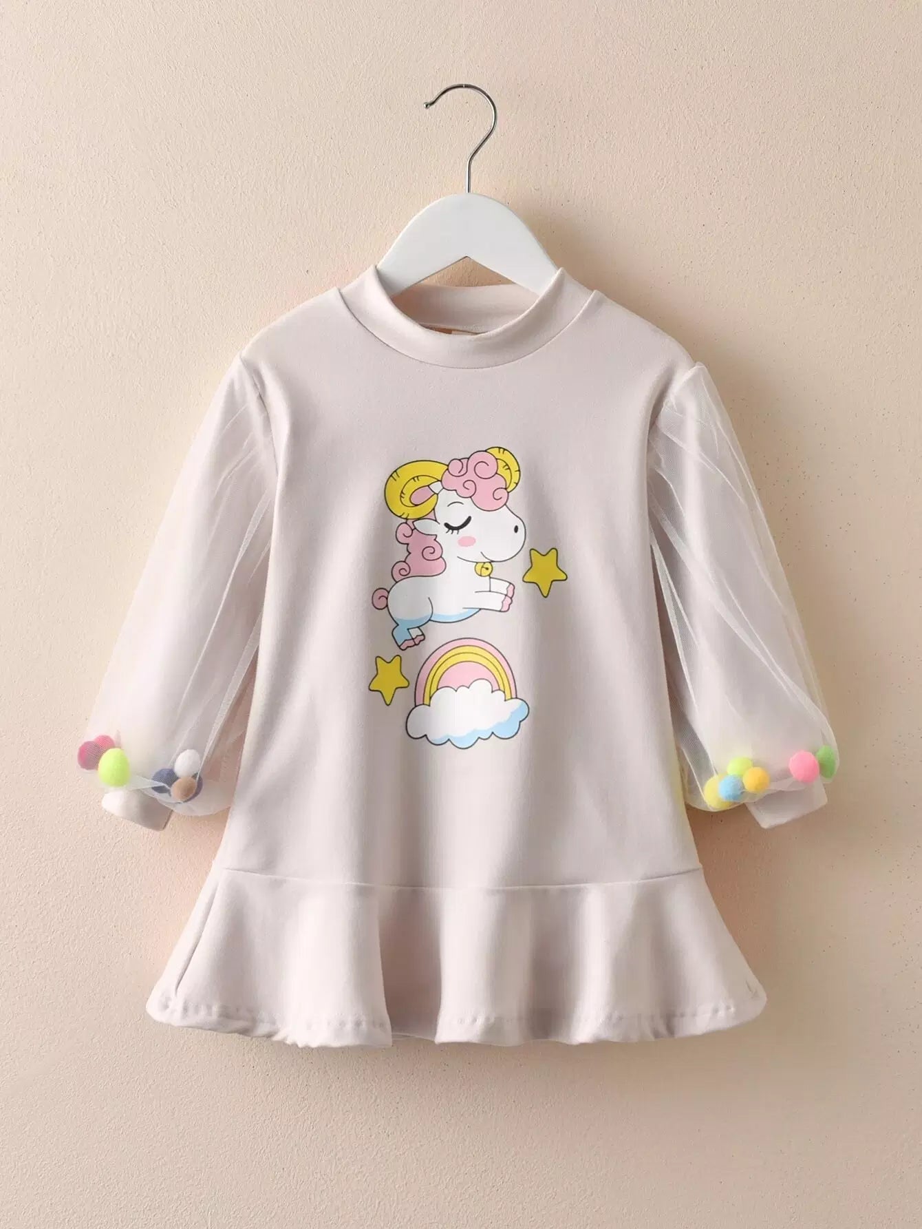 فستان سويت شيرت بأكمام شبكية مطبوع عليها يونيكورن للبنات الصغار